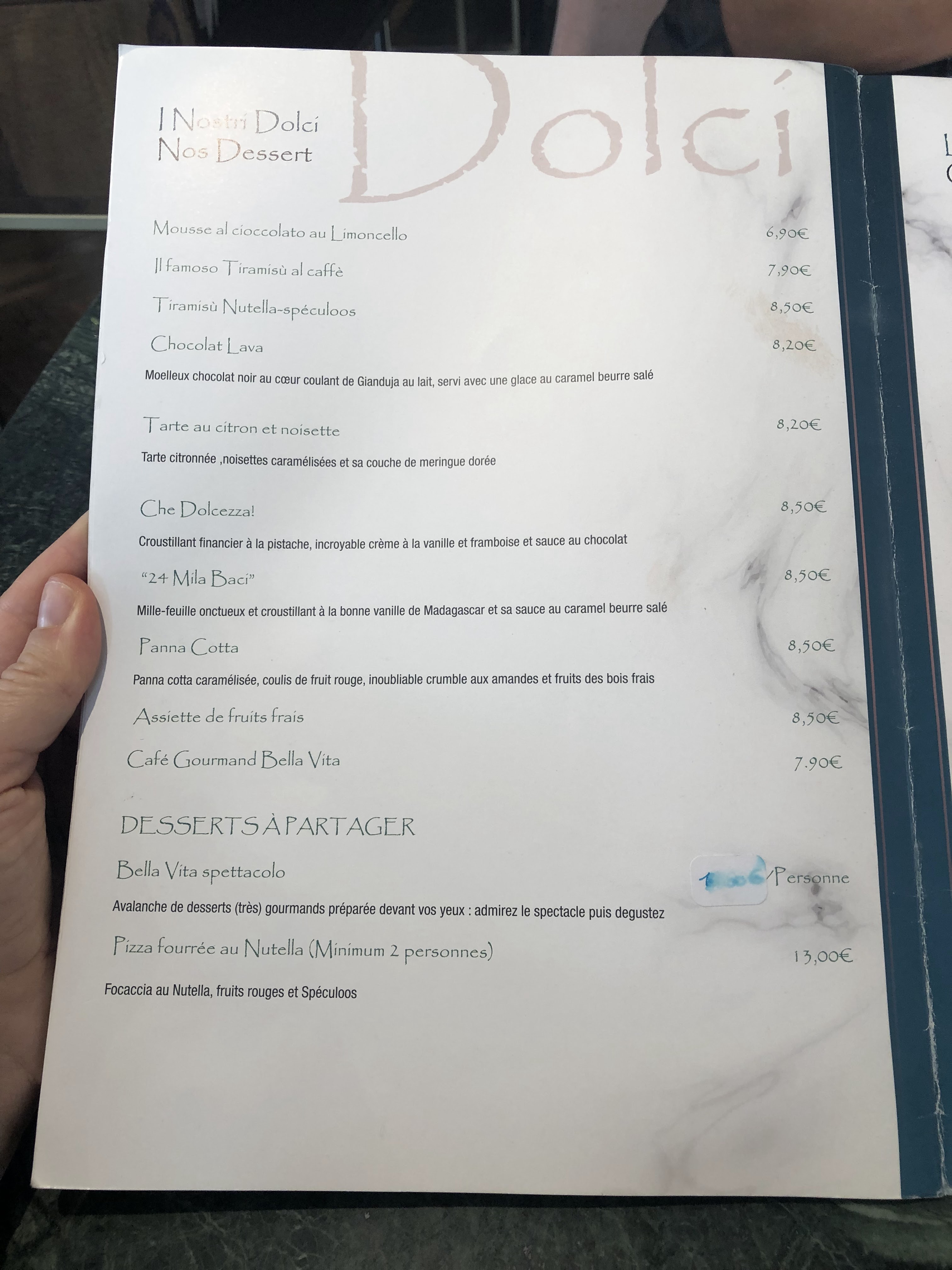 Ciao bello ! Merci pour tout vos compliments, cela nous va droit au coeur ! Le Bella Vita Show est un dessert phare et constitue une expérience unique pour notre clientèle cependant cela fait parti de l'ambiance animée du restaurant et ne dure que quelques minutes. Au plaisir de vous revoir. - la team Bella Vita