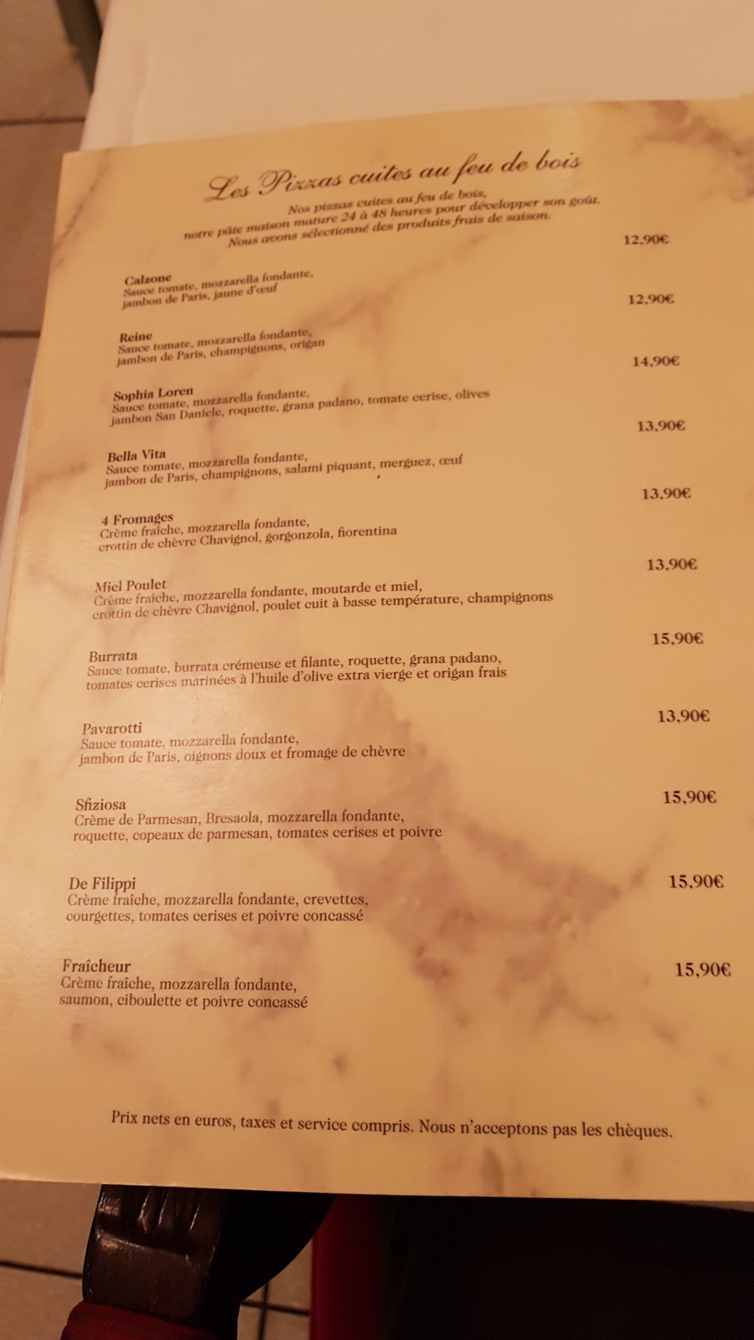Je trouve que la texture des pizzas ont changé ( moins bien) Je suis venue hier soir , voir 2 jeunes ( voiturier ) sous une pluie verglacante sans abri ni même capuche dehors pendant des heures ,entrain de grelotter,je trouve cela honteux !!! Je pense que le restaurant se porte plutôt bien pour offrir un minimum à ces jeunes !!!