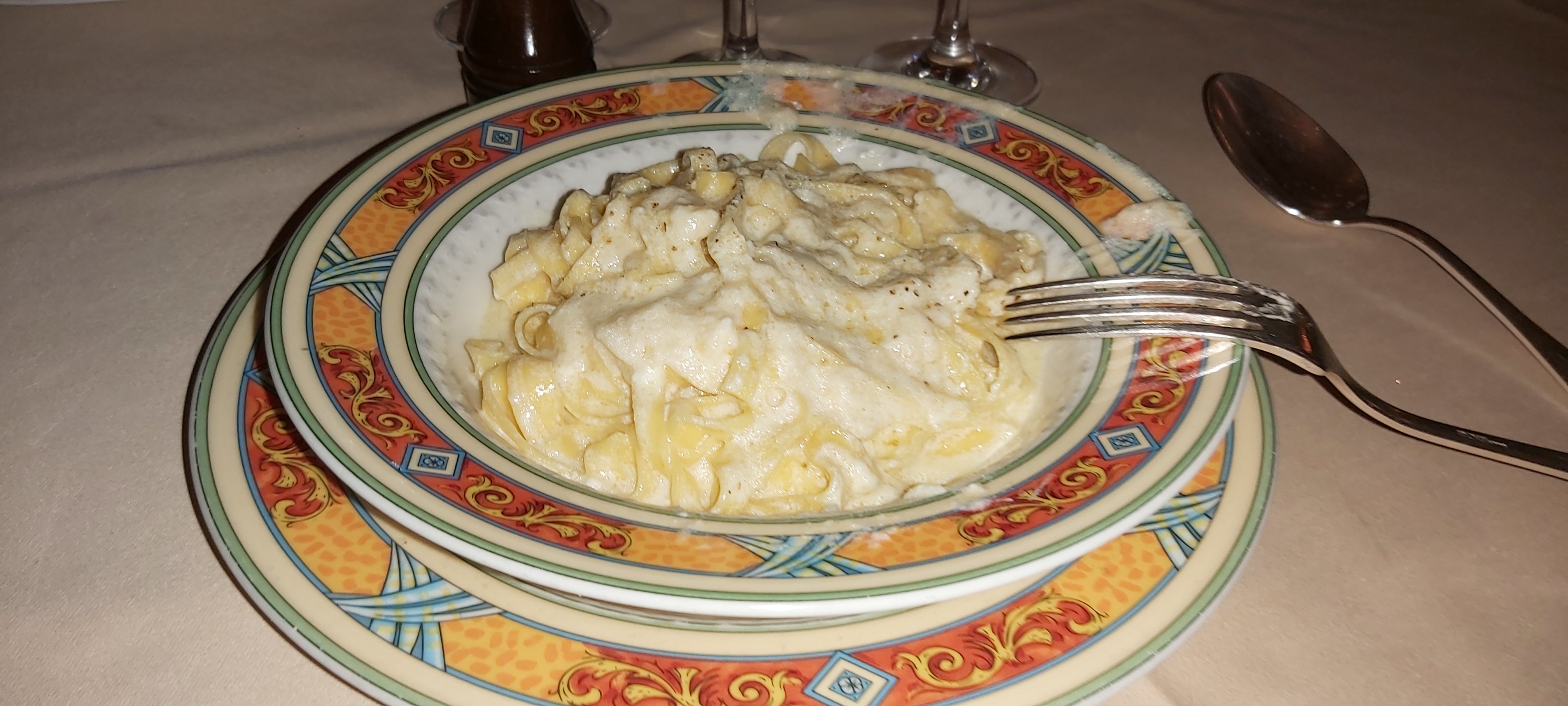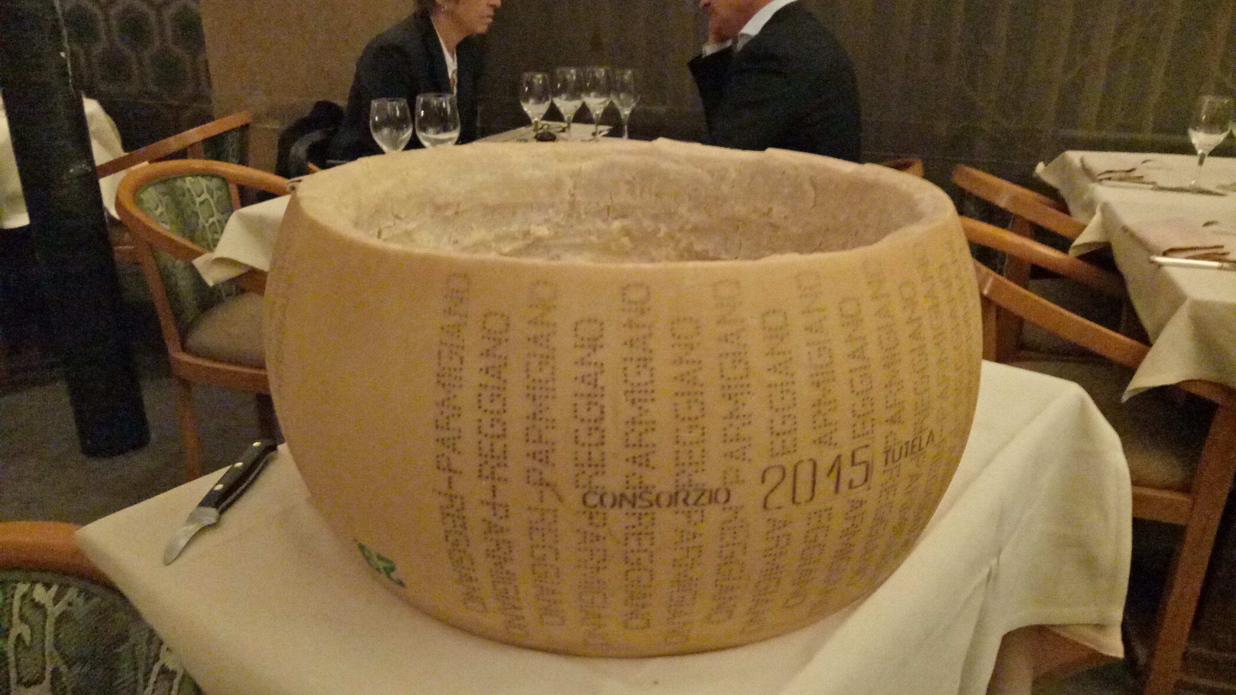 Restaurant visité pour ses pâtes flambées dans la meule de parmesan qui sont absolument culte. Le spectacle et le goût ! Tiramisu délicieux.
