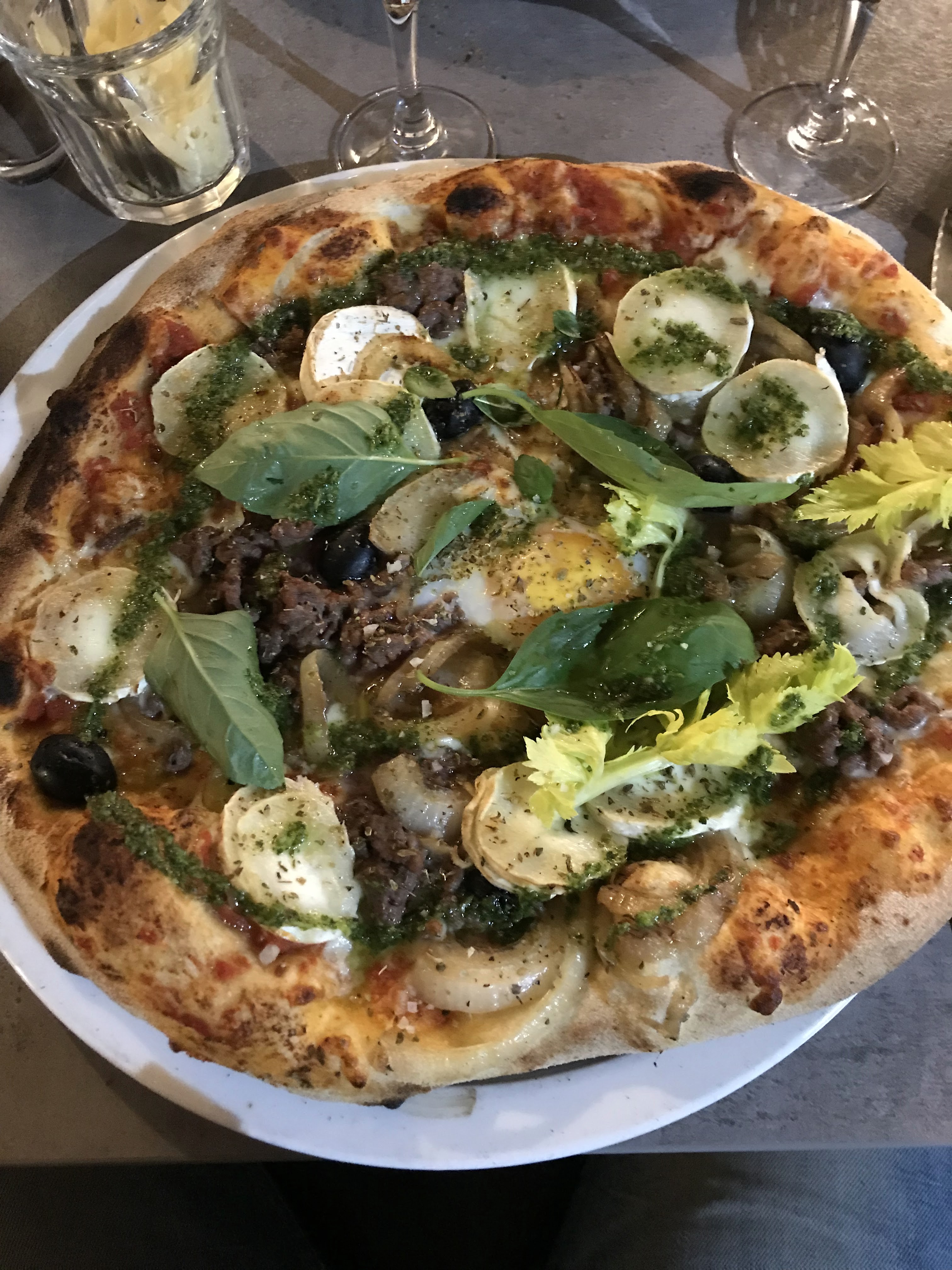 Nous avons eu l'occasion d'aller chercher des pizzas à emporter et nous sommes très contents du professionnalisme de l'équipe. Des employés accueillants, souriants, dynamiques et pro. L'accueil téléphonique était nickel. Nous avons eu le choix d'avoir une base crème ou tomate sur nos pizzas. Celles ci étaient à 10euros l'unité à emporter donc très bonne surprise. De plus les pizzas étaient bonnes ! Il n'y a pas beaucoup de choix végétariens d'où les 4 étoiles mais comme beaucoup de restaurants de nos jours.