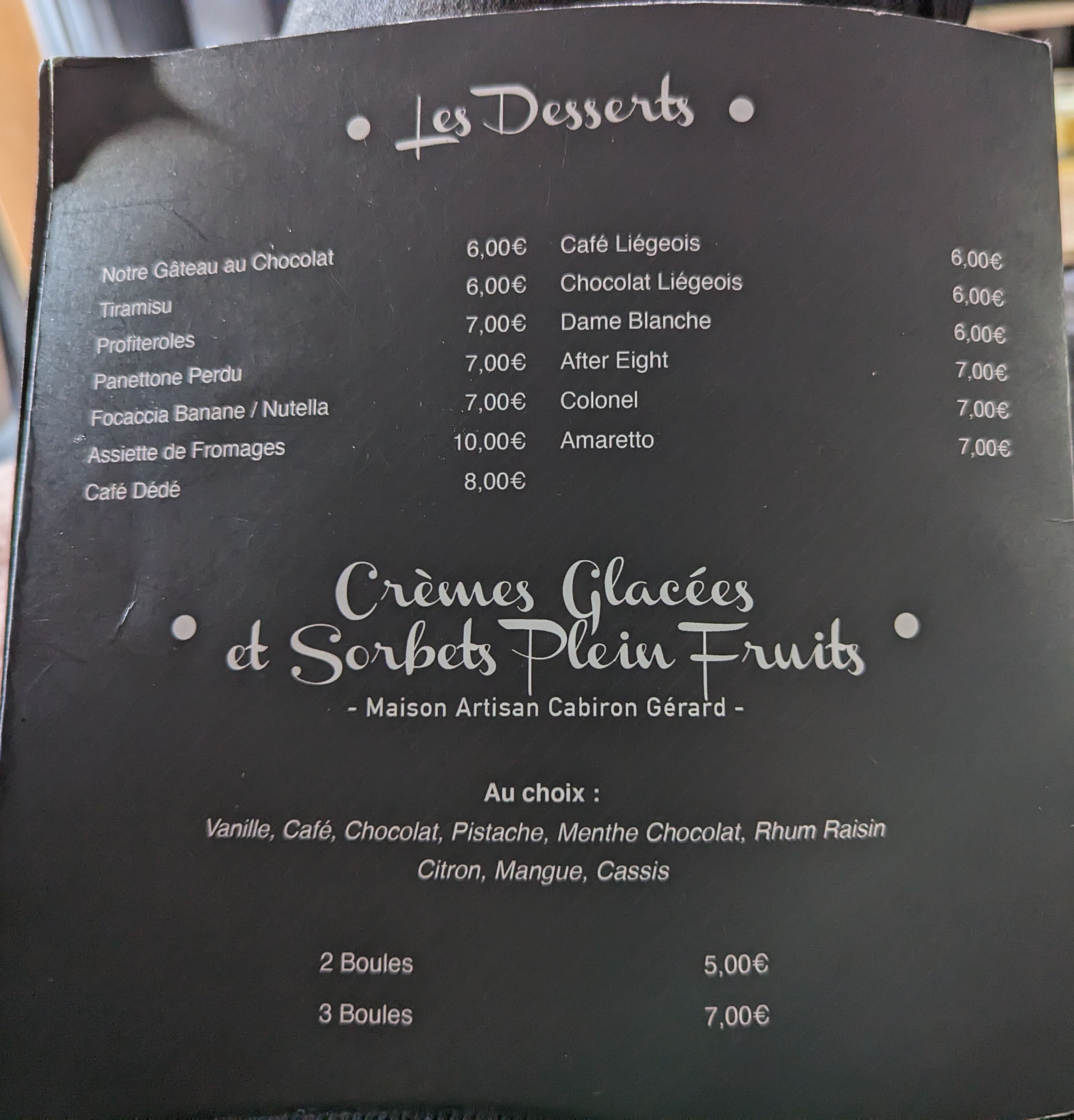 Bras de poulpe grillé, trop grillé. Mousse au chocolat loin de tenir ses promesses. Serveuse qui fait la tête quand on lui demande du ketchup... Je ne met pas 1 étoile parce que j'ai vu pire et que les frites étaient bonnes mais je pense qu'ils gèrent mal quand les clients sont nombreux... J'y retournerai pour me faire un autre avis et espérer remonter la note Parce que j'en ai entendu beaucoup de bien. Édit 16/01/2024 : toujours le même constat pour le poulpe et désormais ils ne prennent plus les tickets restaurant (alors qu'il reste un an avant l'obligation de dématérialisation...)... Je ne recommande pas.