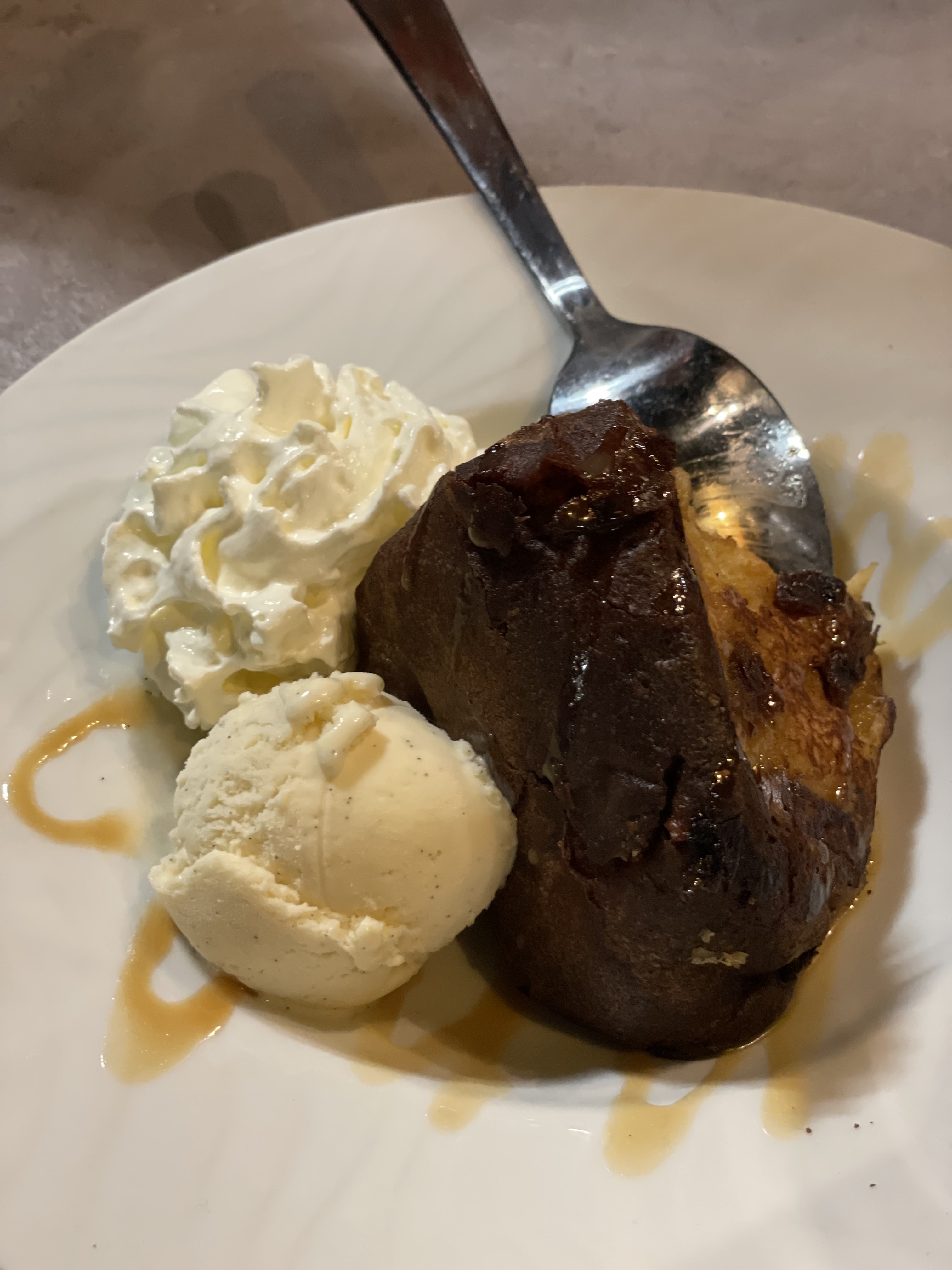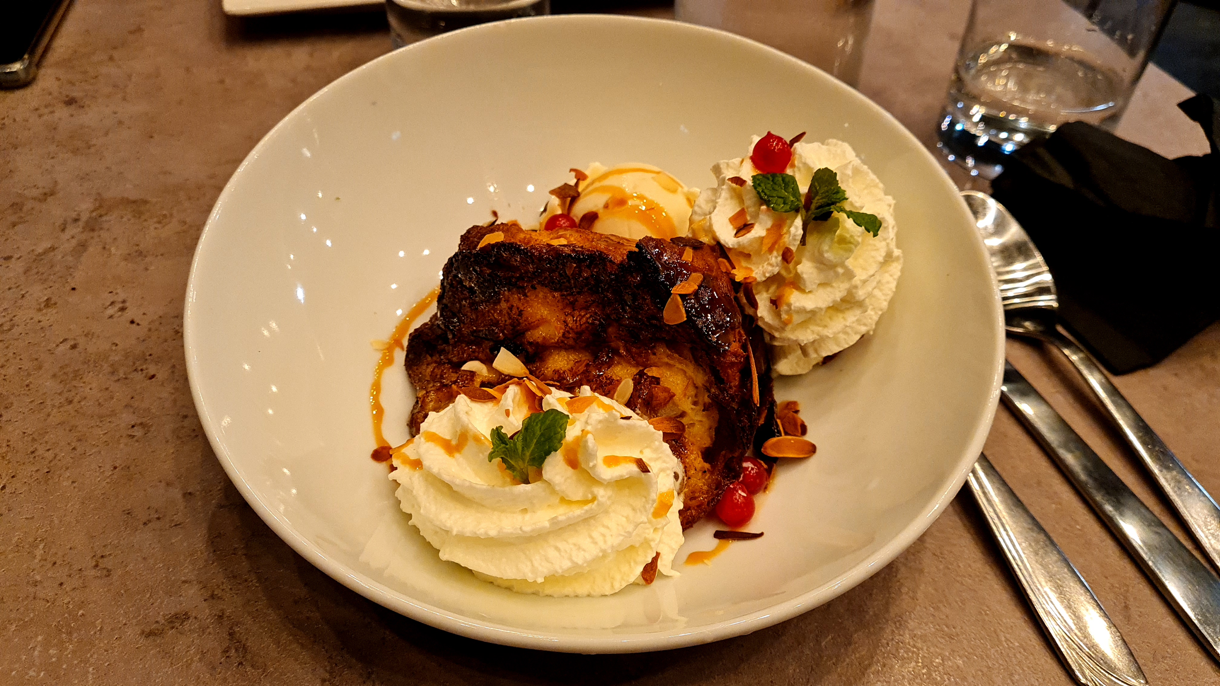 Personnel à l'écoute et agréable.Pizza bonne,pâte moelleuse, très bon goût, viandes bonne également, frites rien à dire. Dessert panetone perdue avec glace et chantilly top.Cafe gourmand bien. Très bien malgré le restaurant plein.