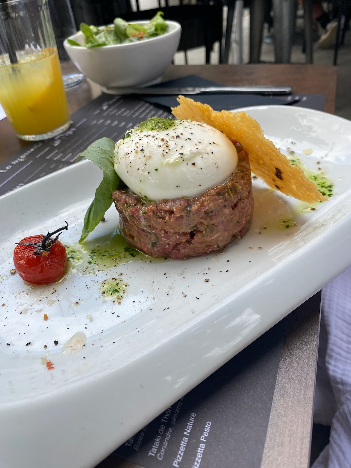 Franchement je suis assez compliquer avec les tartares de bœuf qui sont déjà prêt mais alors là c’est le meilleur que j’ai pus manger !!! Bravo au cuisinier ! Il est parfaitement dosé, et se petit côtes piquant est juste top , vous êtes super ! La serveuse est super agréable ( la jeune fille au cheveux long noire ) toute l’équipe a l’air super et est très aimable , je recommande grave !