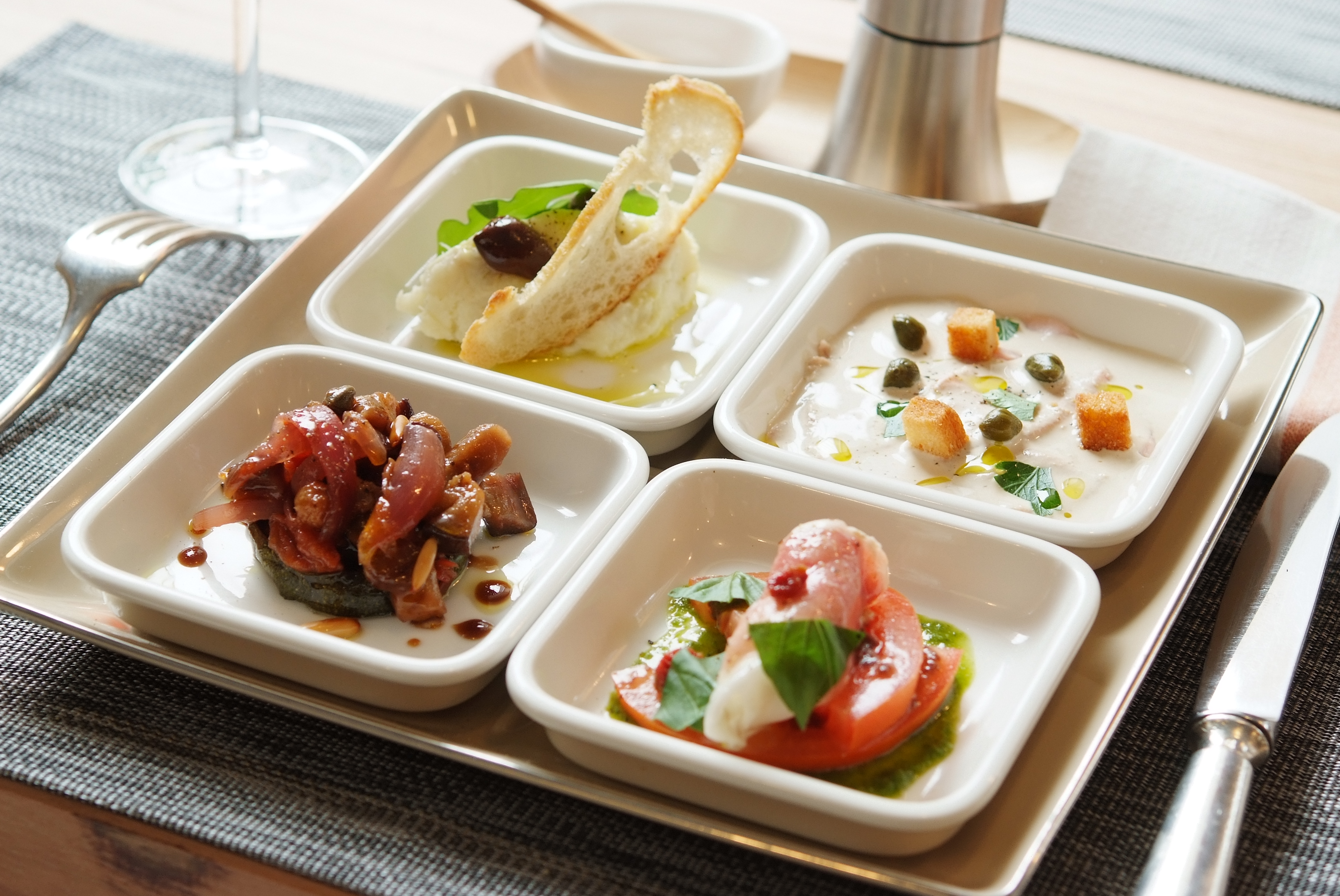 Très cher pour un plateau repas servi entrée plat dessert en même temps qu'on aurait pu acheter chez flunch ou carrefour. On a encore faim en sortant pour 26 € le repas en 15 minutes. Les antipasti ne sont pas maison et portion ridicule et le reste manque de goût. Au niveau sanitaire au moins c'est correct sauf que la solution hydroalcollique est vide... les serveurs sont sympas heureusement