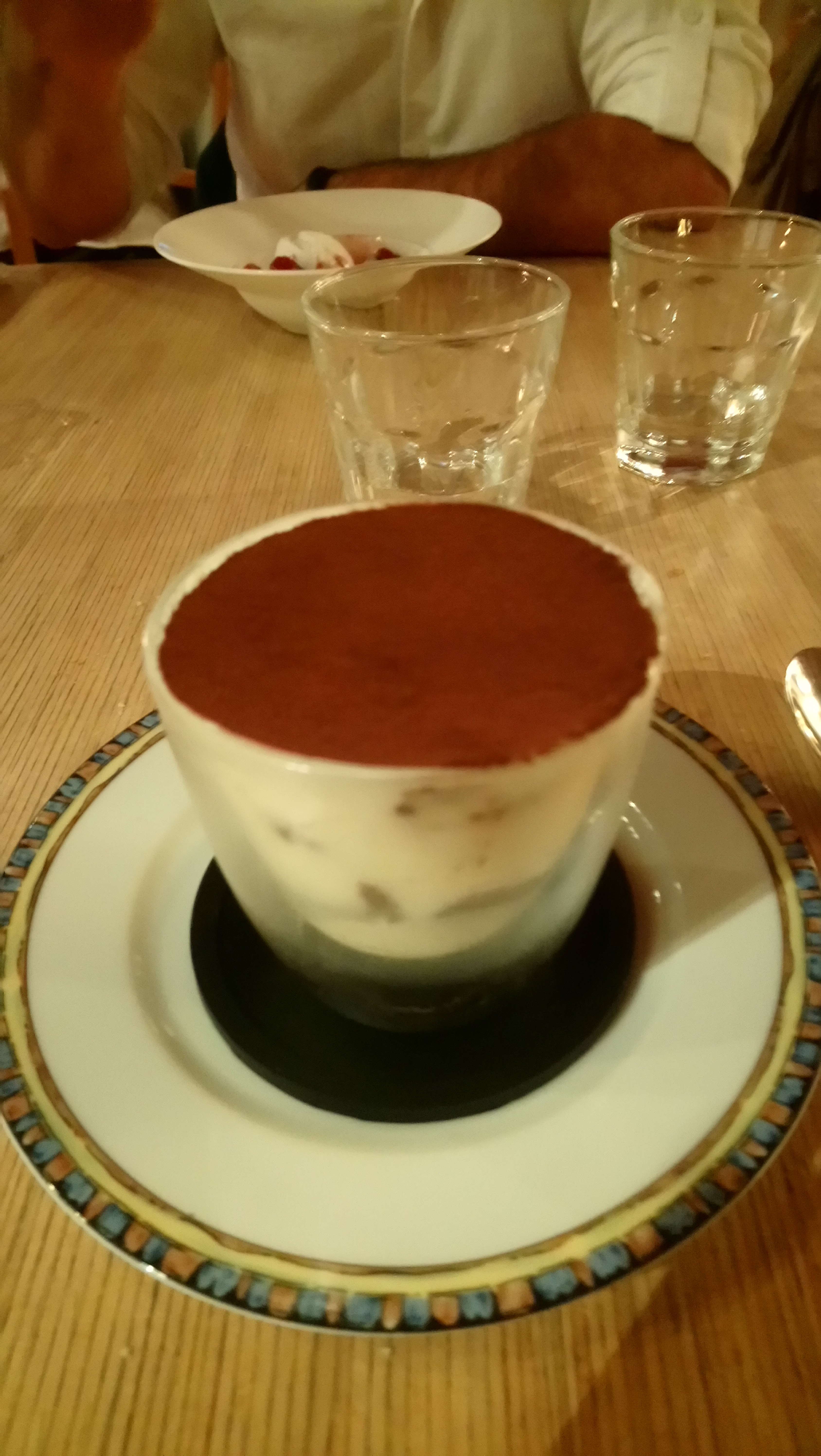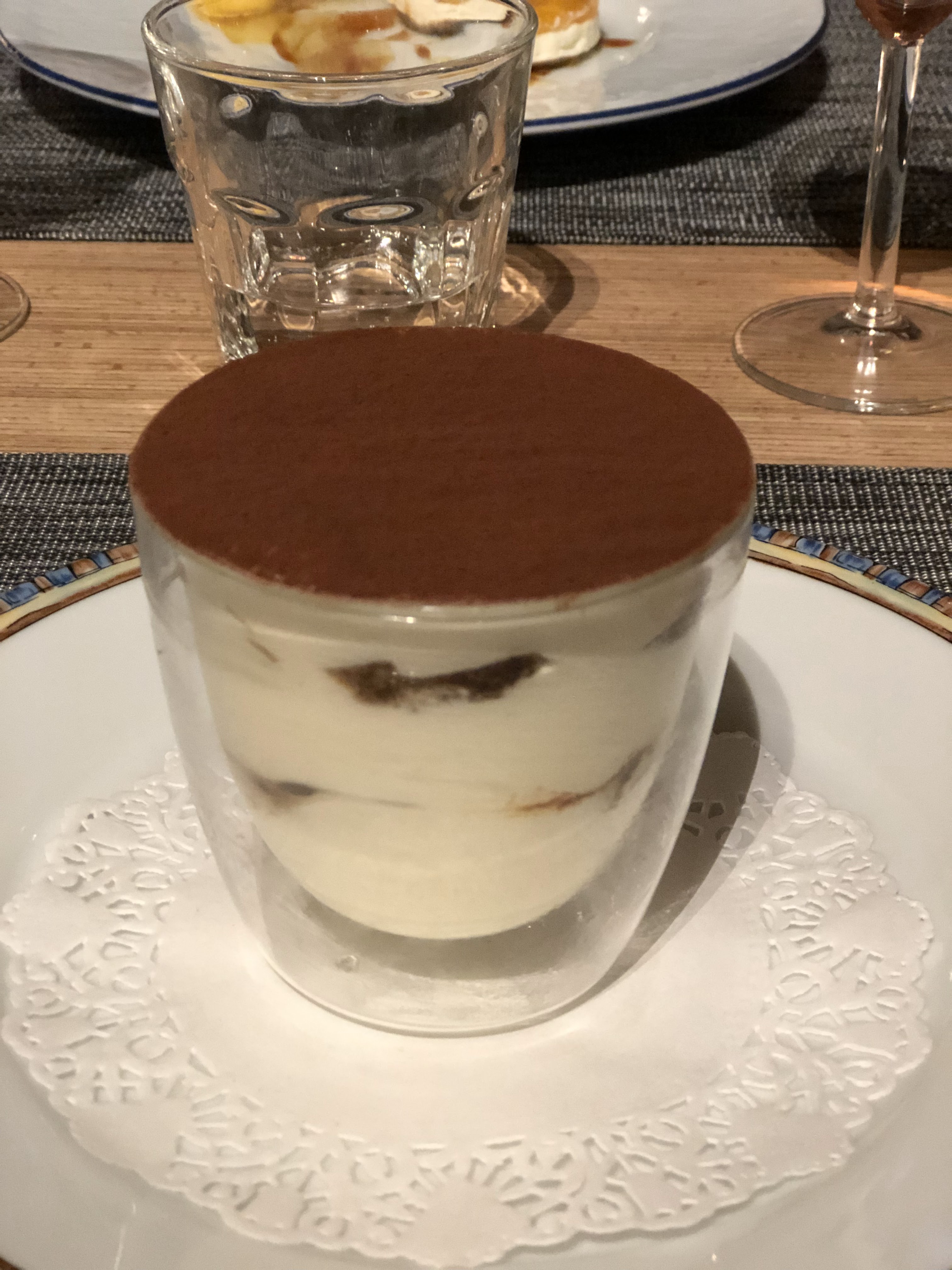 Cher Cliente, Nous vous remercions d'avoir pris le temps de nous faire part de votre repas à caffè cosi la trattoria . Nous nous excusons pour cet incident , surprenant car nos plats sont cuisinés à la minute .. mais comme vous l'avez trouvé très très bon .. nous sommes à moitié pardonné . (:-). Notre Tiramisu est très classique et il préparé chaque jour avant le service selon une recette de la région de Vérone . ( sans alcool avec les véritables biscuits pavesini ) Le goût est peut être différent de celui que vous avez l'habitude de déguster ailleurs . Nous espérons avoir le plaisir de vous accueillir à une autre occasion . a bientôt Toute l'équipe de caffè cosi la trattoria