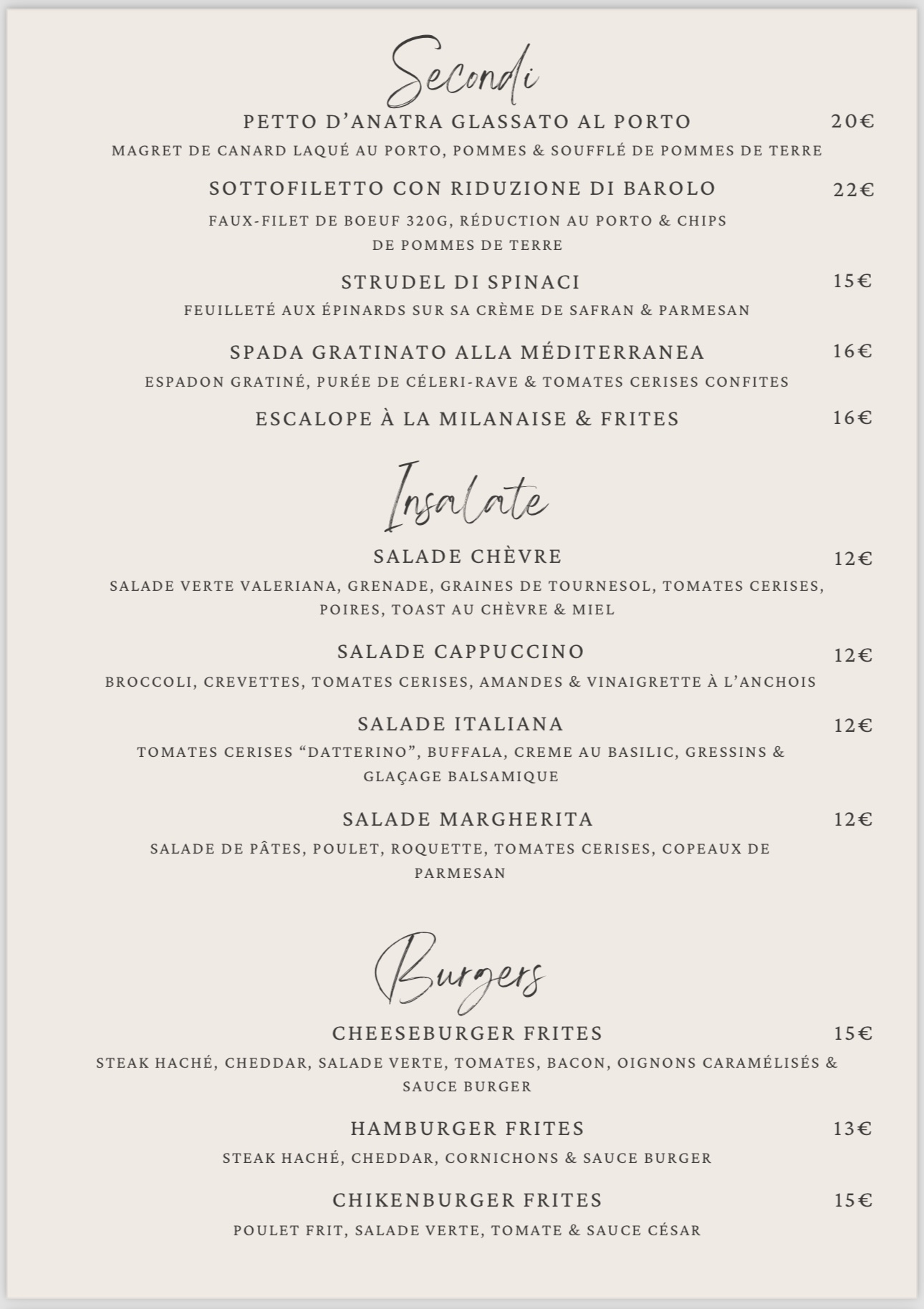 Depuis que tout les anciens serveurs sont partis c est plus du tout pareil on est bien dessus déjà y a 1 mois de ça on est venu boire un verre boisson servis sans glaçons ni touyette pour remuer le sirop, service plus que bâcler avec aucun sourire ni politesse même si on parle qu italien un bonjour c est pas interdit, pour les glaçons il a fallu qu on aille les demander et servir nous même sinon boisson imbuvable car Orangina chaud Et alors ce soir ça a été la fois de trop repas immangeable car trop épicer trop sec et pas cuit carbonara trop poivré pâte plus qu aldenté limite cru et pas asser de sauce qui n était même pas une carbonara, espadon cru, gnocchi trop farineux et mou, faux filet complètement cru et impossible à couper tellement il y avait de nerfs sauce au poivré qui avait le goût de médicament et avant le plat qui n aurait pas été servi si on ne les avait pas demander en voyant arriver au moment du service du plat seule choses de positive ça à était les desserts sauf la glace qui était déjà fondu en arrivant devant nous et un seul des serveur reste aimable souriant poli et soucieux de ses clients c est un des seul ancien qui reste le brun avec une petite couette et la serveuse blonde au bar qui encaisse bravo à eux 2 et un grand merci On est des ancien clients qui jusqu a la était content du capuccino mais la c est trop on ne reviendra pls car trop dessus. Avant le capuccino **** Maintenant le capuccino * On ne le recommandera plus jamais c est bien dommage.