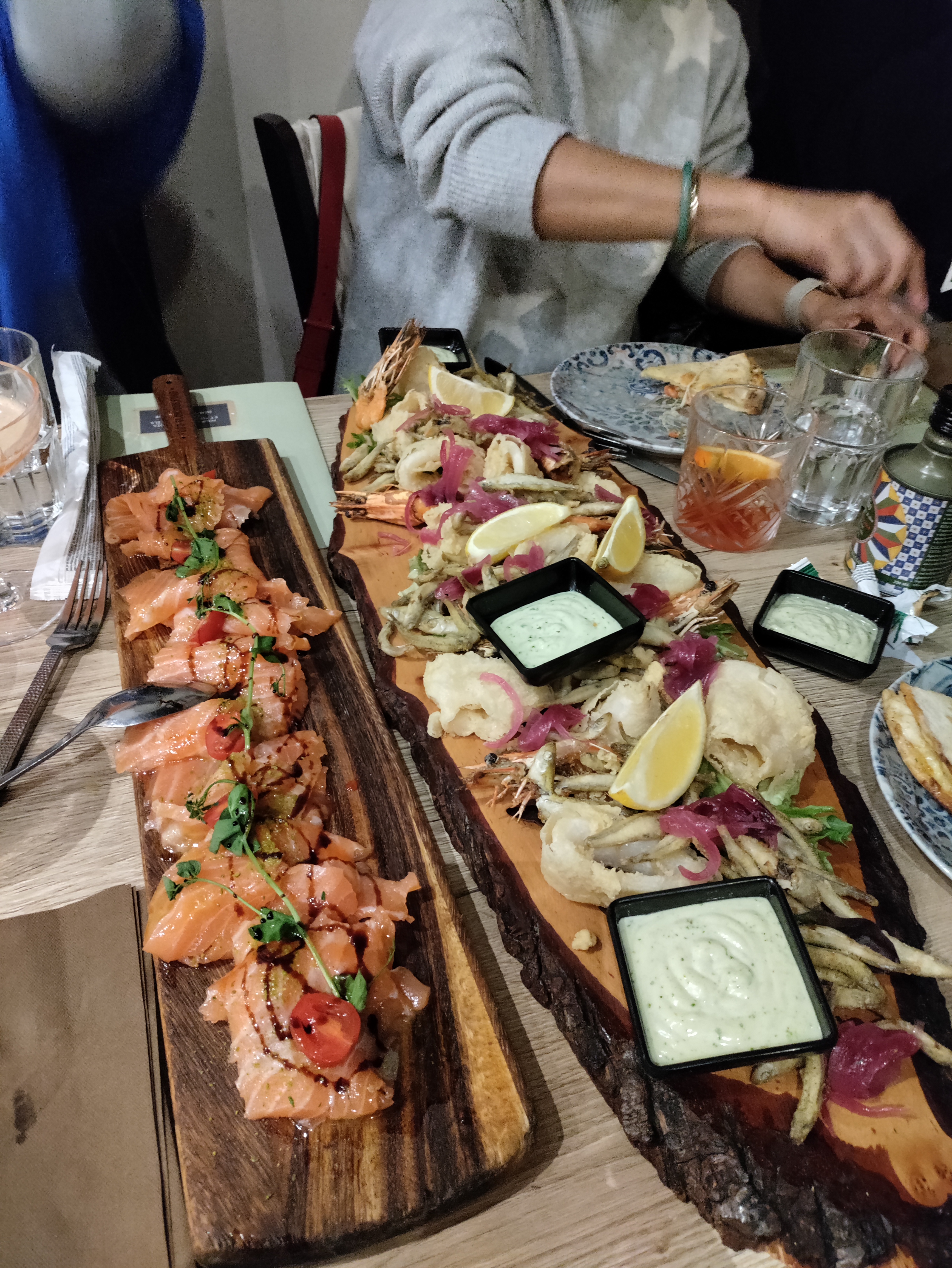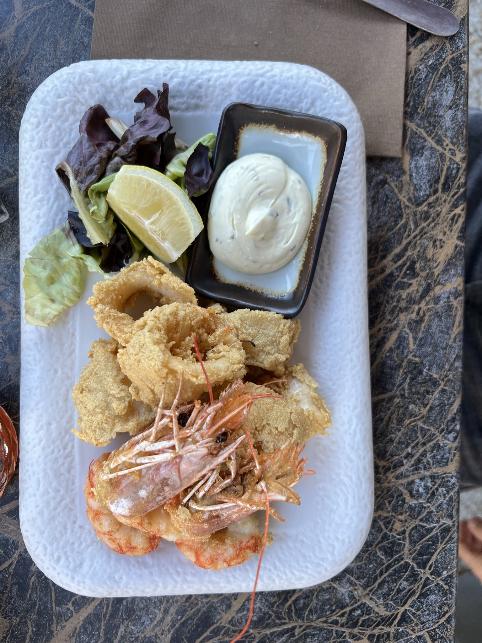 Restaurant à essayer plats bon. Ne pas oublier de réserver sinon pas de place. Poêlée de palourdes un délice. Poêlée de St Jacques bon et foccacia jambon de parme bon
