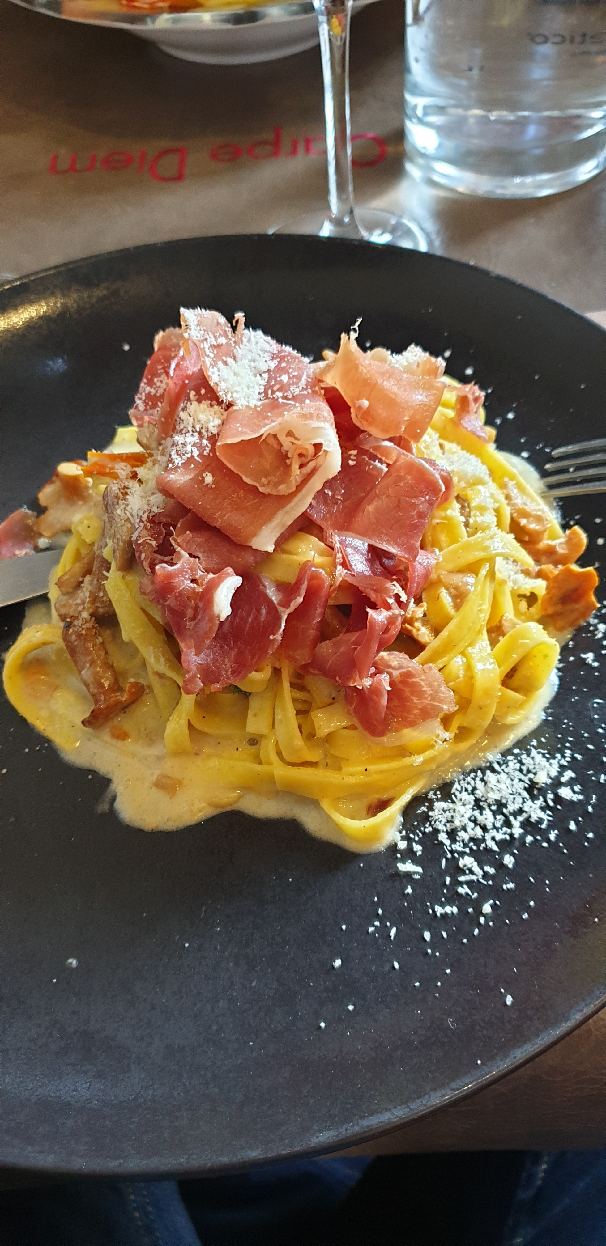 Tout est parfait au CarpeDiem. Ici pas de lasagnes classiques ou pizzas basiques mais des plats italiens généreux, délicieux et servis avec une telle gentillesse ! Merci d’avoir modifié les pâtes pour satisfaire les enfants et les grands. Le tout avec un excellent rapport qualité prix .