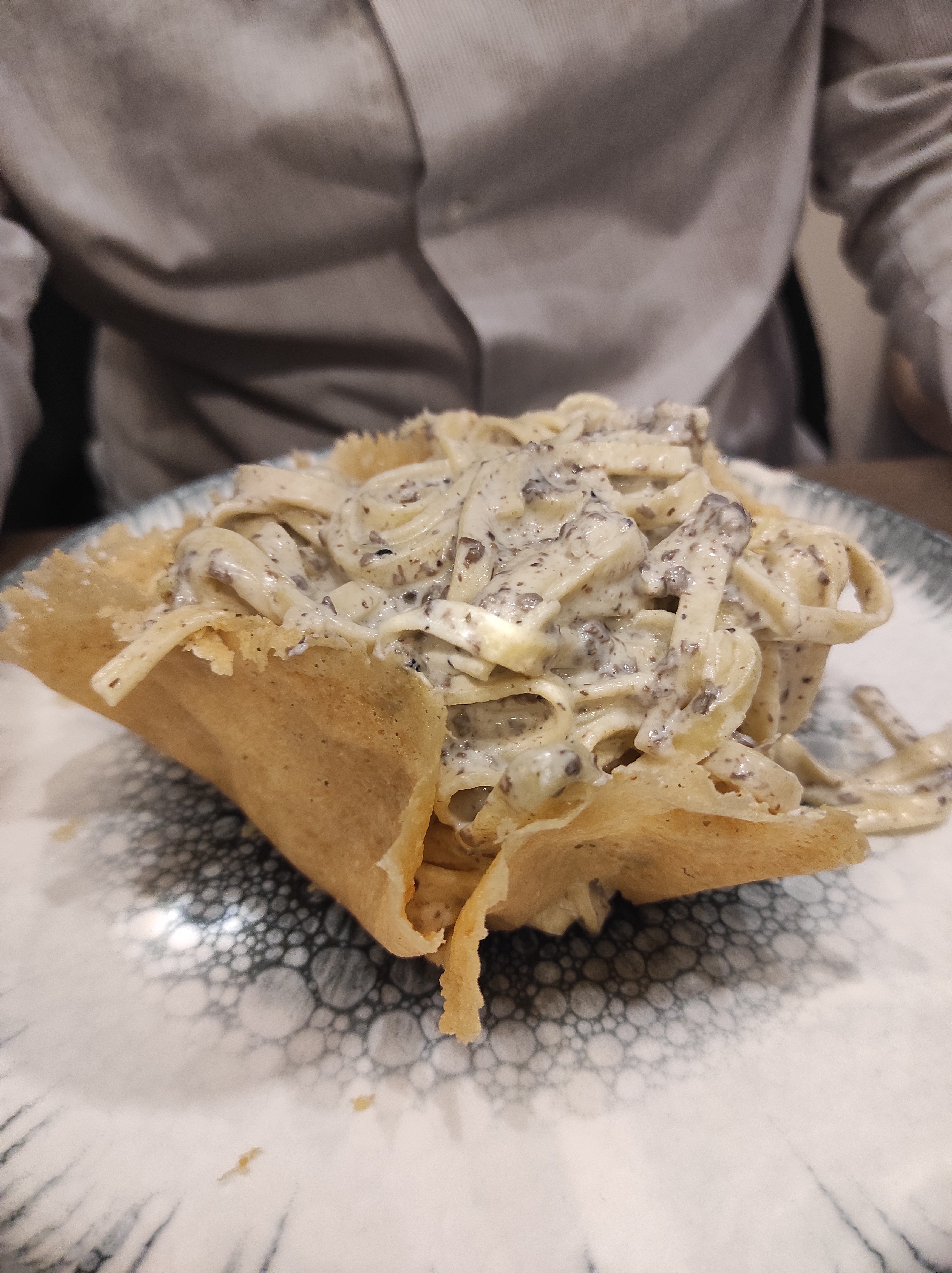 Je suis très déçue. Le restaurant est très petit donc on ne s’entend pas parler et on plus il y a les odeurs de cuisine. Les entrées étaient correctes. J’ai été choqué quand j’ai vu qu’il ne changeait pas les couverts entre les entrées et les plats alors que tous les couverts étaient plein de pesto. Ma grande déception vient surtout des plats. J’ai pris les tagliatelles aux girolles et elles étaient surgelées, à 20 euros le plat !!! Le plat de coquilles saint Jacques n’était pas non plus fabuleux. Donc non ce restaurant ne mérite pas les notes qui lui sont attribuées. 95 euros a deux c’est de vol