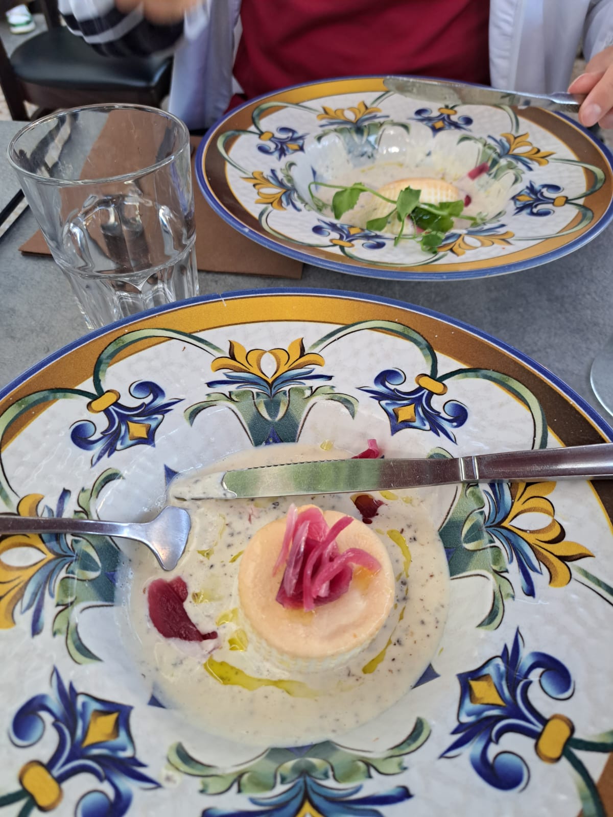 En couple, nous avons décidé d'aller voyager sans prendre l'avion.... Transport à quelques kilomètres de notre domicile et direction la Sicile.... Quel voyage.... Aussitôt dit... Aussitôt arrivés.... Je ne vais pas parler de notre repas en totalité mais juste de mon plat principal... (le reste était tout aussi bon...) Je déteste la soupe mais je me suis lancé pour la royale de ce restaurant.... Merci merci et re merci de ce plat qui a dépassé toutes mes attentes... Je ne pourrais que vous conseiller d'y aller... Laissez vous portez par ces saveurs, ces aromates... Vous ne regretterez pas