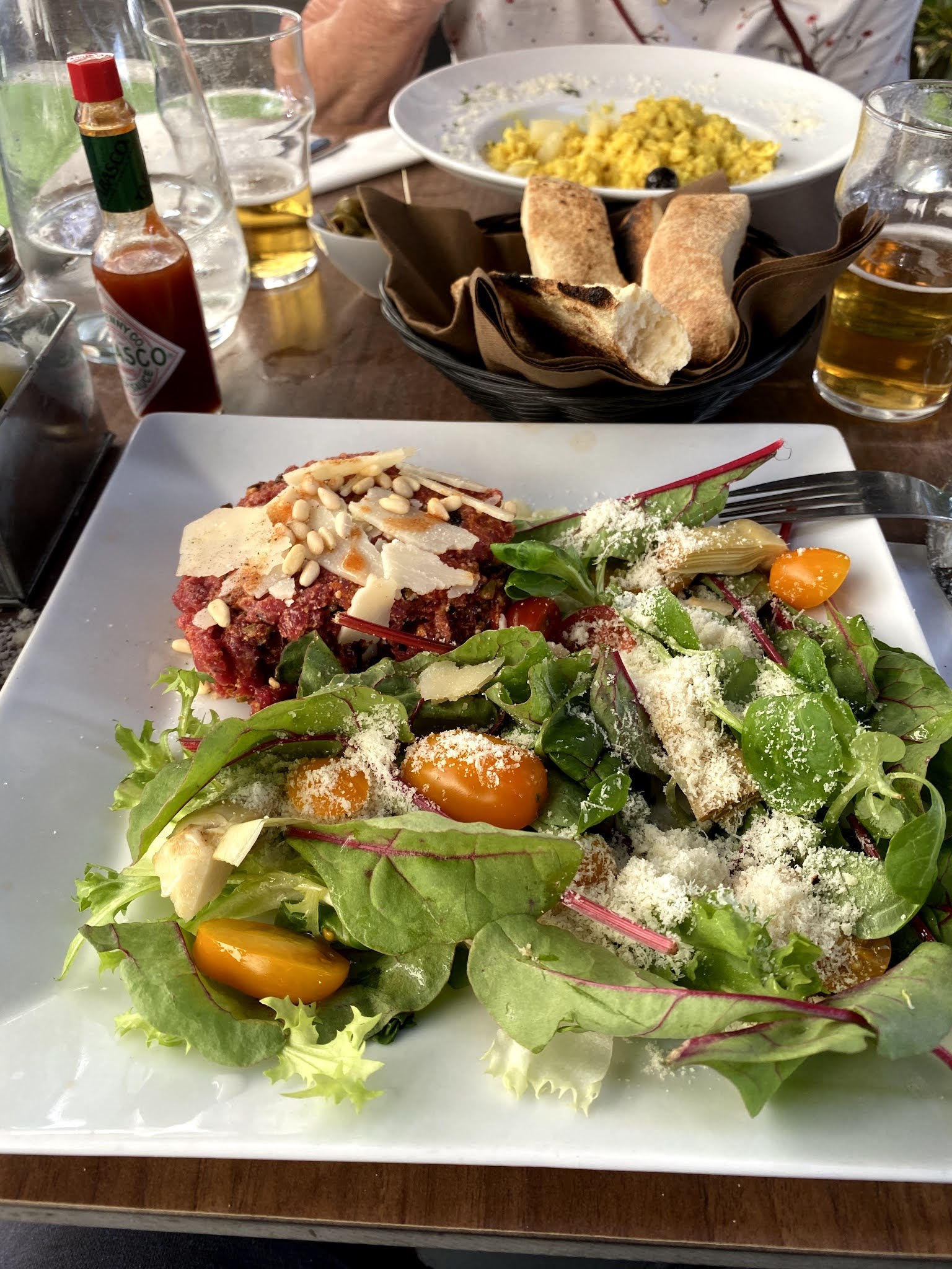 1 ère expérience à la casa ferretti. Nous sommes venues à 4, on a commandé 2 salades bien copieuses ❤️ et une grande pizza au saumon très bonne! Ensuite la touche finale une belle et bonne assiette de carpaccio sans la burrata😂 car je ne suis pas fan ☺️😉 La gentille et adorable serveuse m’a proposé des copeaux de parmesan avec de la salade, olives noires, cœur artichaut… très raffiné 😉 C’était excellent et en plus de cela le prix est vraiment correct 👍 on y mange et on se sent bien 🤩 On a passé un superbe moment 🙏 On reviendra avec plaisir 😍