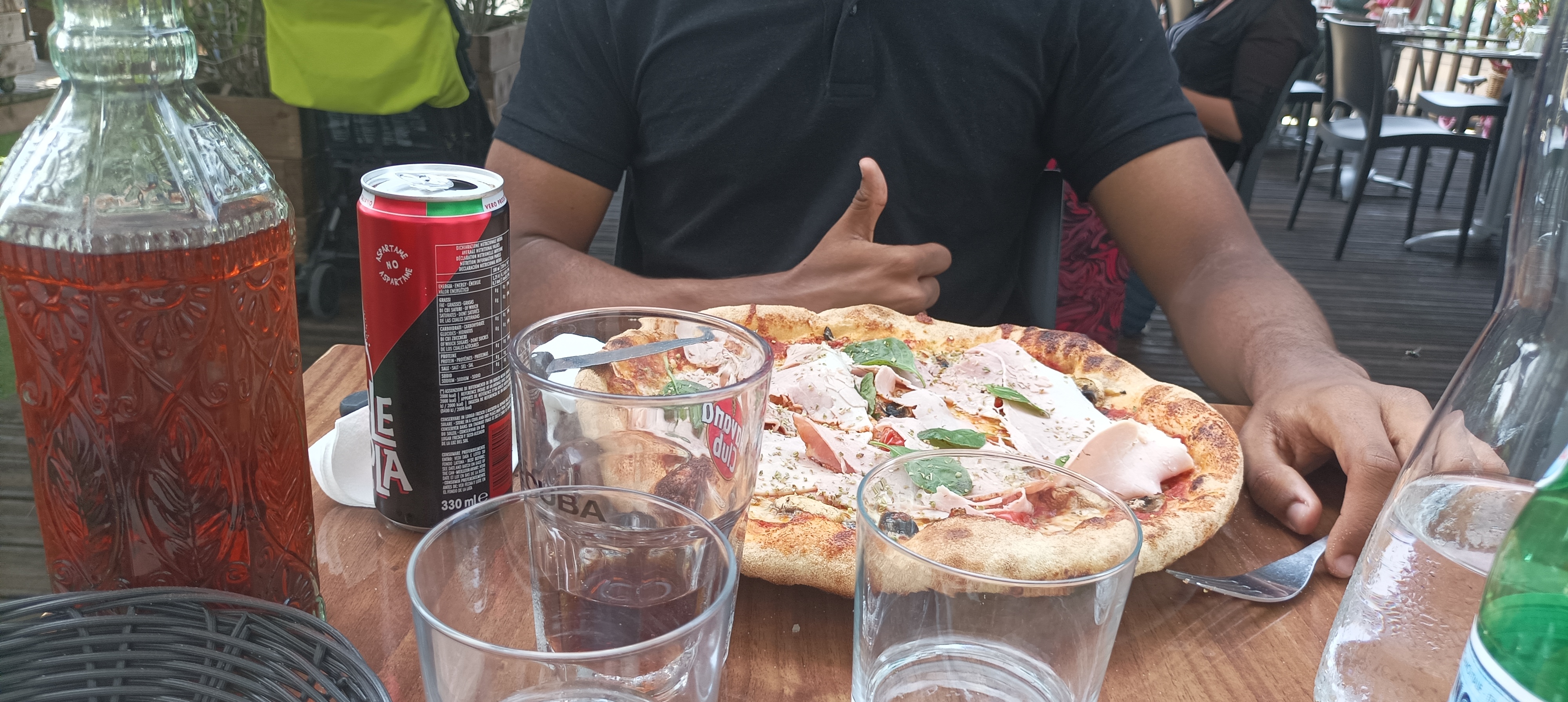 Excellent accueil, comme toujours par Zacharia. Il nous présente le nouveau serveur Kevin. Ce dernier est plein d’entrain, aux petits soins et se prête avec sourire à toutes nos plaisanteries. Je me répète : pizza copieuse, preparée comme je l’ai demandée. D’autres plats très originaux et bien appréciés, piselli mafia, caprino miele. Nous avons donc passé avec nos amis une soirée chaleureuse. Heureusement que nous avons ce restaurant dans notre quartier Ginko. Merci.