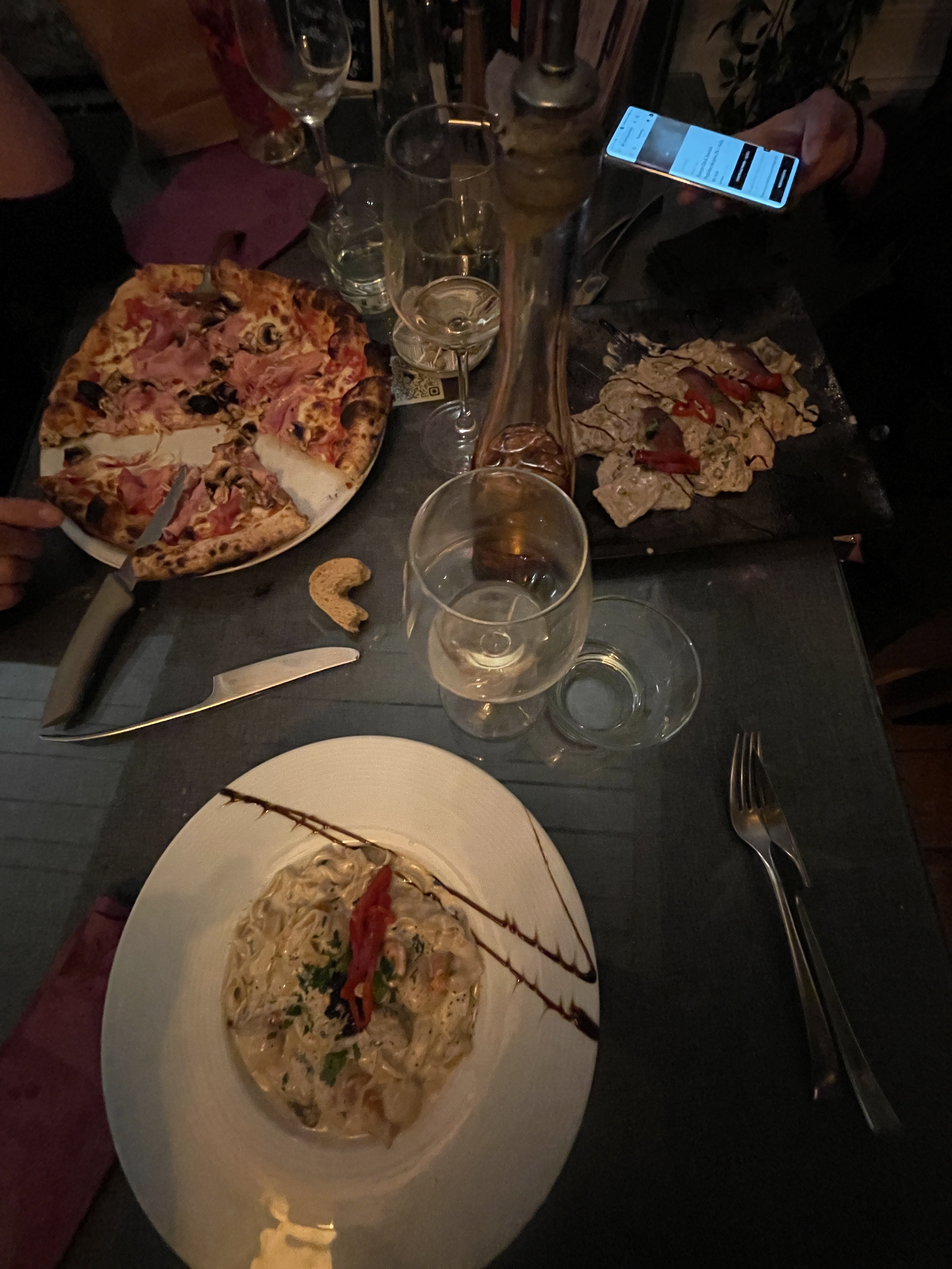 On a très bien mangé, les pizzas sont délicieuses, les pâtes al dente (il faut les aimer ainsi) par contre comme c'est très prisé, qu'il y a beaucoup de réservations, tout va vite, je ne dirai pas qu'on nous expédie mais on ne peut pas trop prendre son temps pour réfléchir et commander!