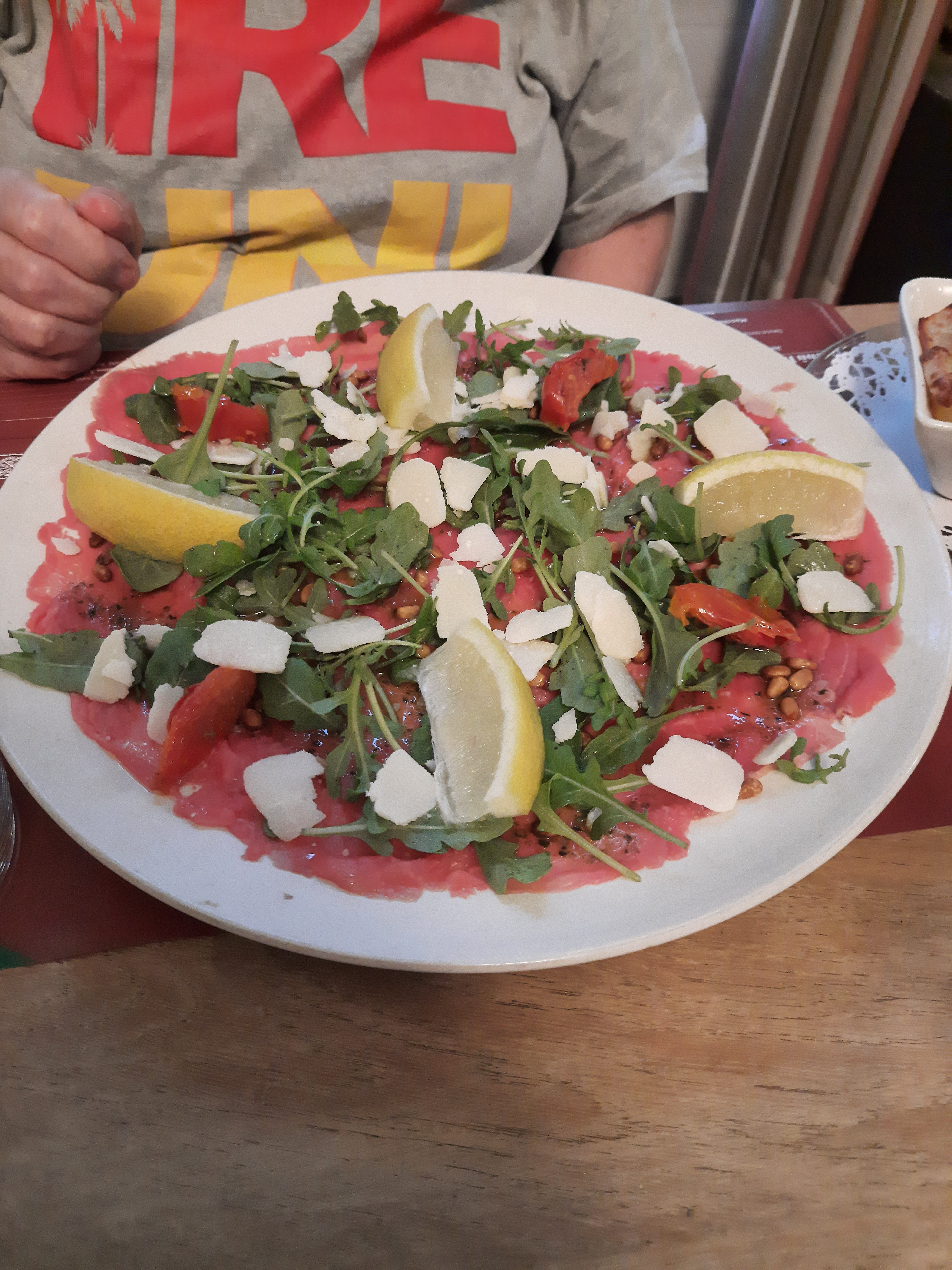 Bon accueil personnel agréable menu typique italien plat copieux et bien préparé