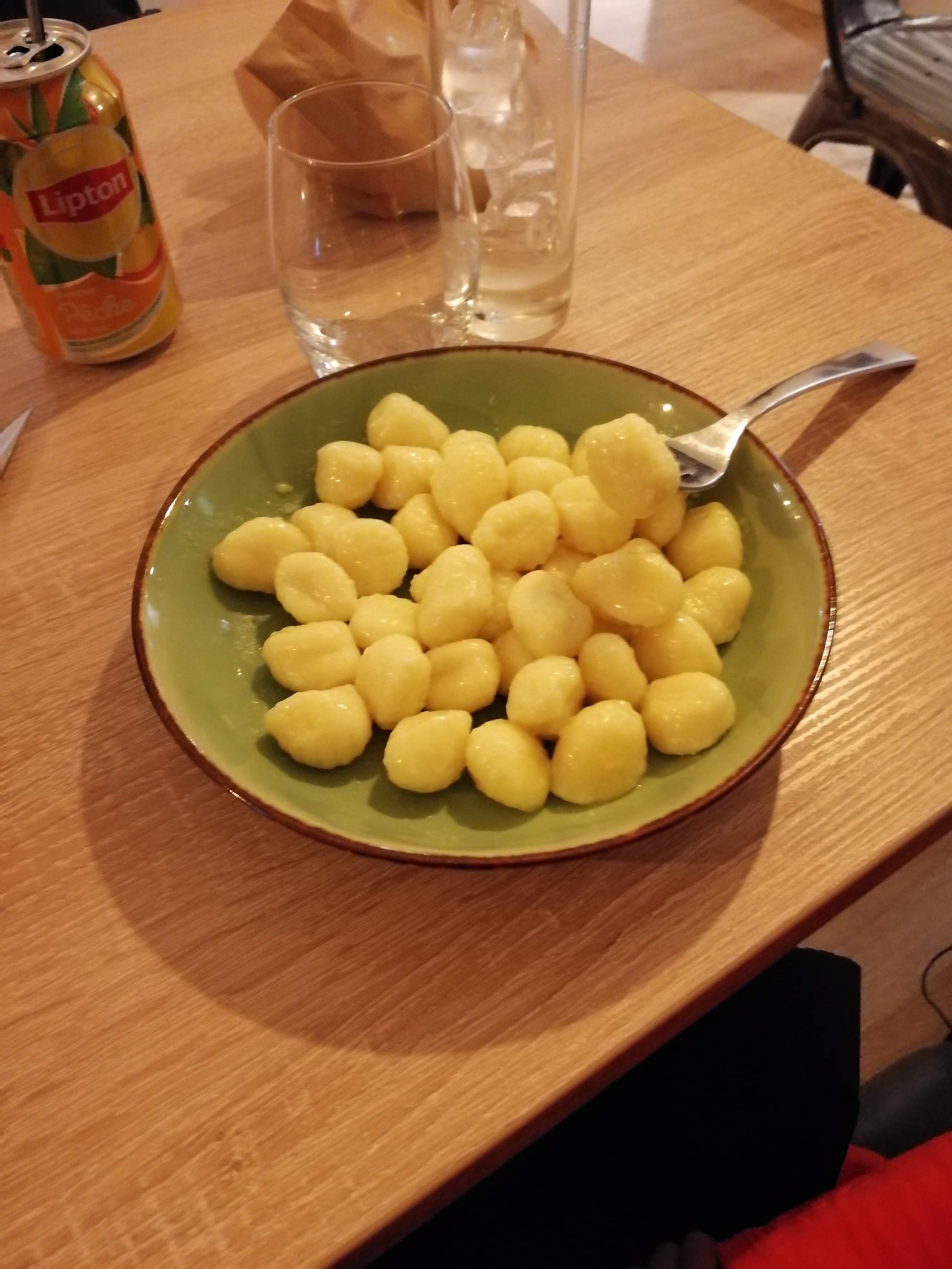 Y ai mangé de Gnocchis, crème au parmesan et jambon truffé. C'était délicieux et la ruelle était très calme. Mais la portion était ridicule, deux assiettes ne m'auraient pas suffis. Donc je recommande si vous n'êtes pas gros mangeur