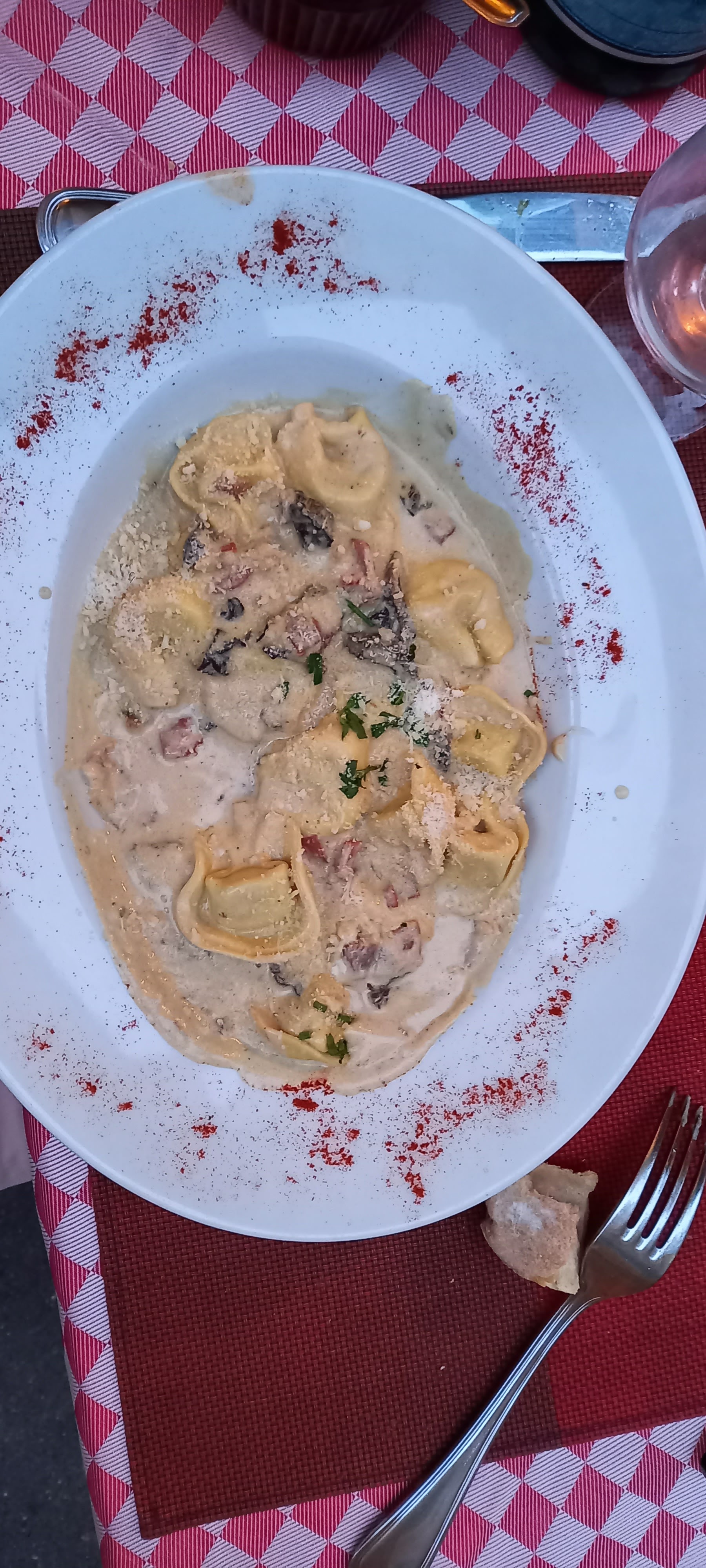 Je suis passée devant et ça m'a inspirée. J'ai retrouvé cette ambiance des petits restos en Sicile, cuisine simple mais excellente, les assiettes sont généreuses et le vin parfaitement accordé. J'ai laissé le maître des lieux me faire des recommandations et j'ai suivi ses conseils. C'était parfait : tortelloni sauce mascarpone tomate suivi d'un tiramisu. Comme il se doit je termine ce repas déjà trop copieux par un ristretto et le patron m'offre un limoncello en digestif. Que demander de mieux après une journée découverte d'Aix et ses environs.... Je recommande vivement et si je reviens sur Aix, évidemment j'y retourne. Merci chef!