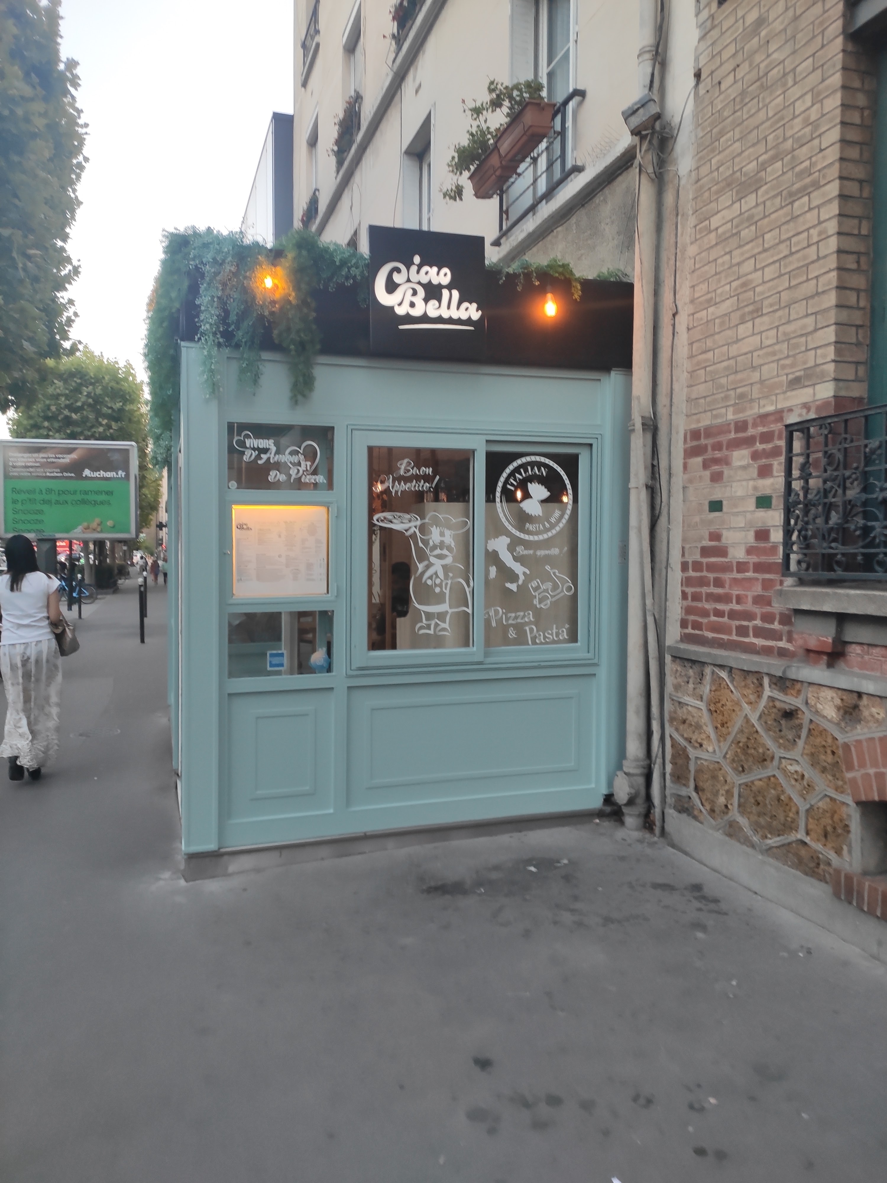 Ciao Bella a séduit toute ma famille à l'unanimité. La terrasse est top,fraîche, cosy.La carte est riche, juste ce qu'il faut, ni trop ni trop peu.Nous avons goûté les pizzas, les pâtes, une plancha ,le tiramisu, savoureux!!! Quel plaisir d'avoir ce genre d'endroit à Boulogne. L'accueil est pro. Du coup, nous nous sommes fait livrer des pizzas à l'occasion d'un anniversaire .Je recommande vivement ! Très courageux d'ouvrir un commerce en ces temps difficiles. Bravo à ces garçons et leur staff !!!!!😉😊🤗