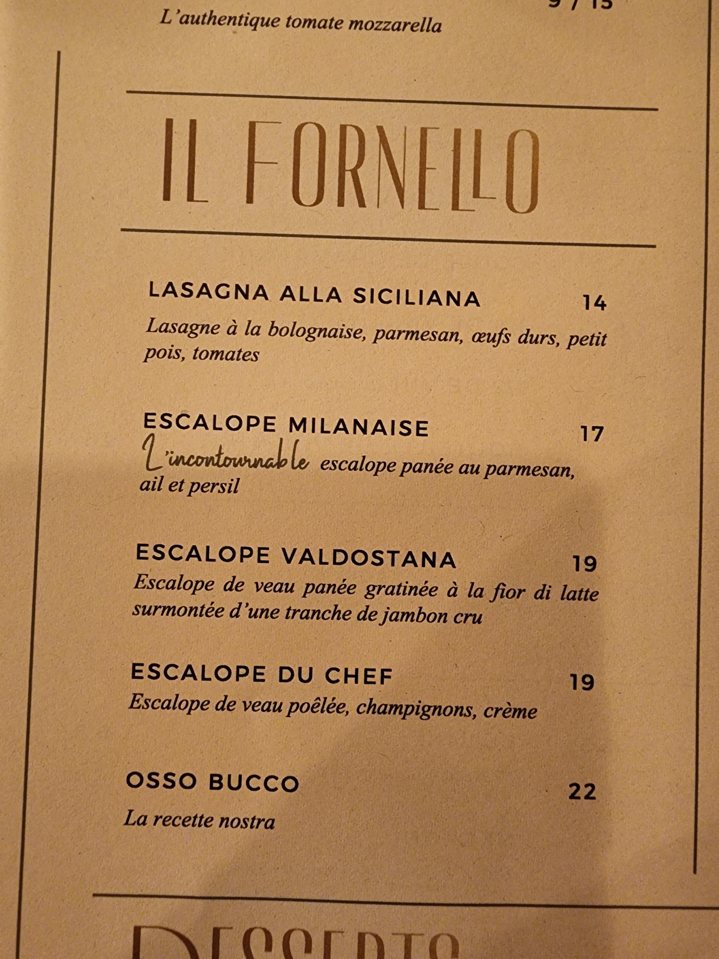 Excellent restaurant italien , l'escalope milanaise est succulente. chaleureux accueil tant par le personnel que le propriétaire des lieux Un voyage en Italie un soir de décembre remonte vraiment le moral ! On reviendra pour sur !! 👏🎶⭐⭐⭐⭐🌷