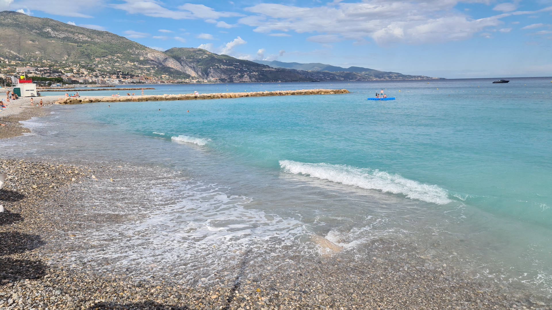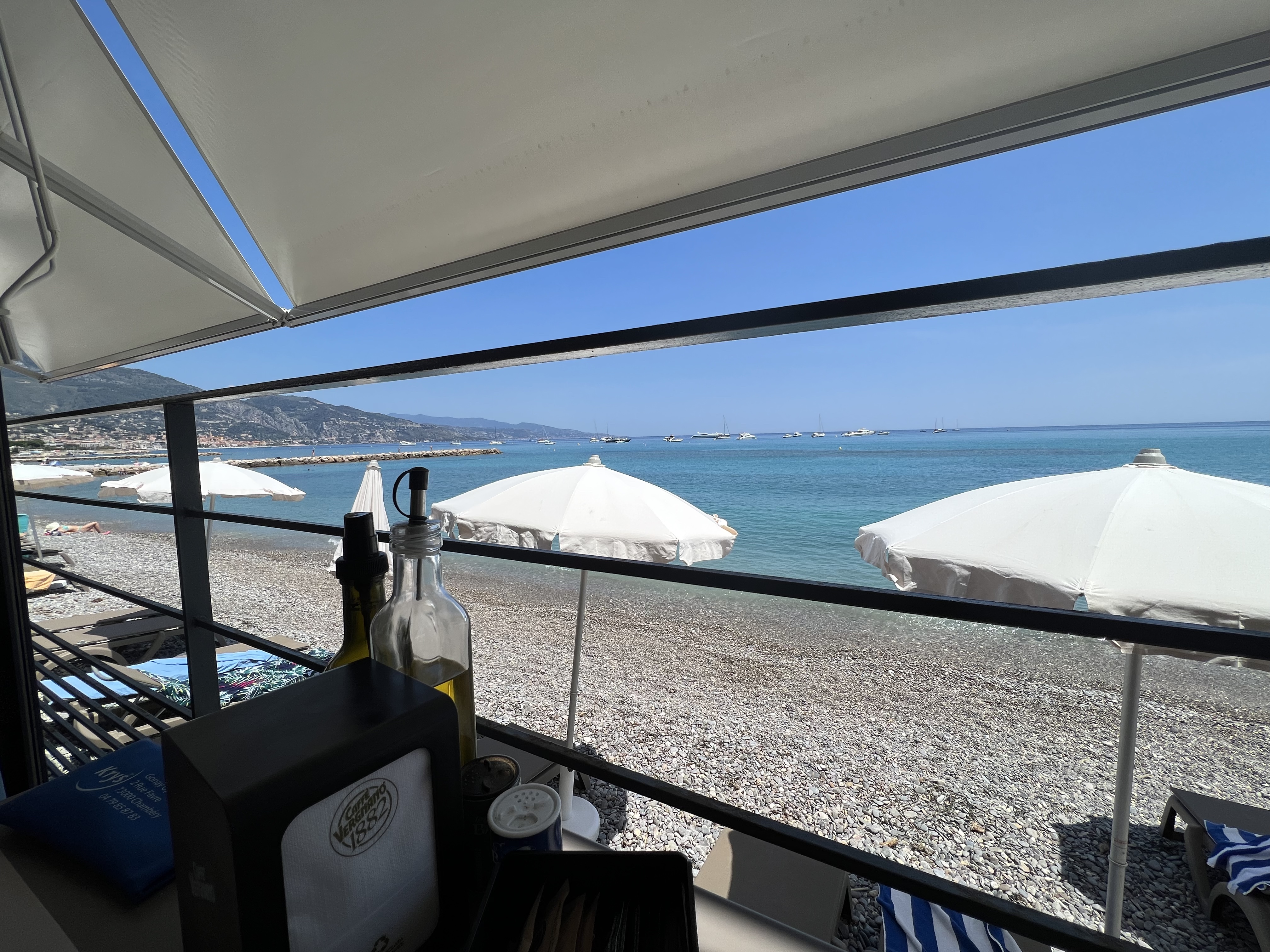 Excellente adresse: personnel sympathique, restaurant vraiment bon et matelas pas trop tassés. La mer devant est tranquille et on y voit des poissons. Plage de galets (normal à Menton) donc pensez à vos chaussures de bains, attention le soleil passe derrière les montagnes assez tôt, vers 1730-18 heures en août. Notre spot préféré à Menton.