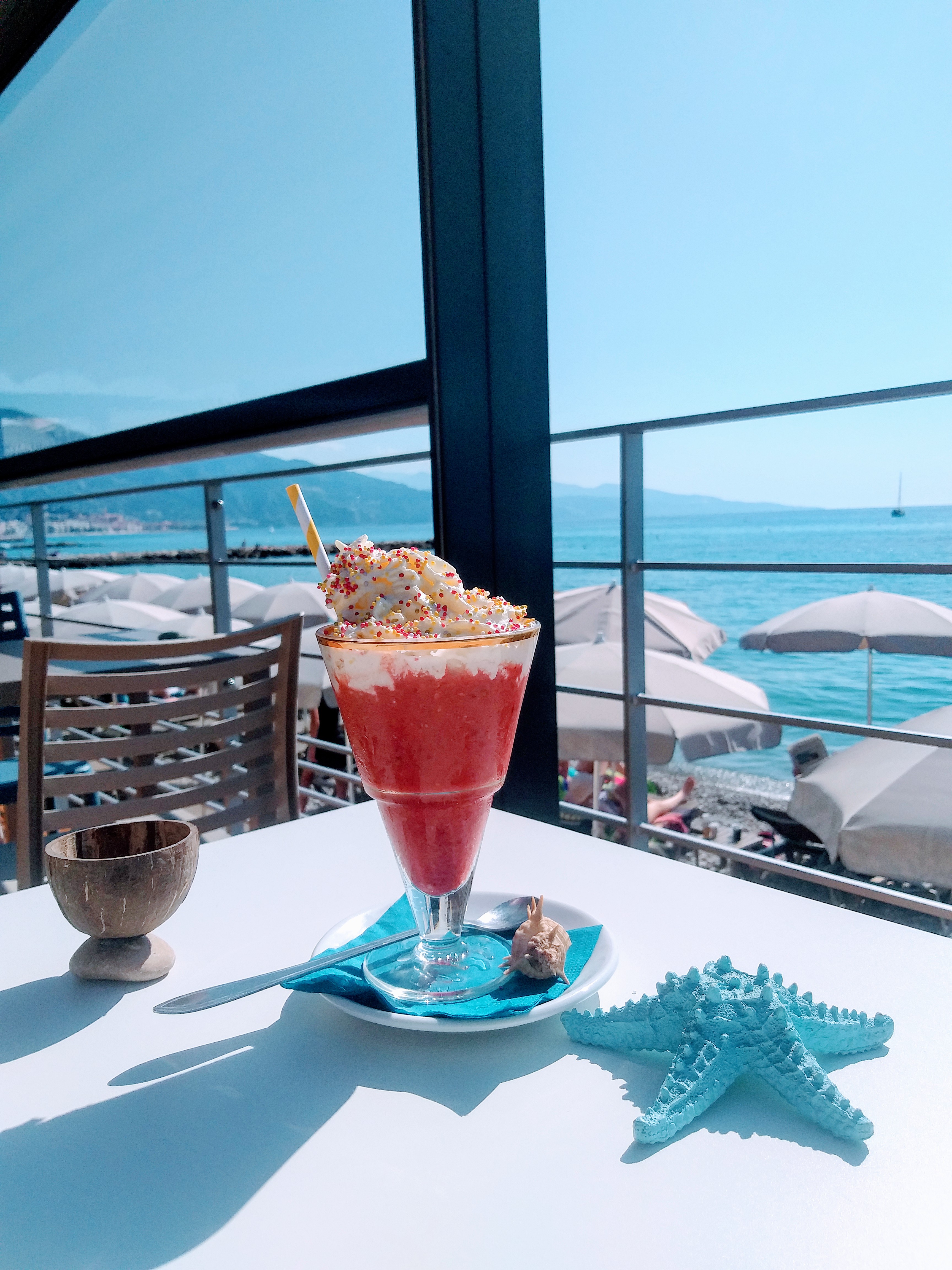 On peut y prendre un bon repas et profiter d'une vue magnifique sur la plage de Carnolès
