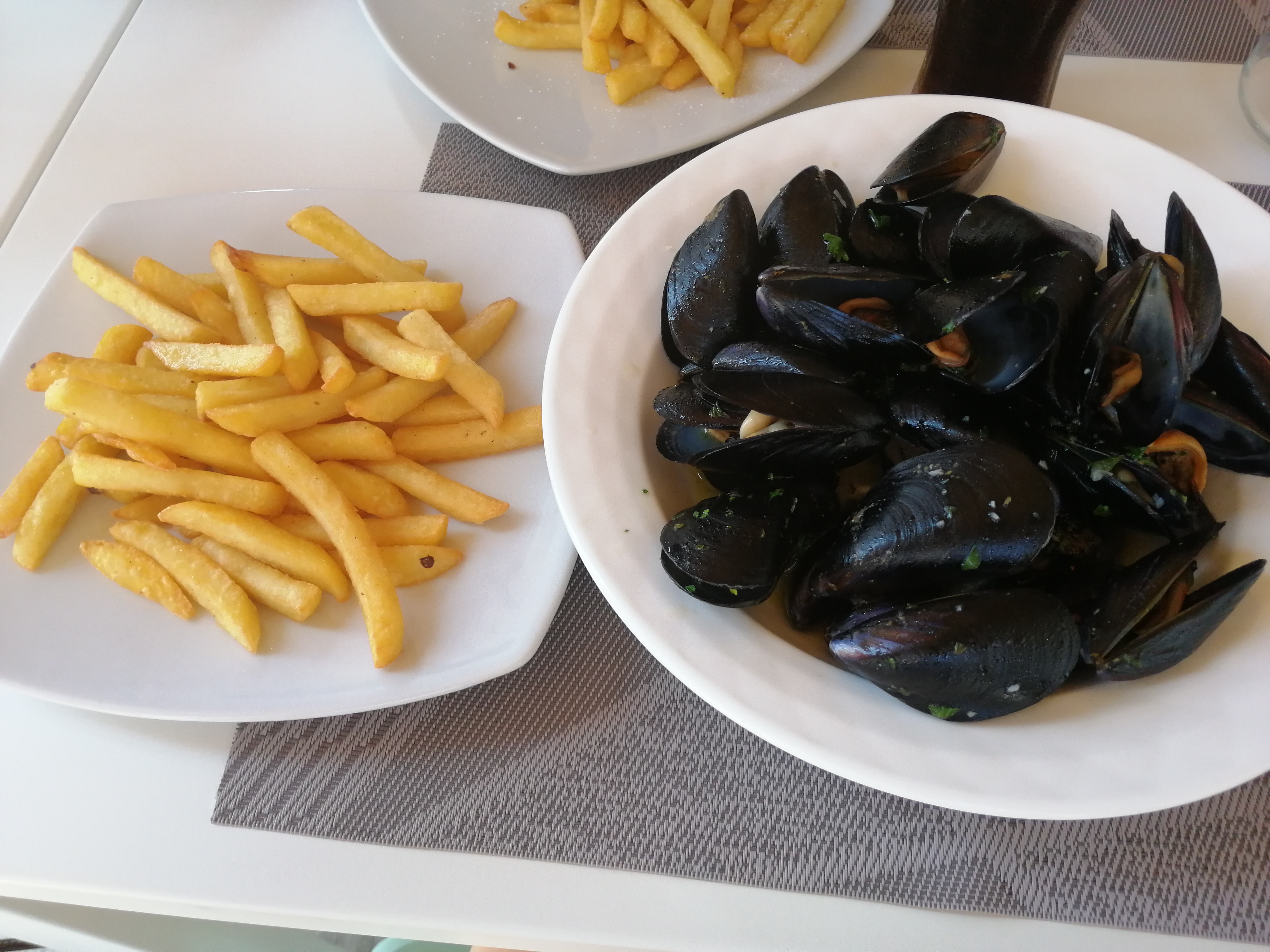Cadre très agréable, belle vue, fritures et moules excellentes, grandes portions, profiteroles délicieuses, service rapide et gentillesse 💛👍