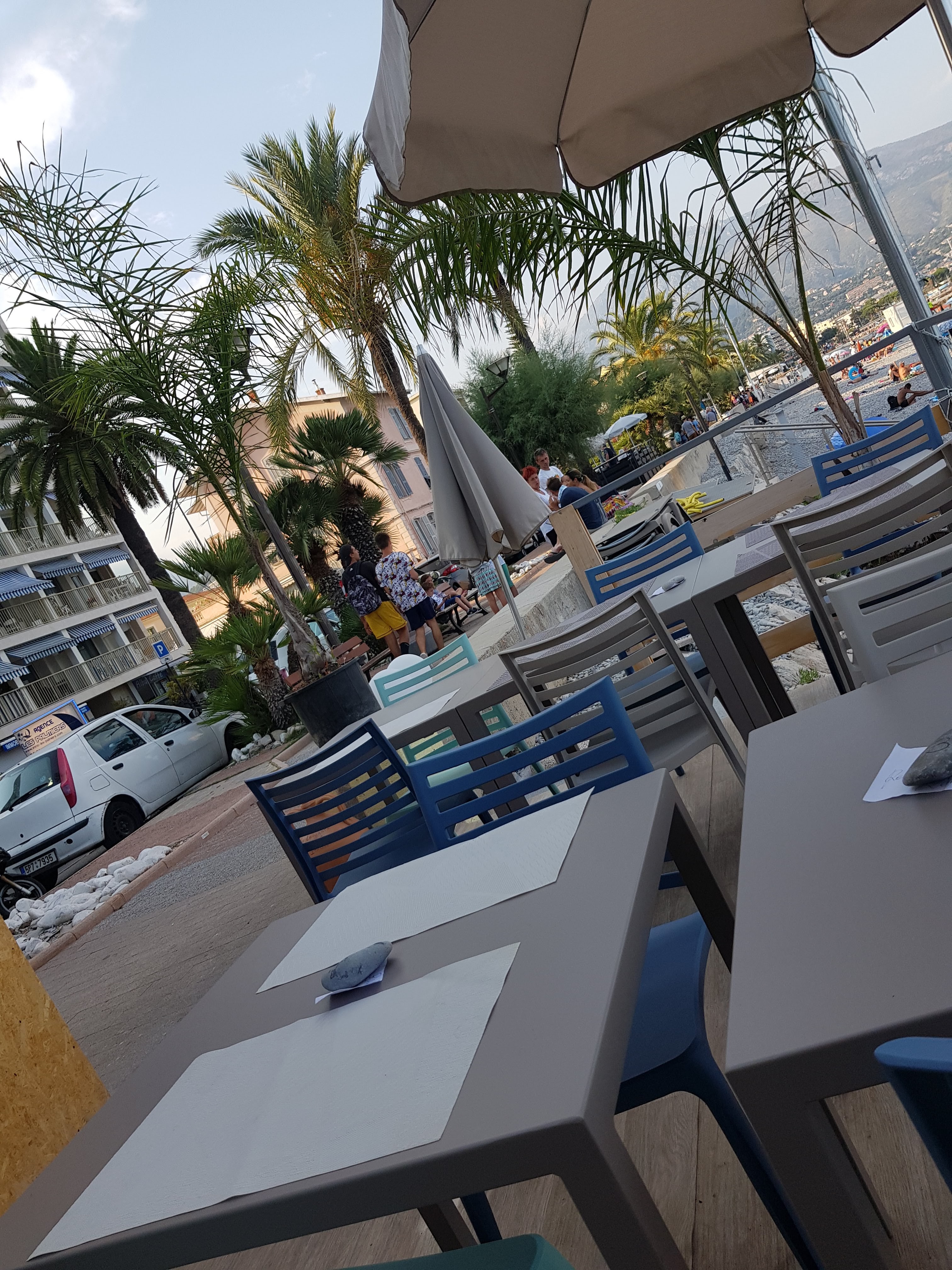 Petit établissement en bord de mer avec tables et chaises en plastique pour le confort, on repassera ! En plus, les toilettes sont vraiment minuscules, pas de place pour les personnes costauds ou handicapées. C'est dommage car on a une jolie vue sur la plage et le cap martin.