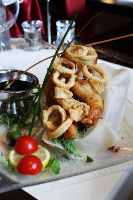 Accueil: Vous avez réservé? Non. La patronne, une Polonaise qui fait dans le filon italien, nous place alors, d'un air pincé, au pire endroit: vue sur les escaliers qui descendent aux cuisines, dans le passage: combien de pieds ont-ils buté contre ma chaise? Je n'ai pas compté. Mais si vous venez à dix, et qu'en plus, vous avez réservé, alors vous serez aux petits oignons. Si vous venez seul sans avoir réservé, alors, vous irez à la plonge. Questions du serveur en chef, Italien, comme il se doit, couleur locale oblige: Vous avez fini? C'est qu'en ce vendredi soir, il faut dégager: deux amoureux qui s'attardent, c'est un manque à gagner. Sitôt terminé, les assiettes sont enlevées. Au dessert, comme je n'ai pas fini, le même serveur (en chef), me fait remarquer qu'il en reste! On vous le conserve au frigo, ajoute-t-il avant de faire la publicité du parking du restaurant, à quatre euros pour un temps illimité. Nous sommes partis dans l'anonymat le plus complet.