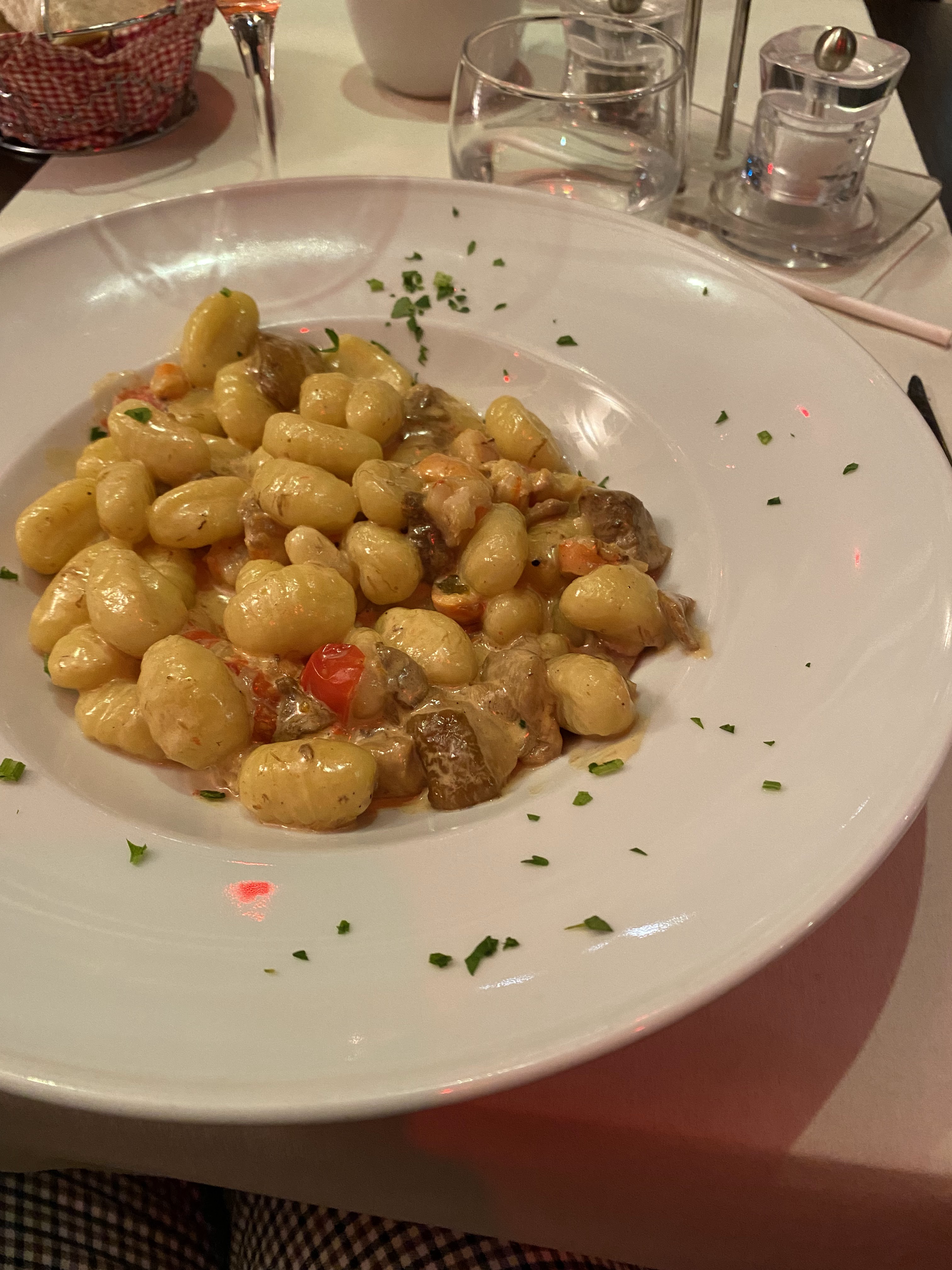 adresse très sympathique, genre bistrot-trattoria pittoresque , à l'ambiance sonore et chaleureuse. cuisine goûteuse et copieuse, même si en matiére de gastronomie italienne, il y a peut être plus raffiné ailleurs sur la région.