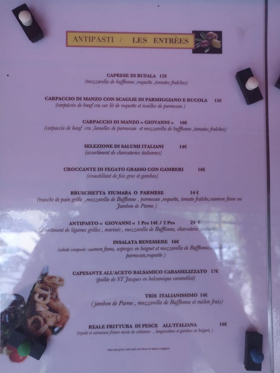 Une belle découverte de cet excellent restaurant aujourd'hui. Une cuisine délicieuse, copieuse qui me rappelle si bien l'Italie. Un personnel accueillant, au petit soin avec la clientèle et surtout, oui surtout, des italiens. Vous allez nous revoir très prochainement et souvent. Merci pour votre accueil et vos sourires. Kalou de Marie-Galante. J'ai appris la fermeture du restaurant mais malgré toutes les critiques et les méchancetés de certains avis, je vous soutiens et vous soutiendrai toujours ! Car ayant la maladie de Crohn et très atteinte par celle-ci, si les aliments ne sont pas frais, je très malade de suite et fini aux urgences. Cette maladie est mon baromètre pour la fraîcheur des ingrédients. Alors, Mesdames et messieurs les critiqueurs et mécontents éternellement, allez plutôt manger chez MAC DONALD !!! 😠😠😠😠