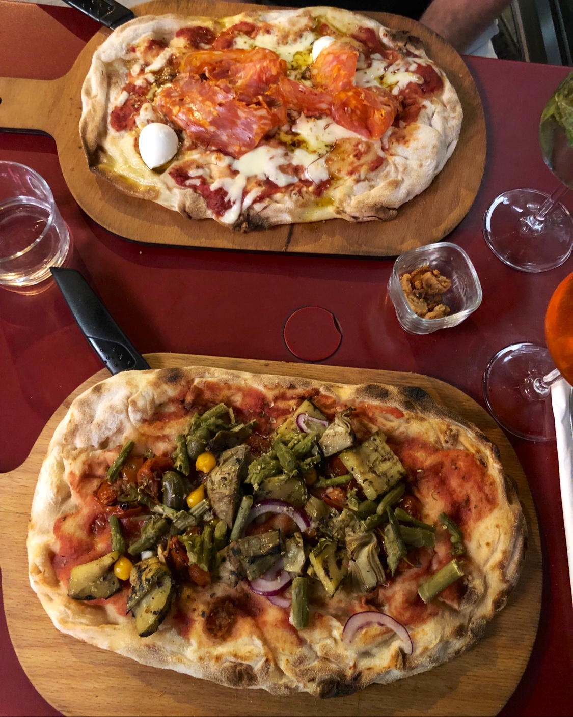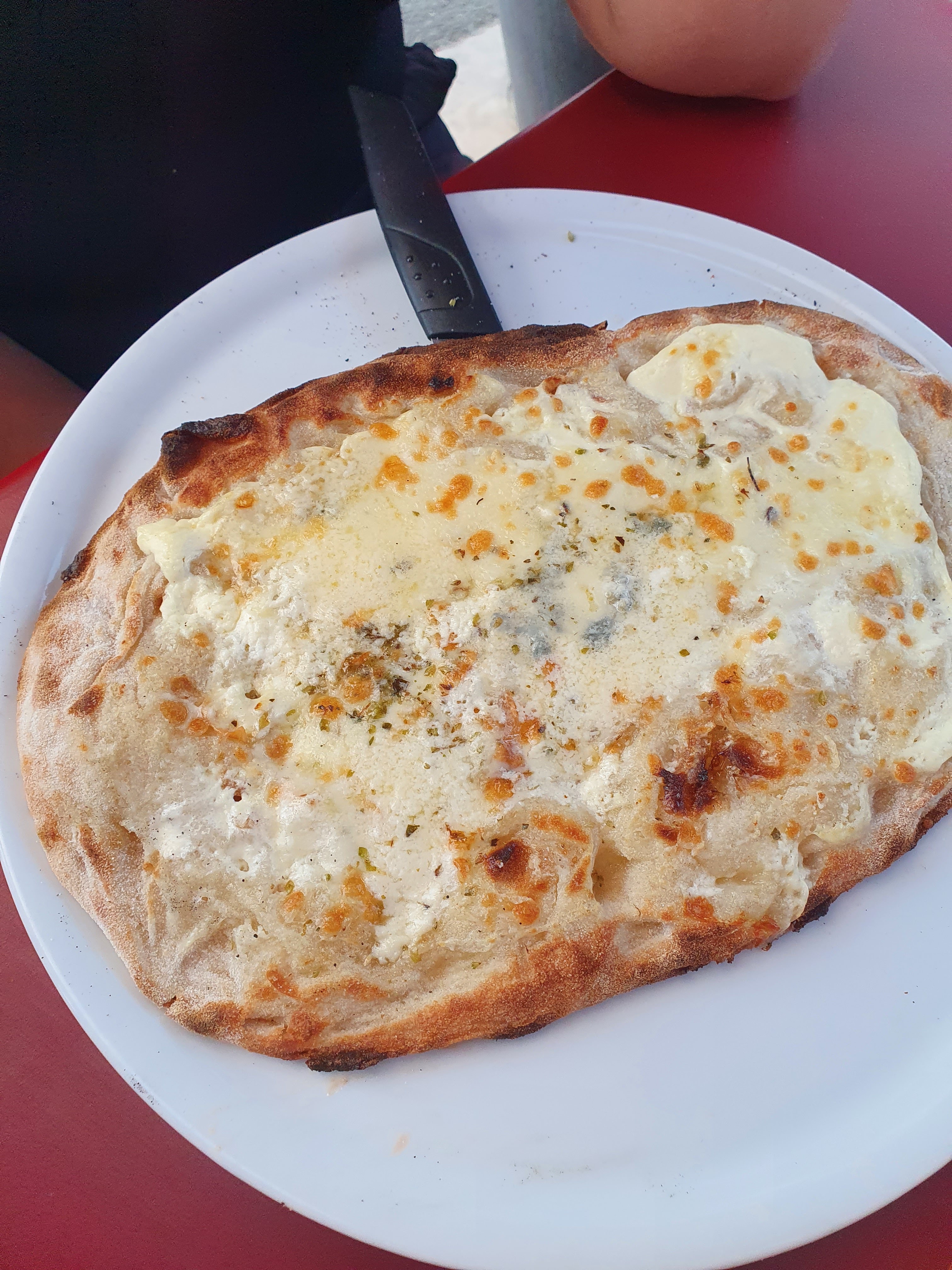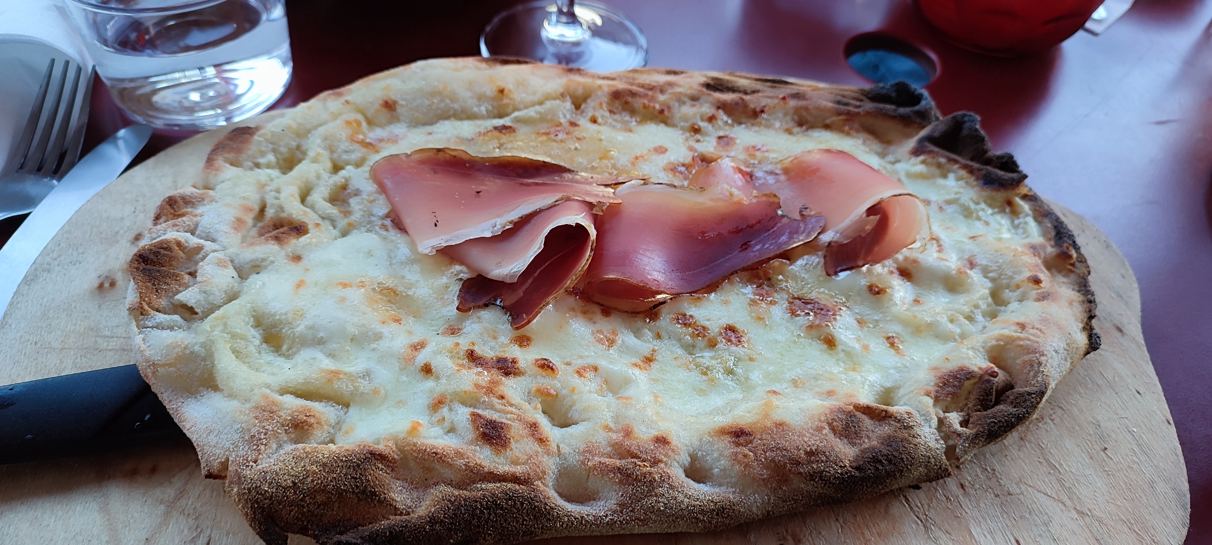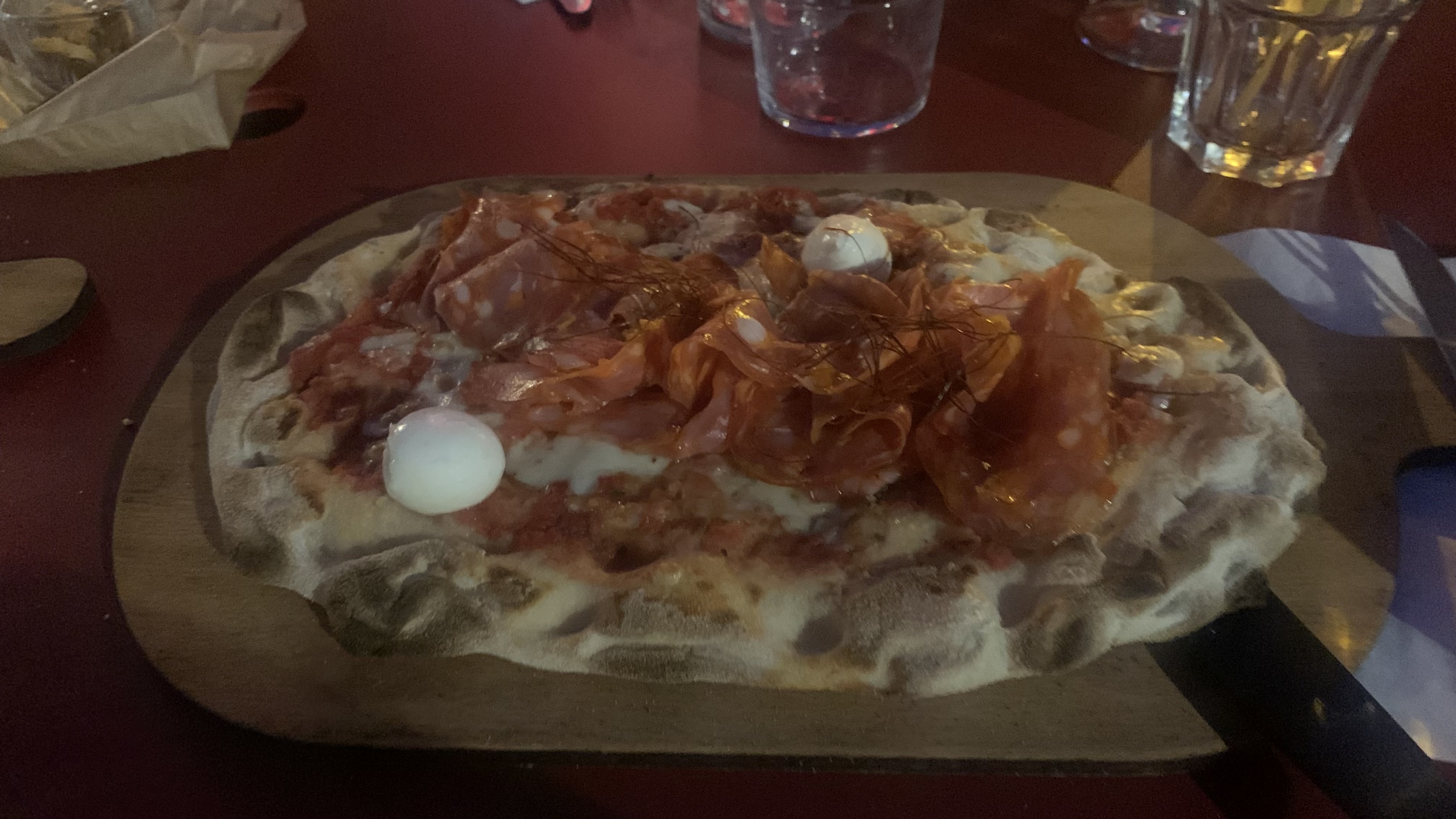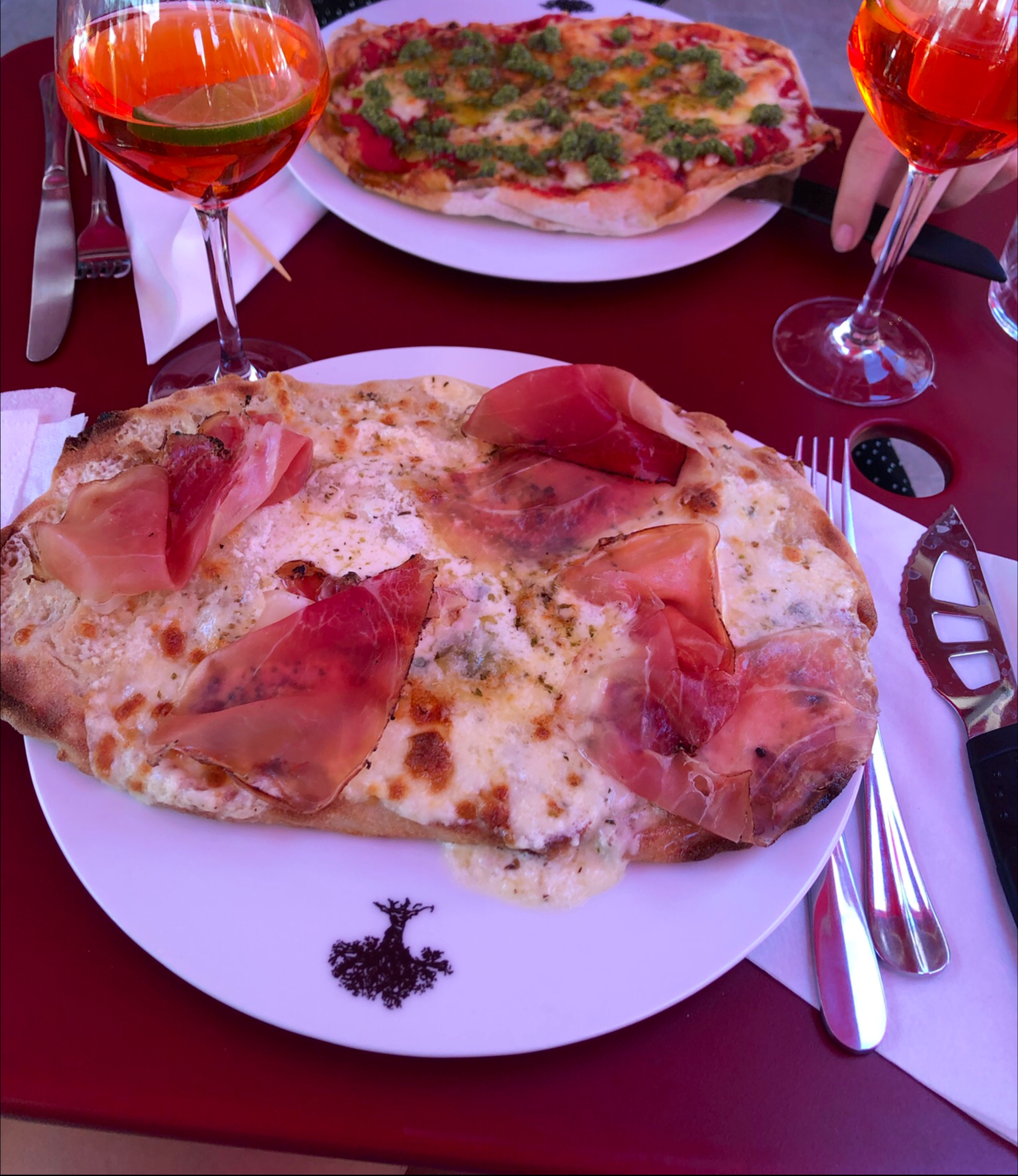Un très agréable moment passé en terrasse de ce restaurant, au calme. L'accueil a été chaleureux, je n'étais pas venue pour manger une pizza mais la serveuse, très aimable, m'a indiqué qu'ils ne faisaient pas de pizzas mais des pinsas. Convaincue par la pâte, avec des explications sur l'histoire de cette pâte, qui est en effet légère et digeste, un régal. Aucun regret! J'ai pu goûter aussi la parmigiana, très bonne également. L'apéro était accompagné d'olives et toasts, très appréciable. Sans oublier une belle carte de vins. J'y retournerai pour déguster autre chose!