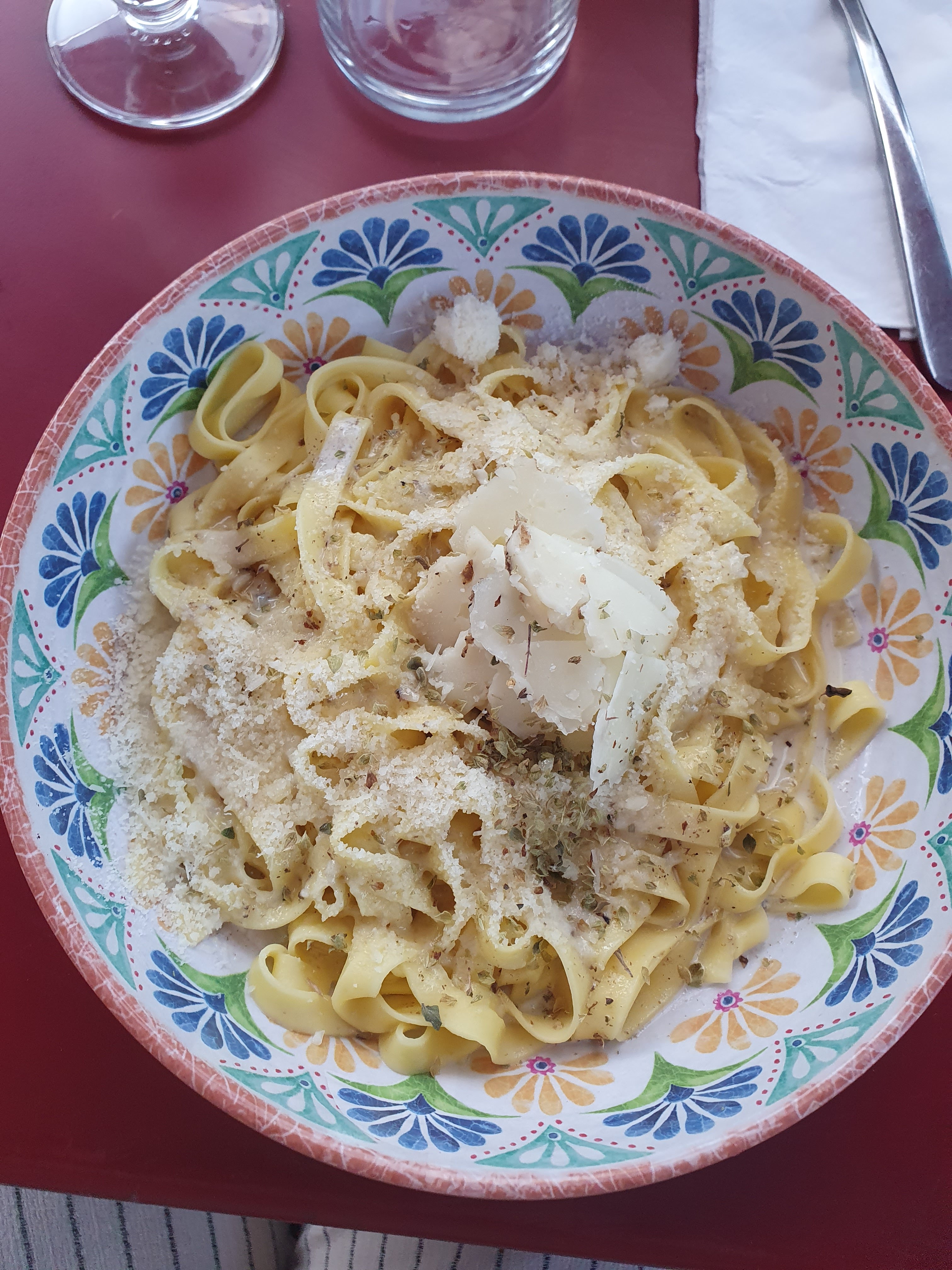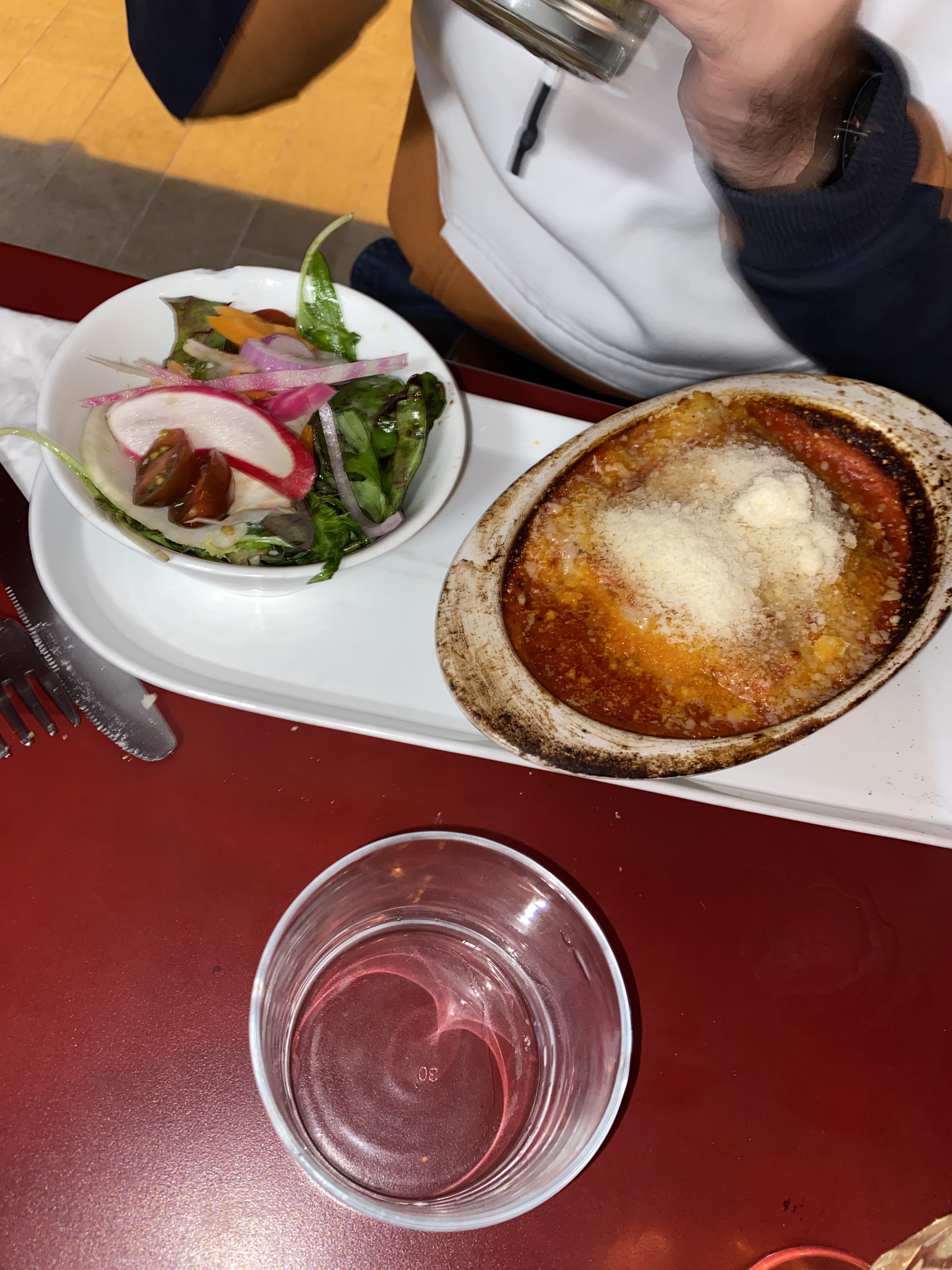 Relativement déçu.... je dis déçu car on m’avait recommandé le lieu.... bref les produits sont frais, les pâtes aussi mais.... pour ma part j’ai pris des pâtes Botarga mais quel déception se plat était sec et sans grande saveur et la portion était petite .... pour 21 euros le plat de pâtes on s’attend à une explosion de saveur, ma compagne a pris des aubergines à la parmesane qui était bonne. Le serveur était quelque peu distrait... certes il y avait bcp de monde. Le vin était correct.