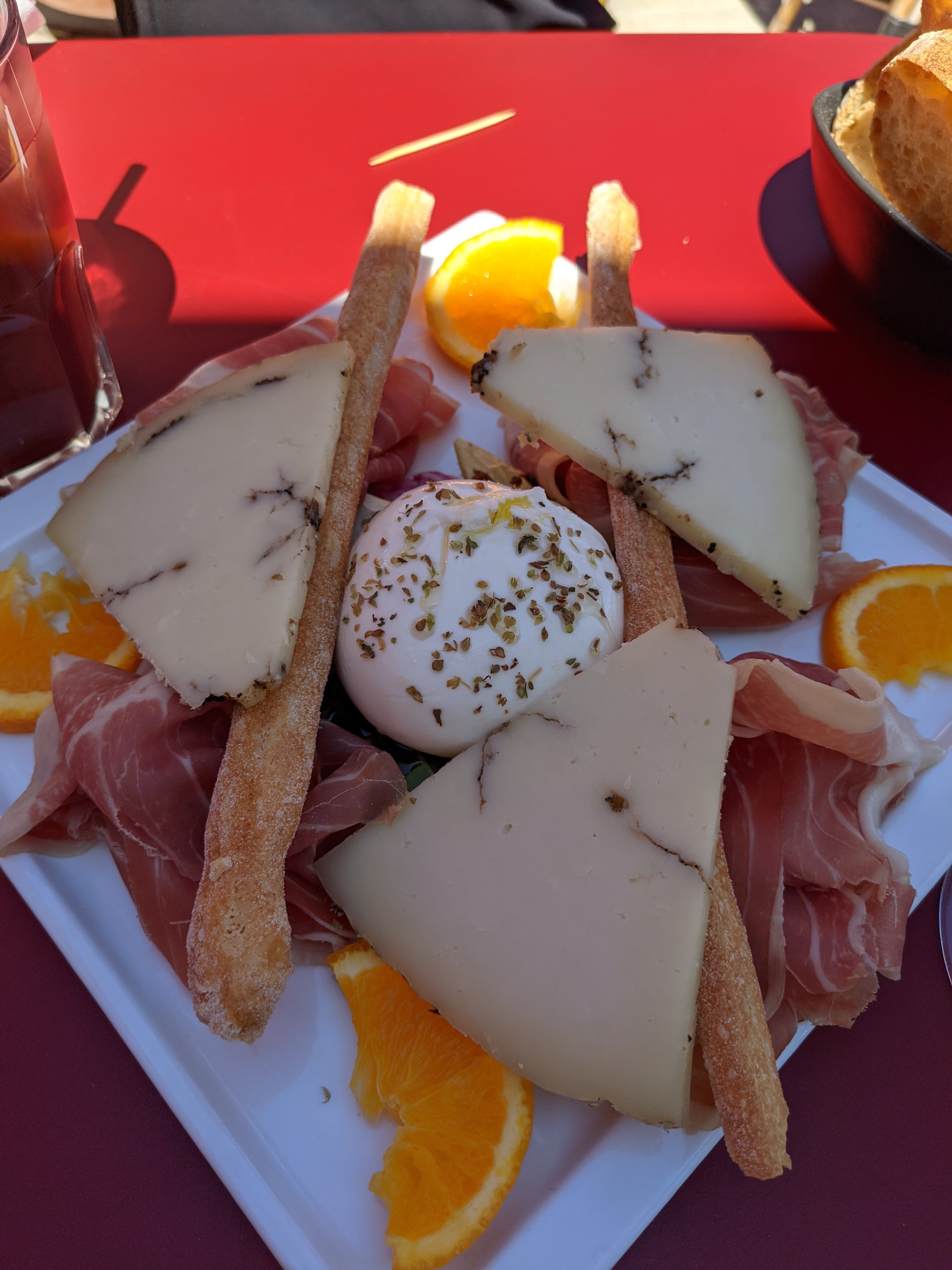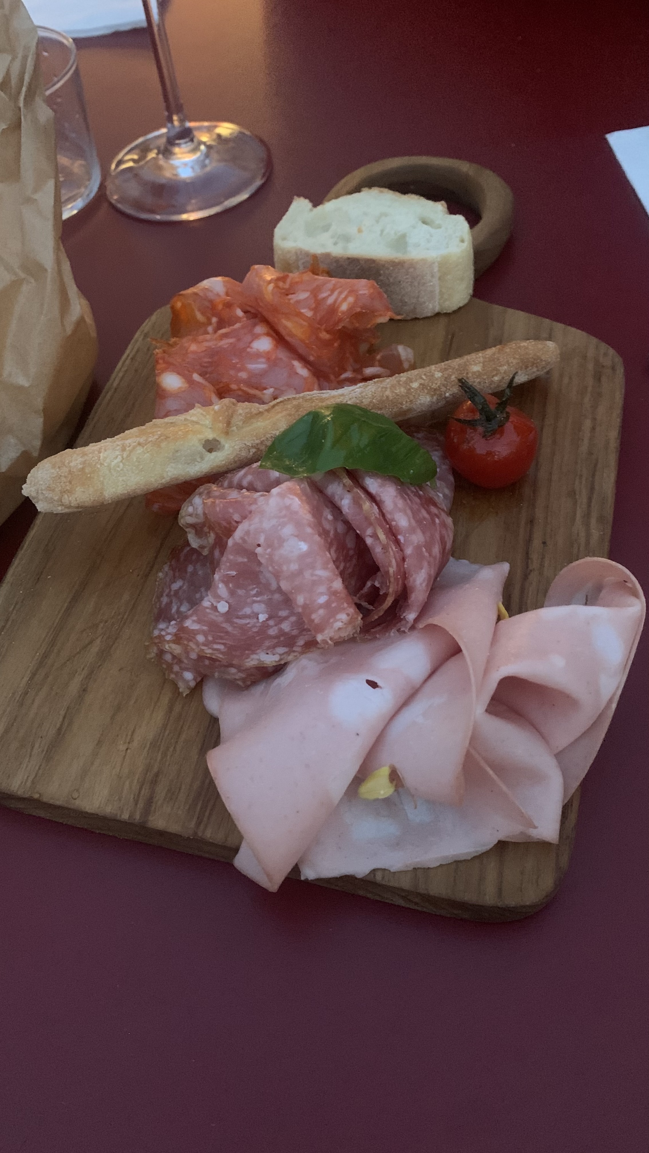 Un vrai régal ! Petite assiette de charcuterie partagée à deux en guise d'entrée. Un petit rosé très sympa et une facture pas trop salée