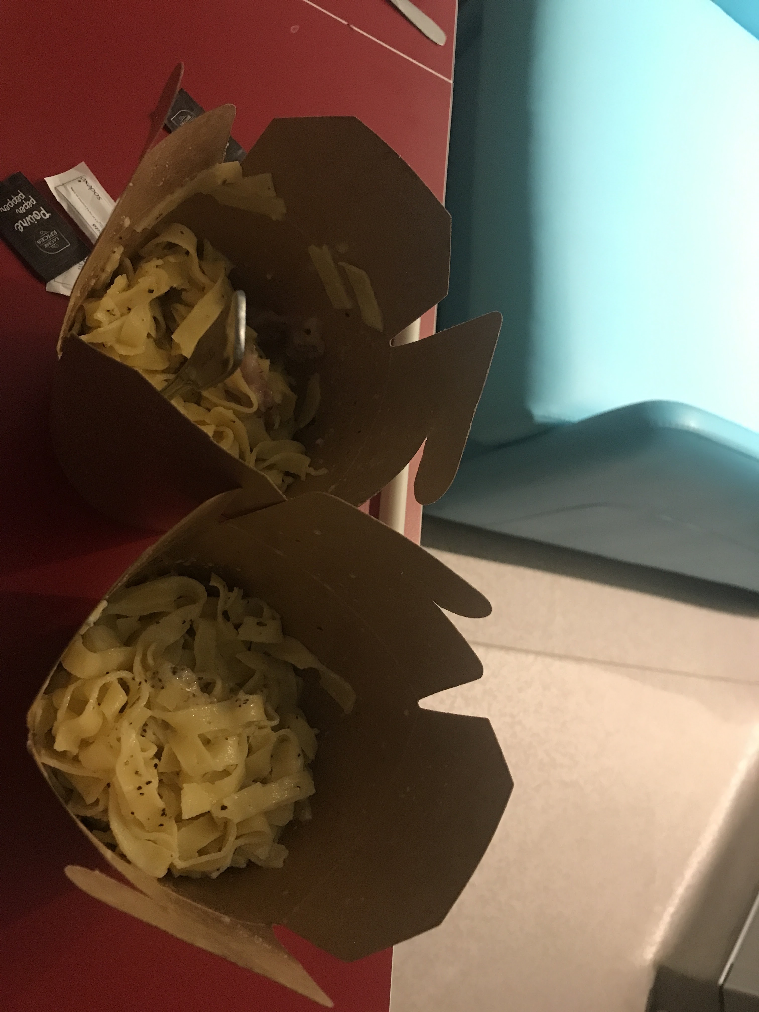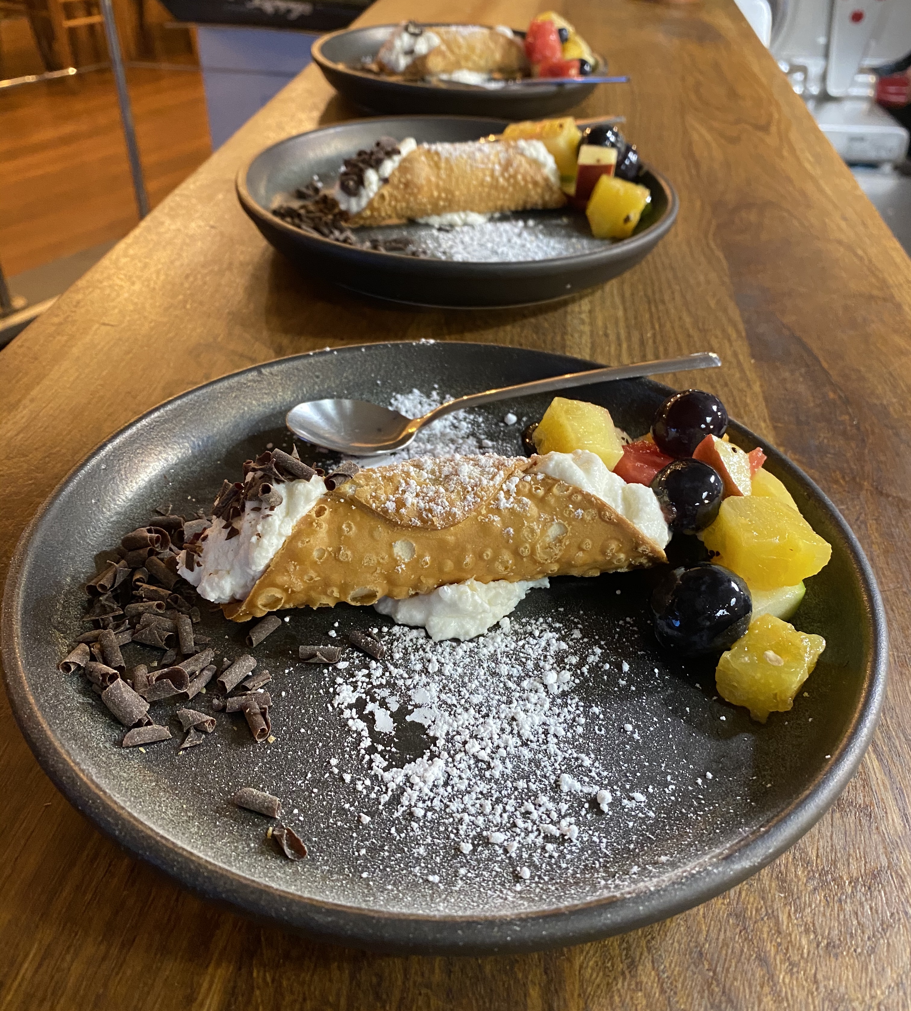 Les pasta box étaient décevantes, la quantité n'était pas suffisante pour nous. La pancetta en faible quantité et manquait de sauce. Je précise que je note un repas livré via Uber eats. Dommage les saveurs étaient présentes. J'ai commandé 4 canoli au chocolat et j'ai reçu une toute autre pâtisserie que nous 4 n'avons pas aimé.