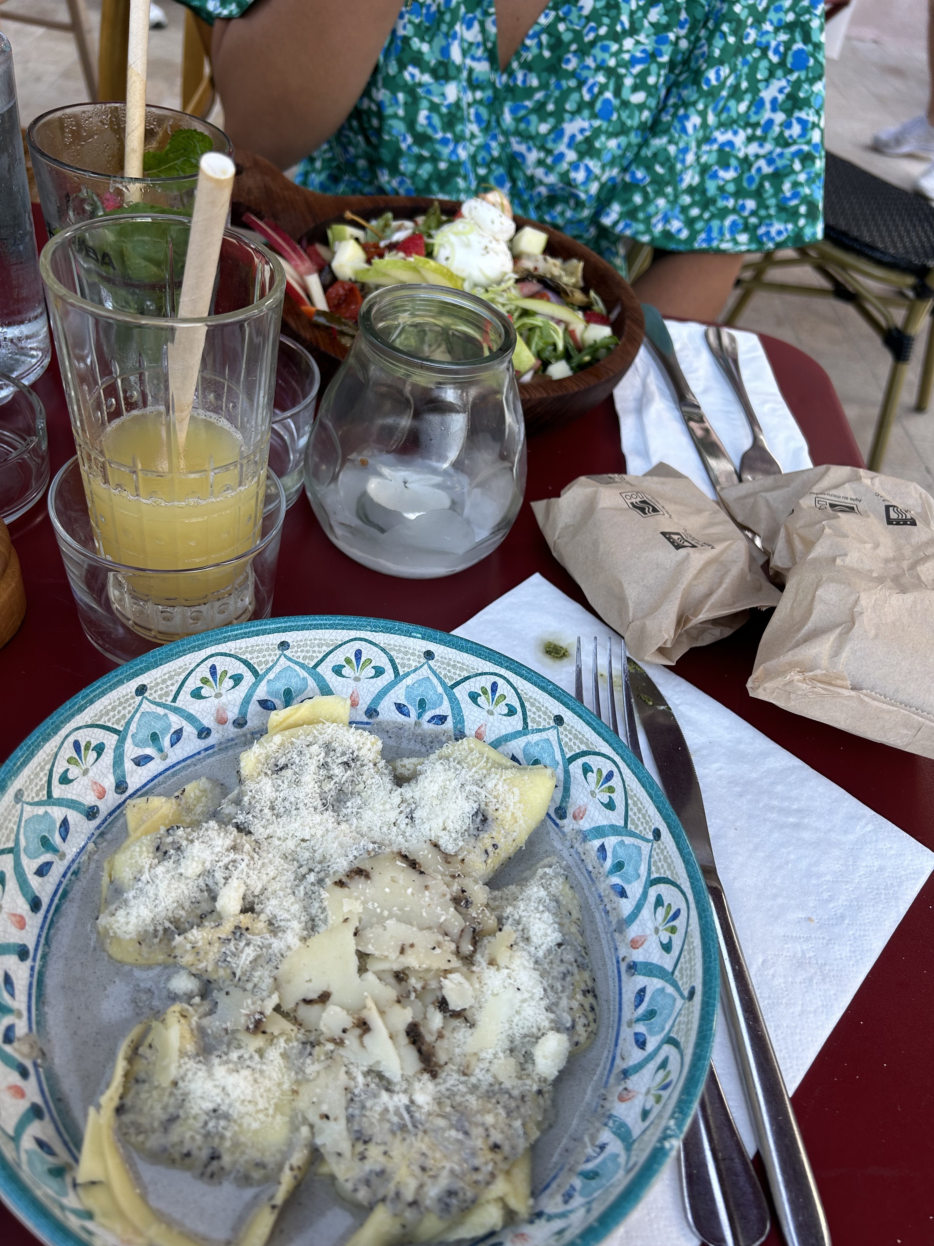Beau resto avec superbe terrasse mais plats de pâtes vraiment ordinaire. Lasagne sans aucune personnalité et de toute évidence préparée d’avance et réchauffée au micro-onde. Autres plats de pâtes pas plus interessants.