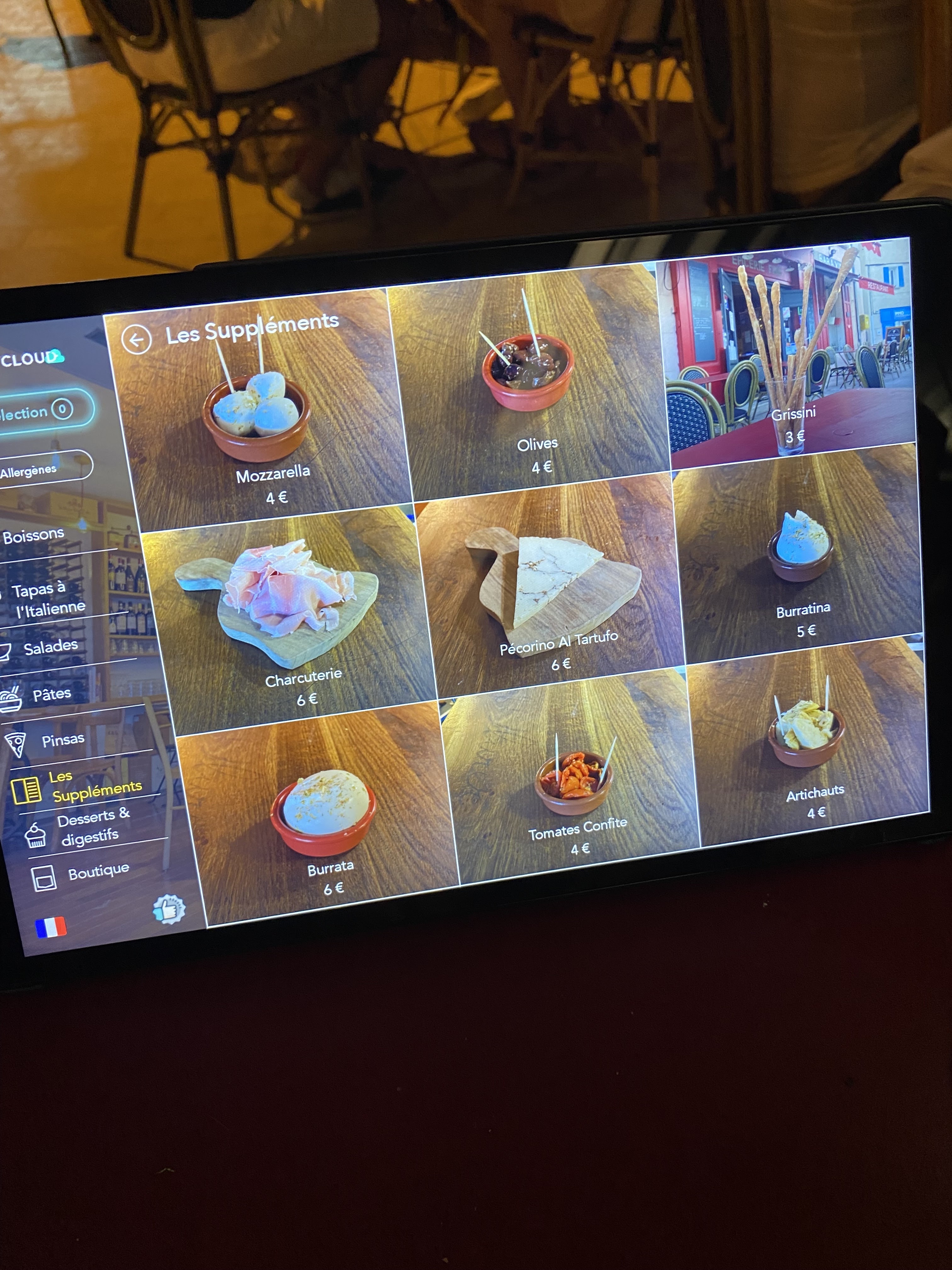 Cadre très sympathique. Ce restaurant est doté d'une terrasse entièrement couverte et permet de manger en extérieur sans avoir froid. De plus, des plaids sont à disposition si besoin, une très belle attention. Personnel très agréable, serviable et réactif. Les commandes sont passées en premier lieu sur une tablette en guise de carte. Large choix de plats et la qualité est au rendez-vous. Portions généreuses, permettant de déguster des plats typiquement italiens. Je recommande cet établissement!