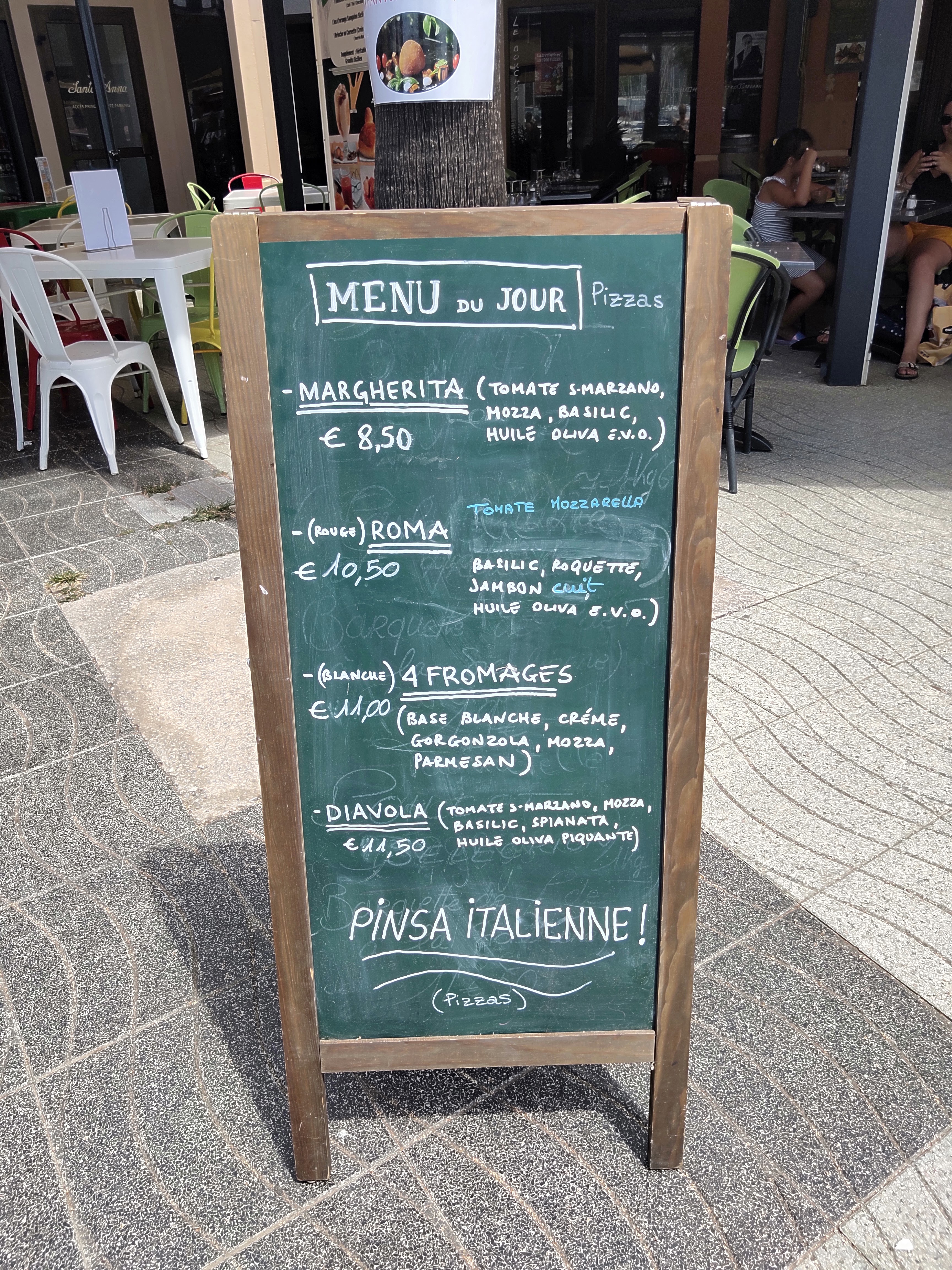 Les arancini sont bons mais alors les pizza c’est pas la joie… Je suis heureux de ne pas avoir payé trop cher. On est loin des pizza d’Italie ou plus précisément de Sicile.