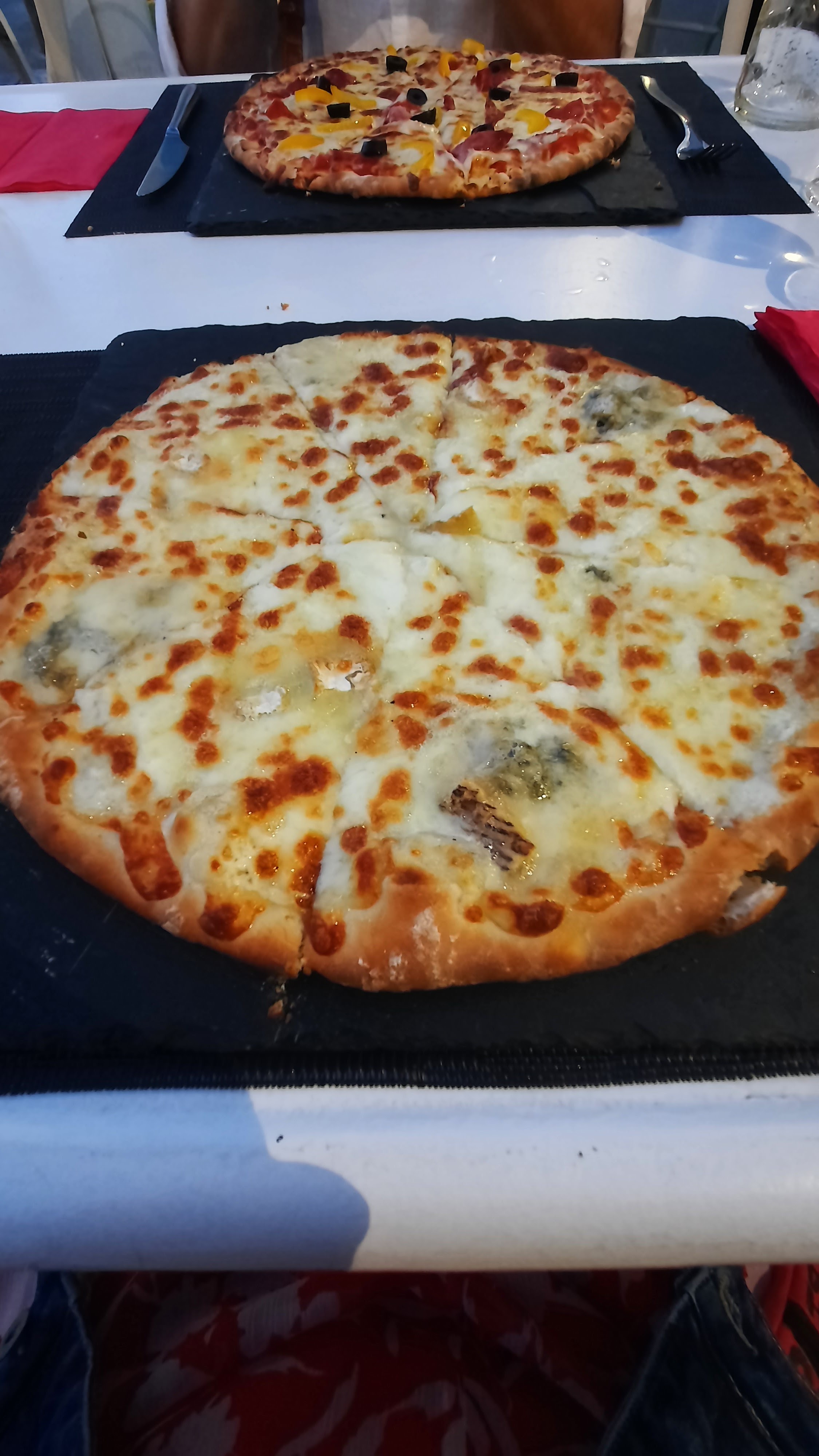 Pizza Roma et pizza aux fromages excellentes, bière blanche, granit citron trop bon. Prix pour une personne 16 euros 75 cm. Pour deux 33 euros 50 cm. Très convivial, Patron et cuisto fort sympathique. Très propre . Nous allons y revenir 😜 A découvrir.