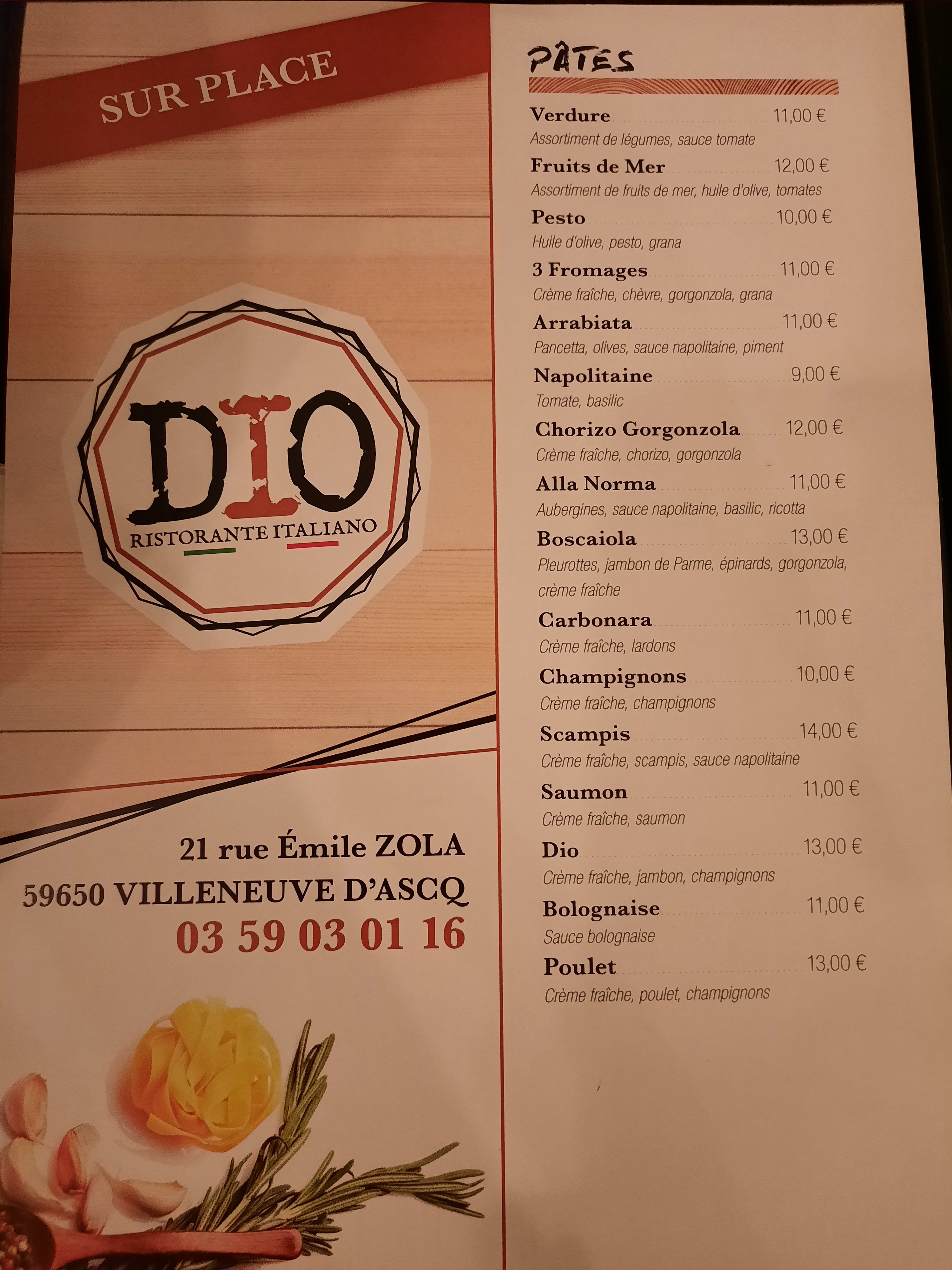 Nouvelle Pizzeria Dio qui vient d’ouvrir sur Villeneuve D’Ascq! Excellent restaurant, chaleureux, convivial etc… on y mange extrêmement bien! Rapport qualité prix au Top! Je vous recommande ce restaurant les yeux fermés aussi bien pour ses pizzas que ses pâtes ou son risotto 😋😋😋 Pour tout événement n’hésitez pas à les contacter ils sont parfaits pour Tout!!! pizzas feu de bois 😋😋😋
