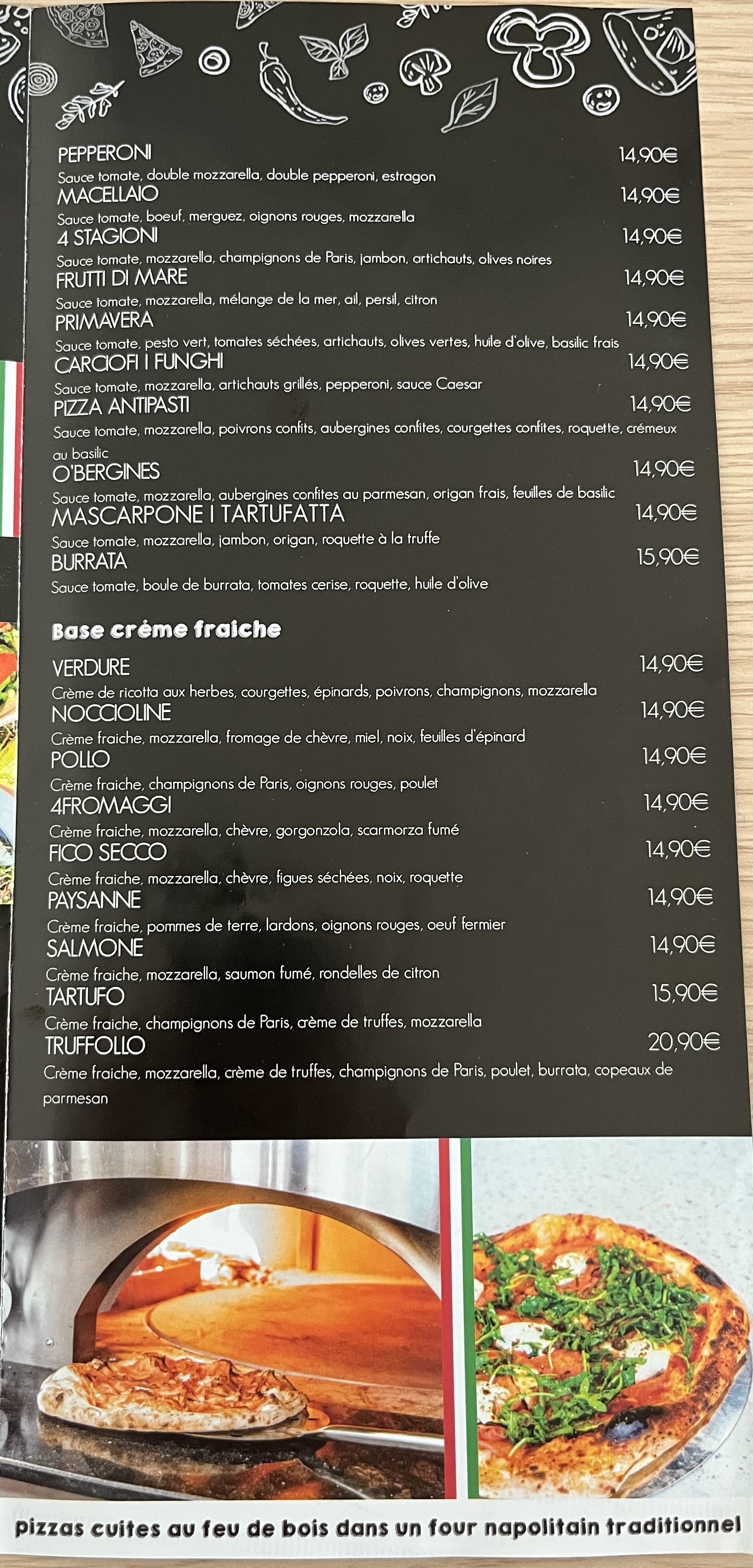 Bonsoir je suis passé prendre à emporter et je peux vous dire que la pizza Mascarpone y tartufata m’a réconcilié avec la pizza… quel grâce…..hâte de découvrir les autres chefs d’œuvre… dommage qu il n y ai pas de sur place :(