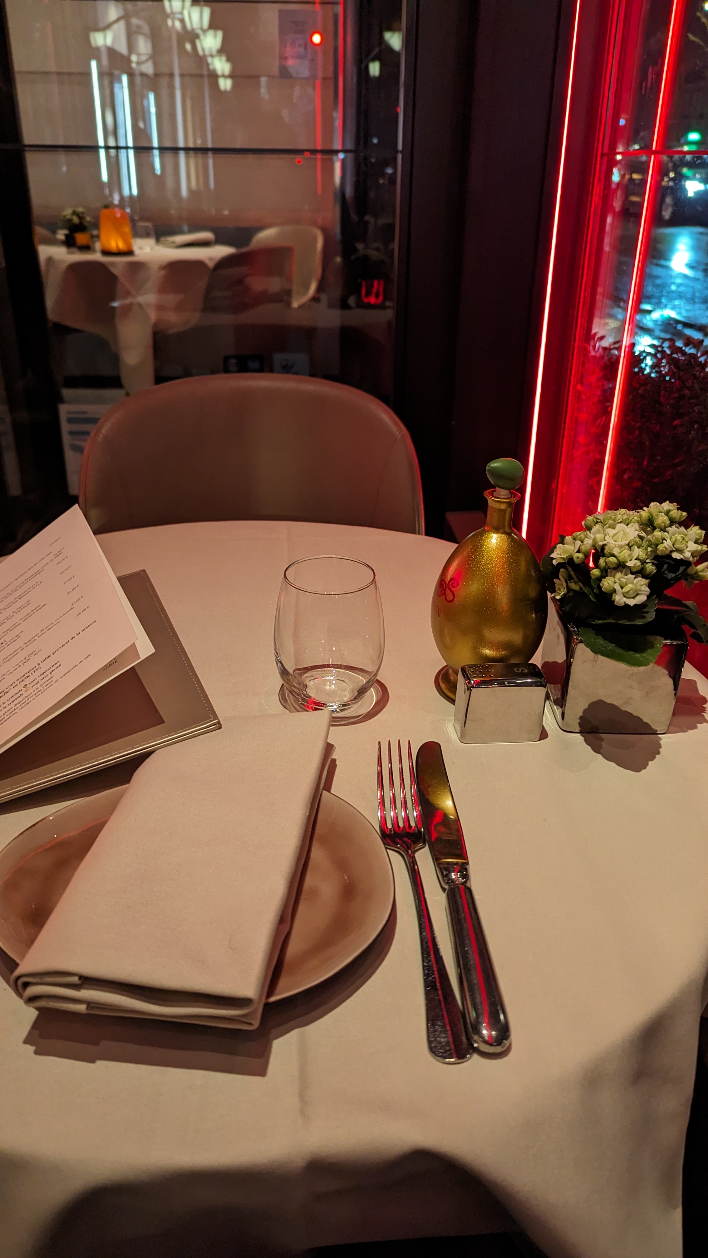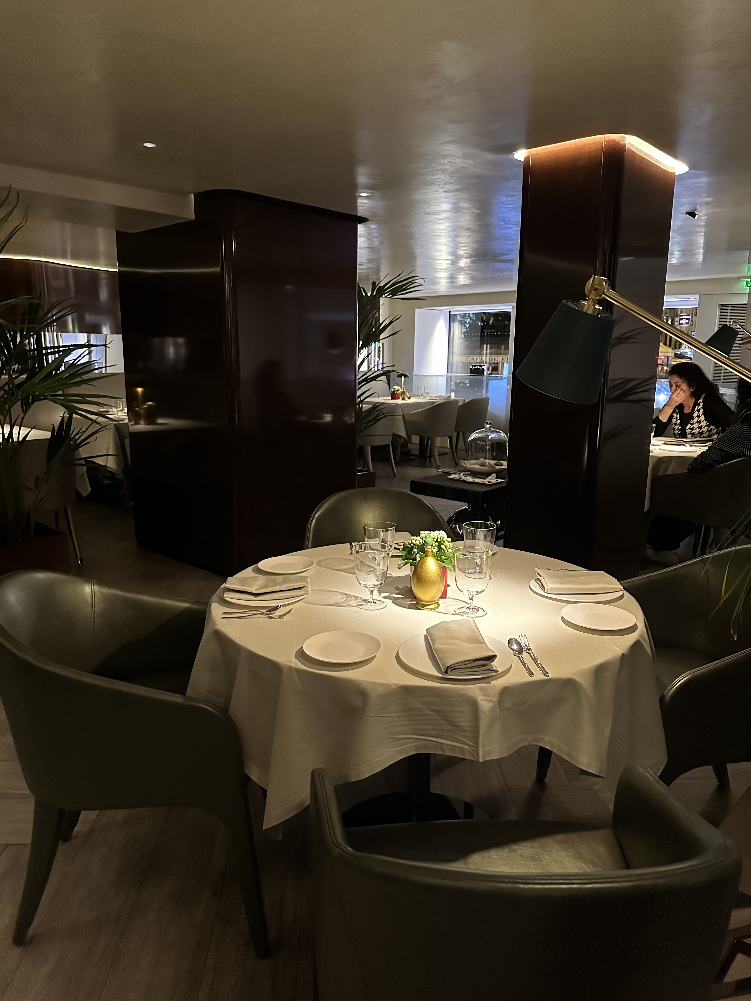 Ce restaurant a été choisi par ma collègue. Cadre très moderne, très chic. Décors épuré et restaurant très calme. Très agréable vue sur le boulevard saint germain. Personnel courtois. Elle a été super contente et y retournera car cela correspond tout à fait à son style. Pour ma part, je suis plus réservée par rapport aux prix.
