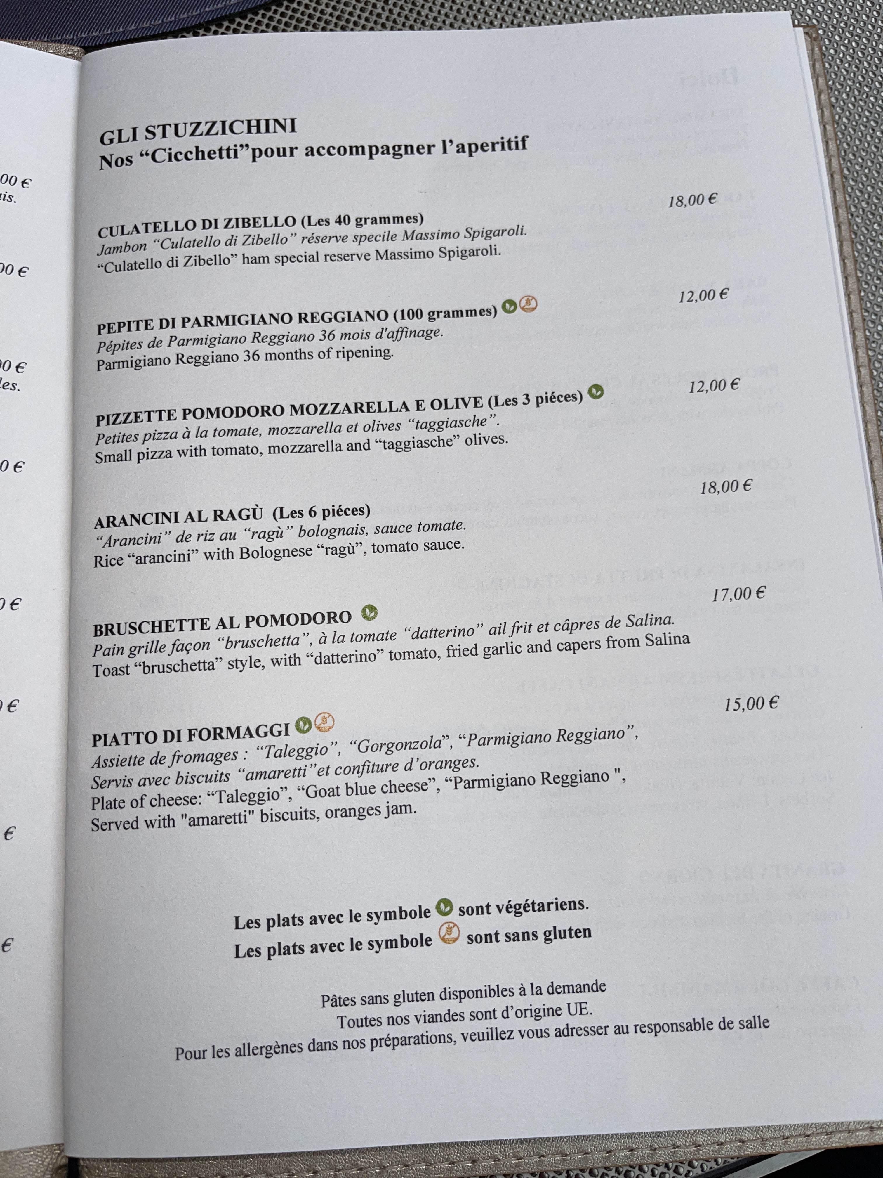 Personnel discret et efficace. Côté cuisine, rien d’exceptionnelle. Les pâtes trop al dente, sans saveur. Des escalopes trop sèches et aussi peu goûteuses. Il n'y a qu'avec leur jambon et leur panna cotta, que je me suis régalée. Facture injustifiée (404 euros). Petit budget passer votre chemin.