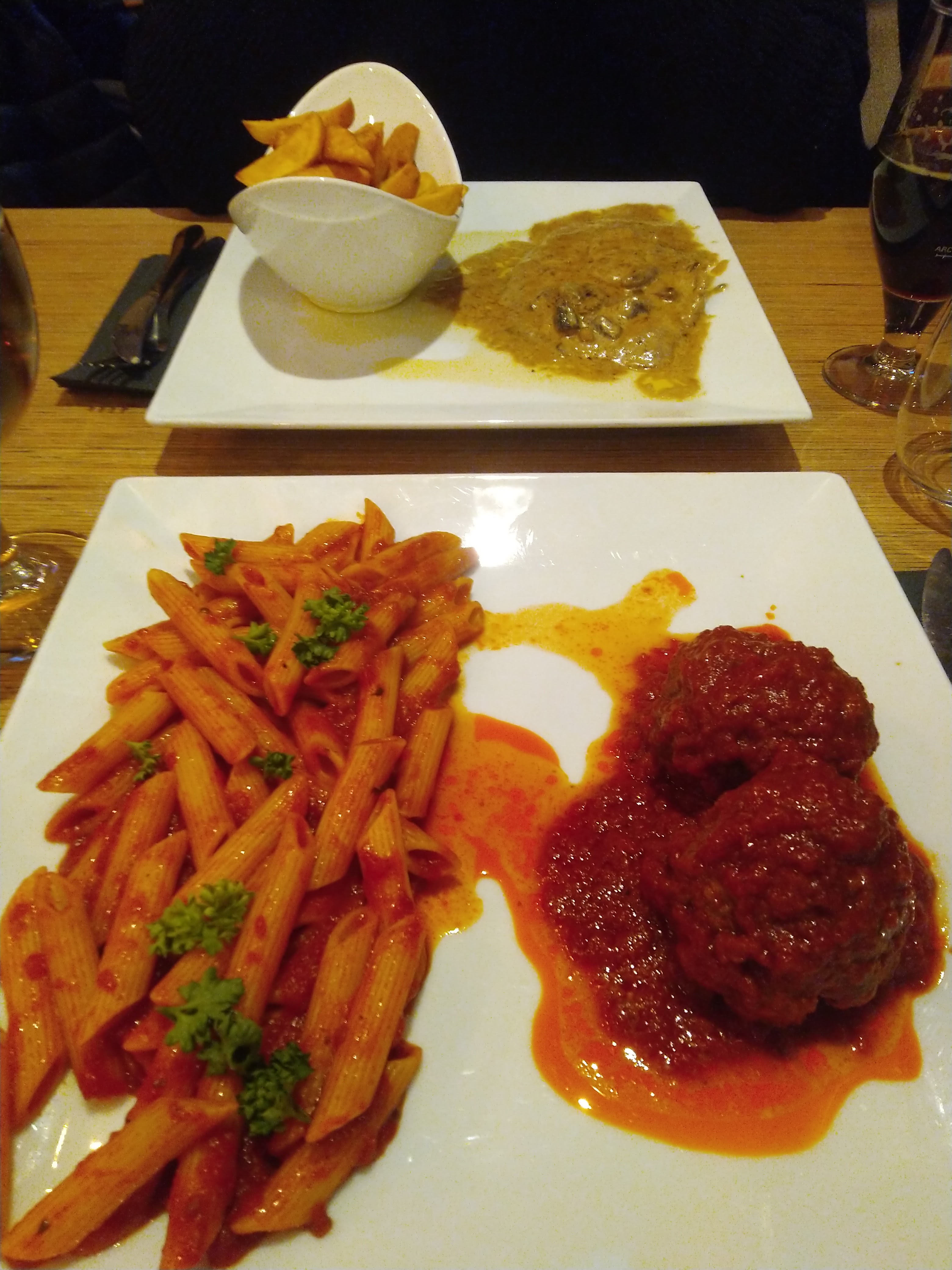 Moment sympathique, les pâtes auraient été un poil plus chaude, cela aurait été parfais. Le vin au verre était bon aussi, avec un bon dessert fait maison