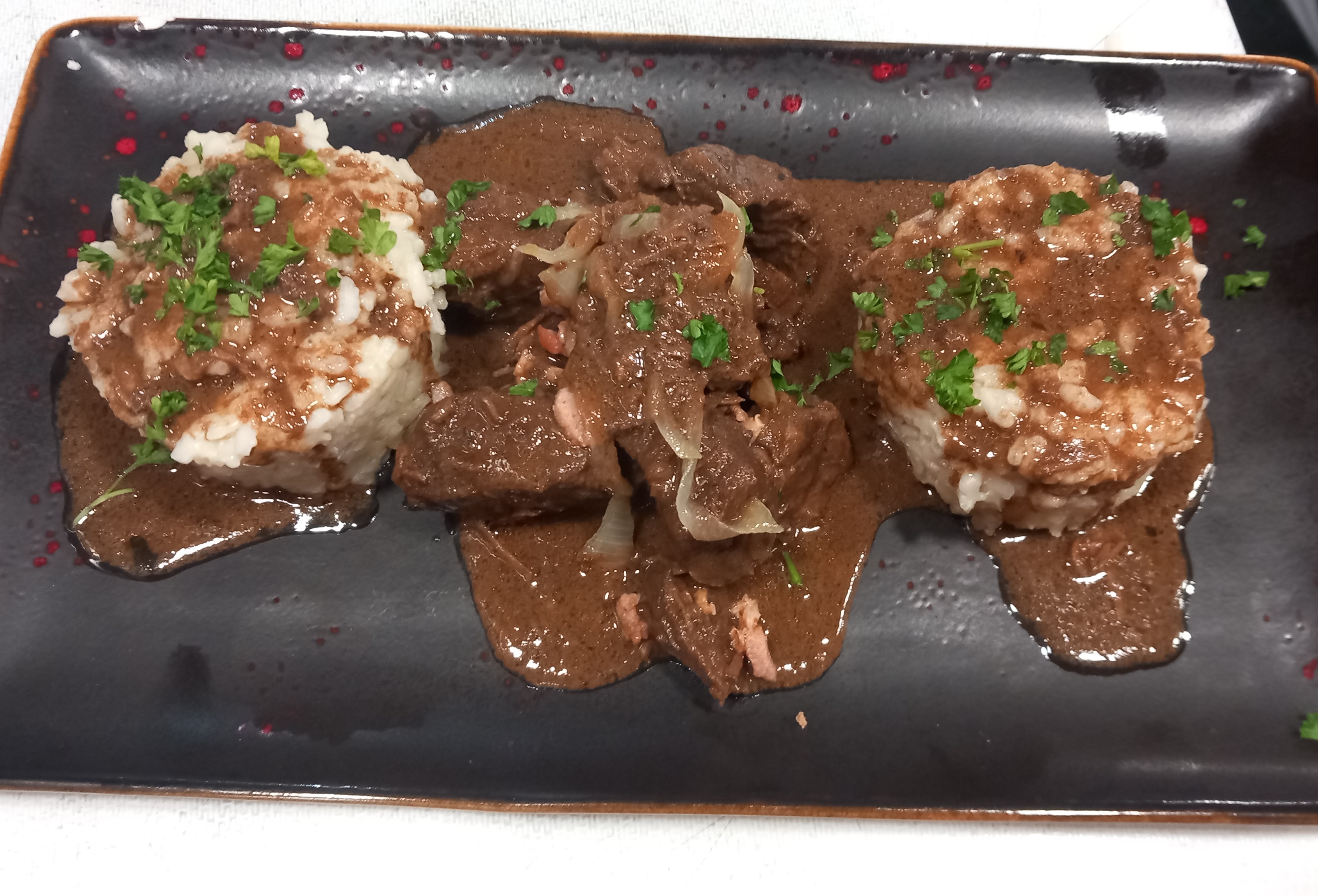 Plat à emporter de braccioles correct mais alors le prix pour 3 personne 57E un peu élevé pour un plat à emporter