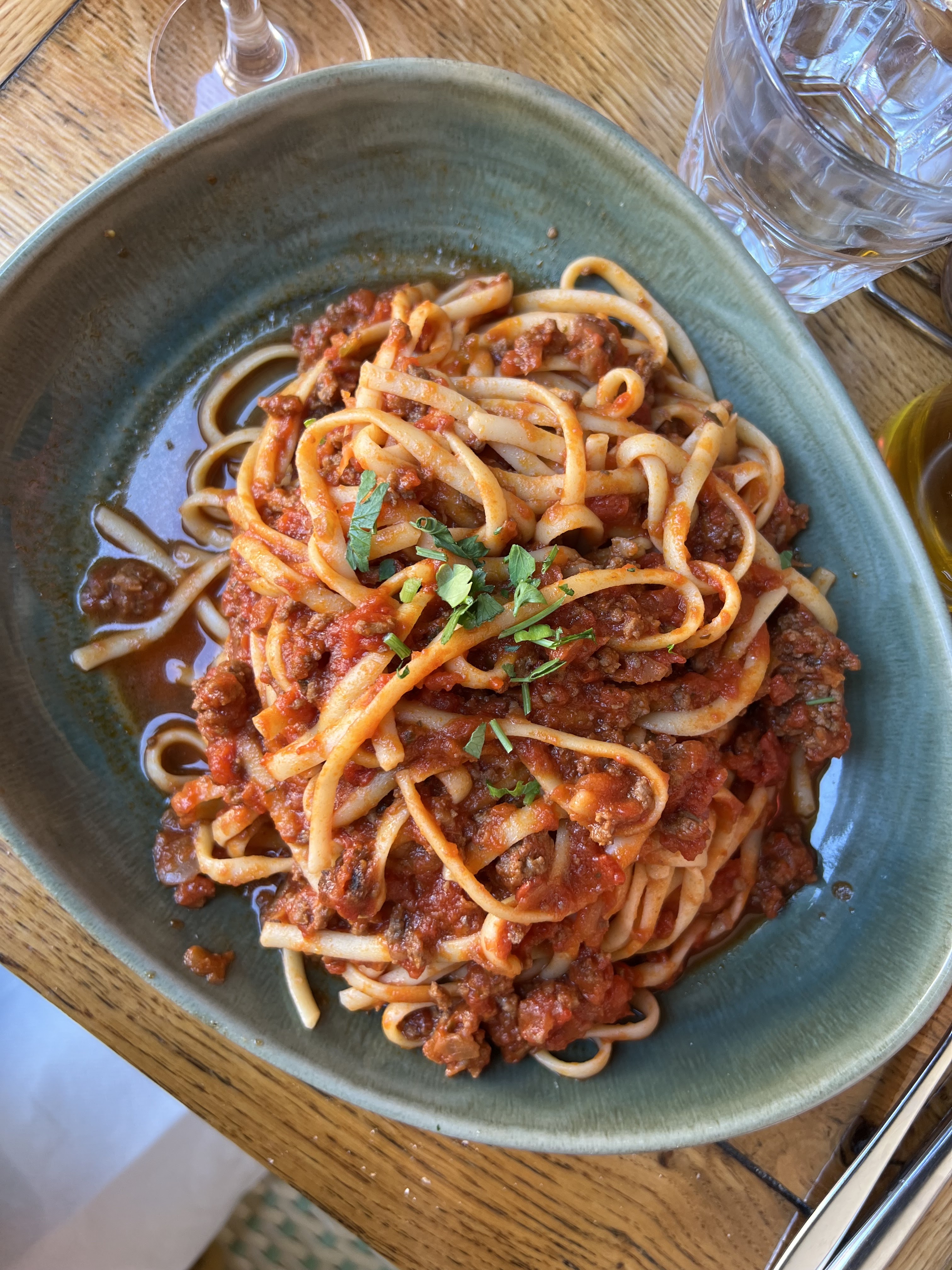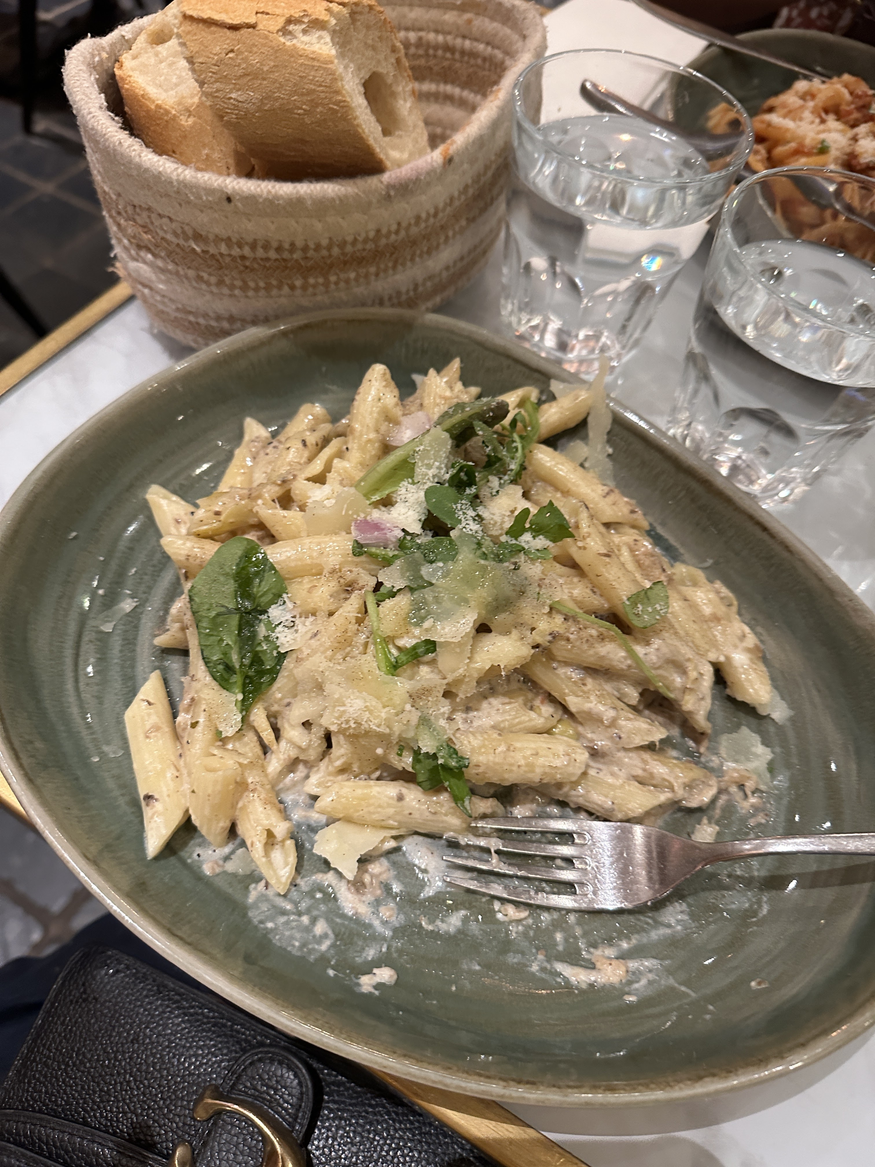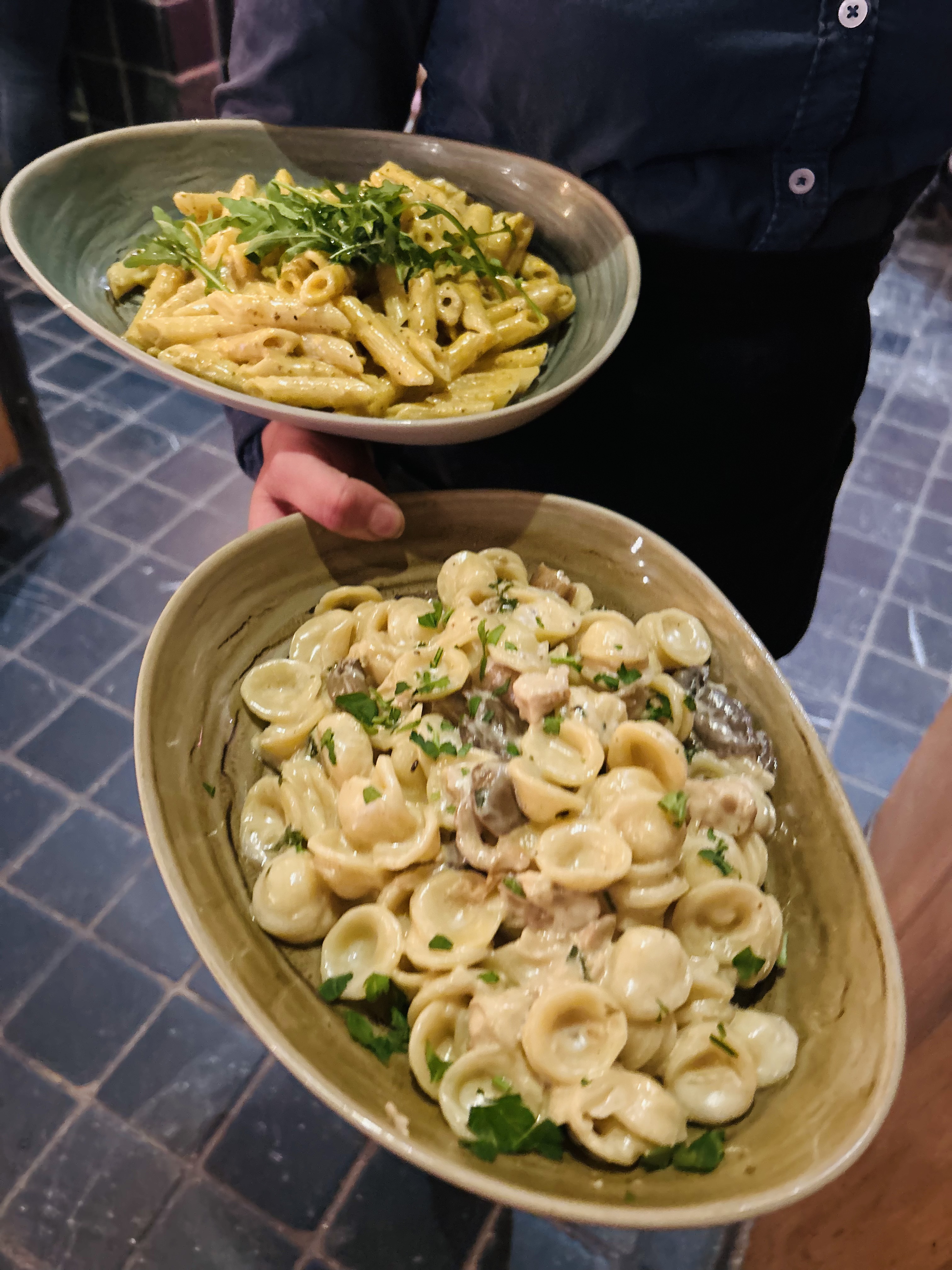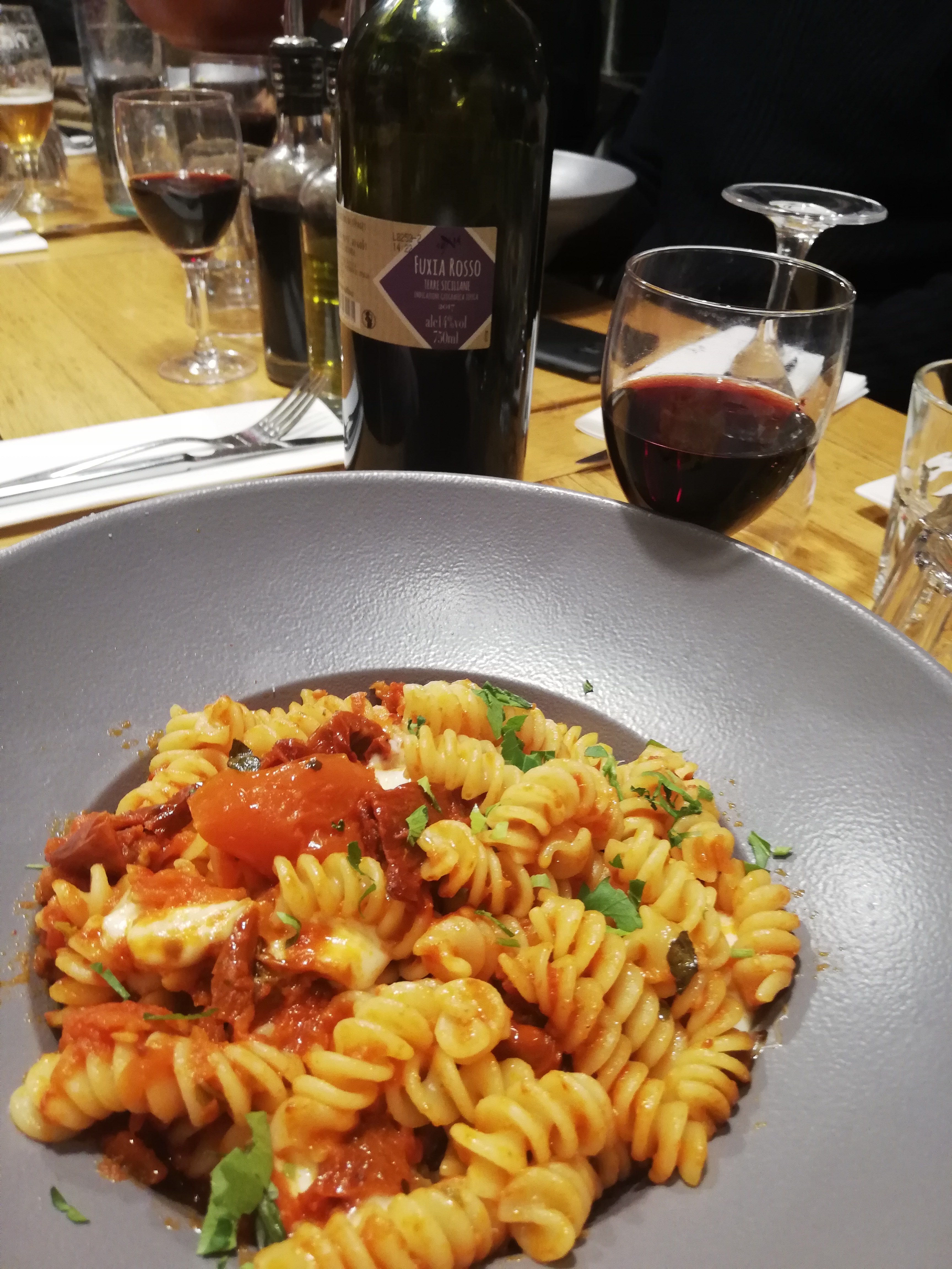 Nous avons pris en entrée une stracciatella qui était très bonne même si elle manquait légèrement de sel. Ensuite, nous avons goûté les fusilli au chèvre miel et les rigatonni à la sauce tomate et aux aubergines. Nous nous sommes régalées. Les assiettes sont copieuses et la cuisine est très bonne pour le prix. De plus, le service etait top avec des serveurs tres souriants et agrebales. Nous sommes venues un samedi soir et avons attendu 30min donc pensez à réserver.