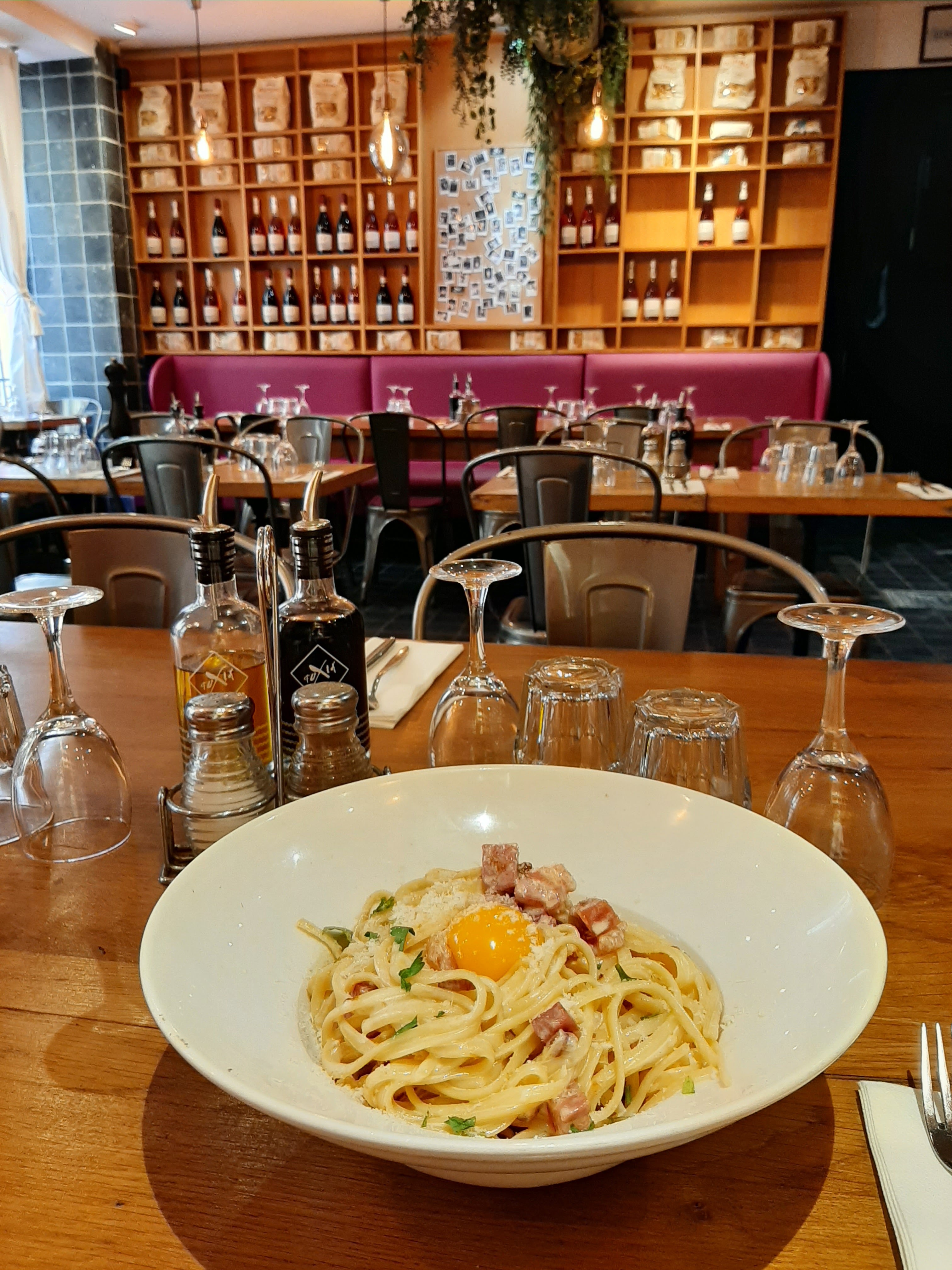Endroit très sympa et propre, service moyen, mais surtout les pâtes qui manquent de sel et trop cuites, dommage car la présentation était pas mal !