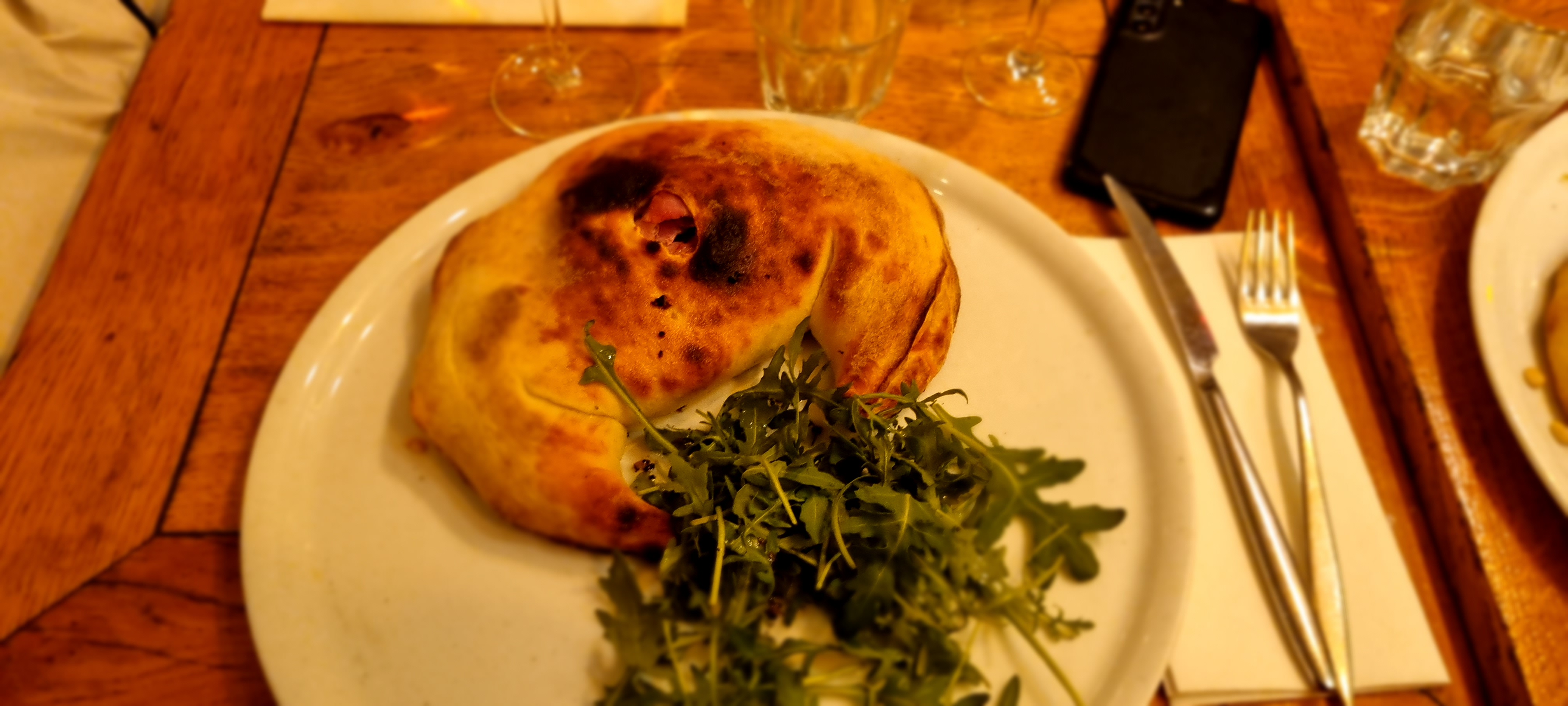 Dommage, je n'ai pas pris en photo ma pizza. Un sauce tomate sortie tout droit de la boite. Pizza quelconque pâte industrielle. En dessert le chausson au nutella est à fuir, très, trop copieux. Rien n'est savoureux. Le service est pour le moins négligé. Ah par contre tout est dans le marketing, le cadre... Et finalement un très mauvais rapport qualité/prix. C'est un ami qui nous a emmené dans ce pseudo restaurant italien, nous n'y reviendront plus. Il y a de très bonnes pizzerias familiales près de là où l'on se régale, j'en ai fait une critique il y a pas longtemps.