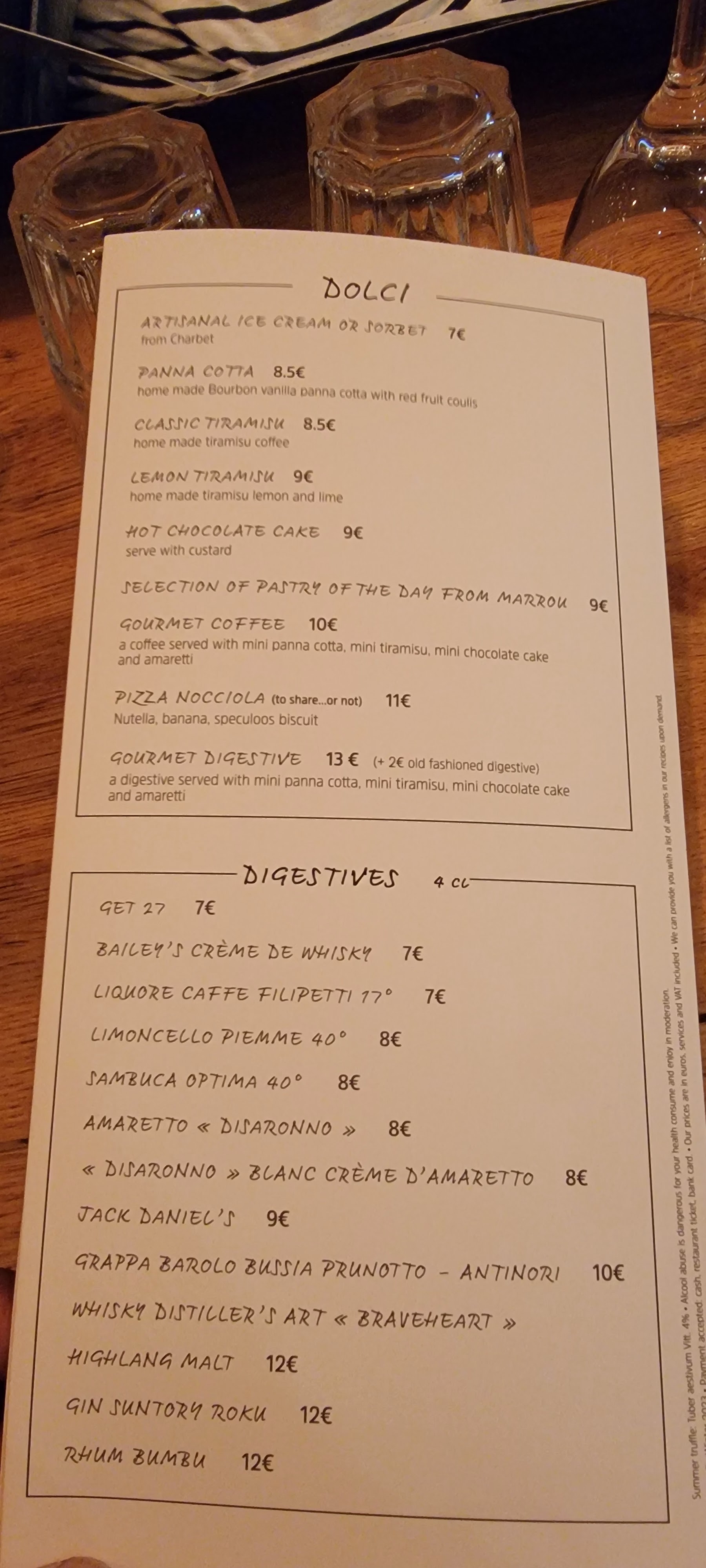 Restaurant vraiment sympas! Vous mangez directement dans une petite épicerie italienne! Le décor est juste super, l’ambiance tamisé/ intime très agréable! La terrasse en pleine saison d’été est juste incroyable! En plein sur la place thiars, baignée de soleil, mais en même temps à l’ombre d’un arbre immense c’est juste parfait! Les serveurs très agréables, toujours là pour vous remplacer votre carafe d’eau, le service plutôt rapide, j’ai mangée des ravioli à la truffe que j’ai trouvée vraiment très bon! Et un tarif plus qu’abordable! Les petits déjeuners sont super aussi! Il y en a pour tout les goûts! Œufs brouillés, sandwich, viennoiseries ect! Ci contre la carte. Je recommande!