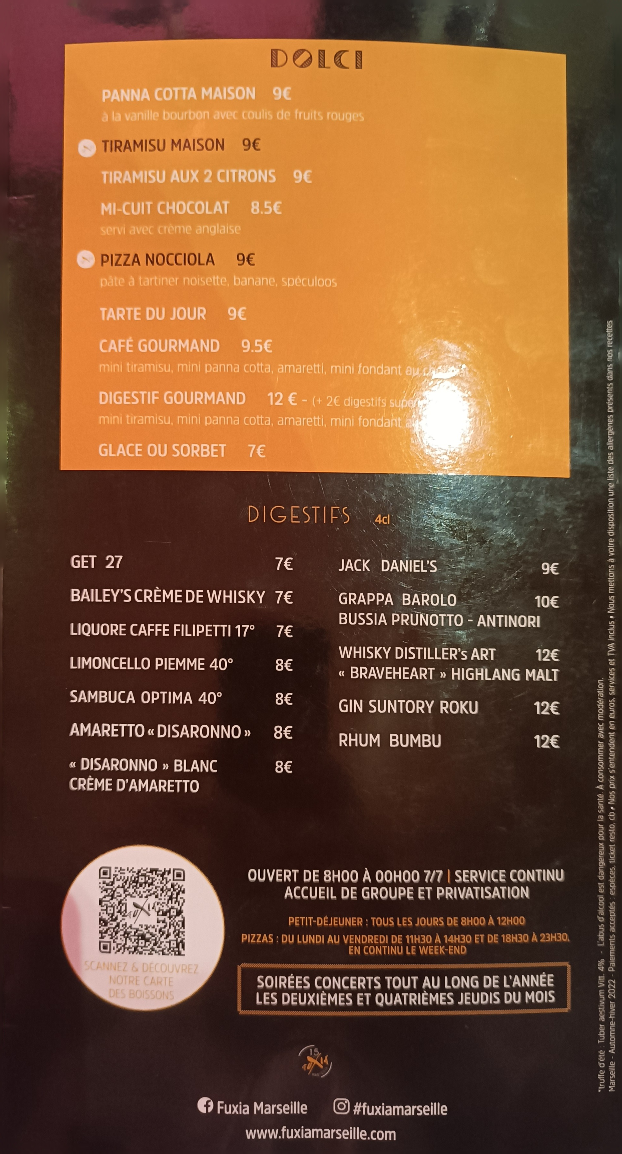 Bonjour, Nous sommes ravis que votre expérience dans notre restaurant familial du vieux-port de Marseille, en tant que fan de fromage et de truffe, ait été à la hauteur de vos attentes ! Il est formidable que vous ayez trouvé votre compte et apprécié nos cocktails. Nous transmettons vos encouragements à nos bartenders et sommes impatients de vous accueillir à nouveau au Fuxia Marseille pour une autre expérience culinaire mémorable. Sachez que nous sommes ouverts même le dimanche. Merci pour votre avis positif et bienvenue à nouveau !