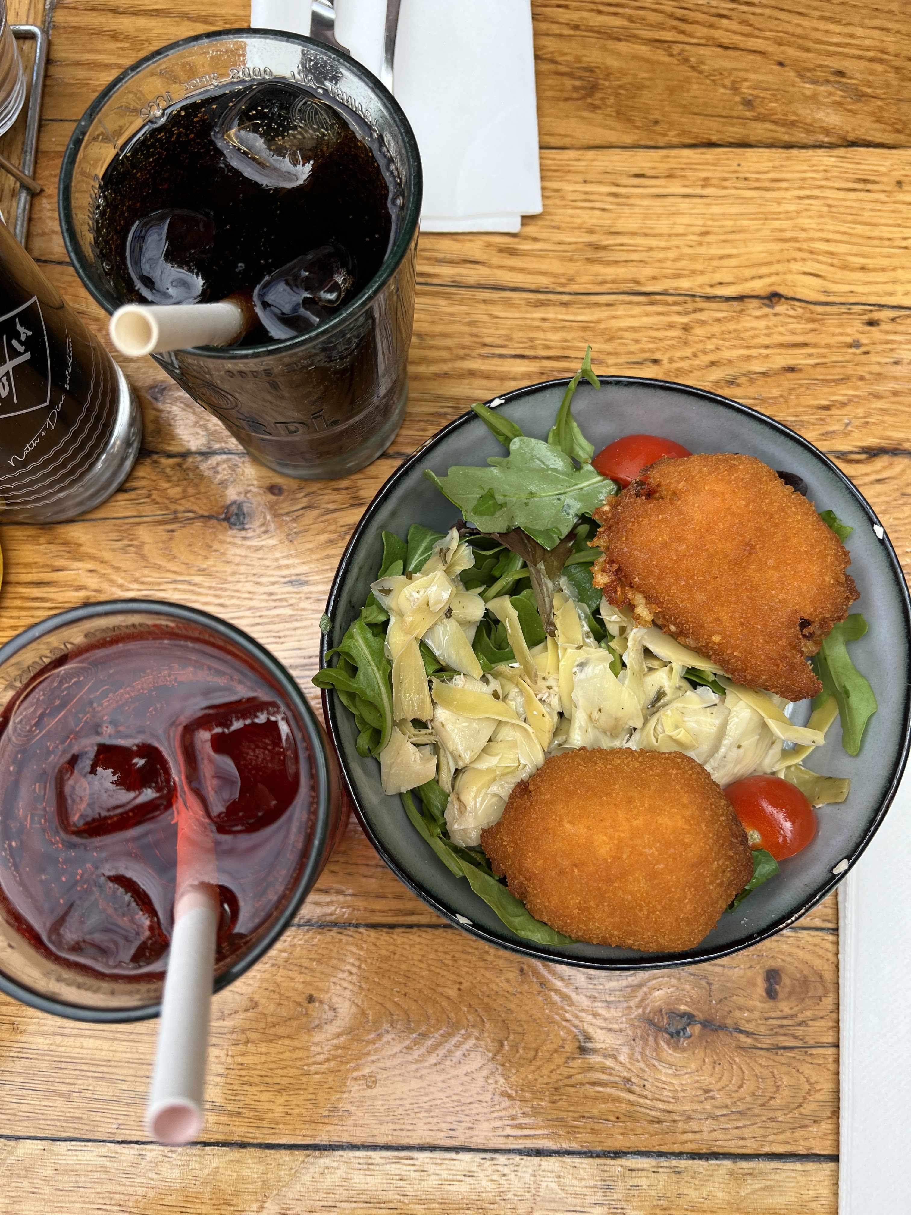 Fuyez tant qu'il est encore temps ... Commençons par la nourriture : tout simplement mauvaise. Les plats arrivent froids, tièdes au mieux, la qualité n'est pas au rendez-vous malgré une carte aguicheuse. J'ai mangé des lasagnes, je vous déconseille de faire la même erreur. Leur passage au micro-onde a eu raison de leur consistance, elles baignaient dans une sauce tomate acide, qui avait complètement crépi l'assiette (intérieur comme extérieur). Je ne vous conseille pas non plus les salades orecchiette césar, dans lesquelles trois malheureuses pâtes et deux bout de poulet se couraient après. Il n'y avait pas assez de sauce césar pour la montagne de roquette qui remplissait l'assiette. Un sachet de roquette à 17€ c'est un rapport qualité-prix assez faible ! Le pain rassis, comme le confirment de nombreux autres avis. Je suis assez étonnée de voir les autres photos des salades qui ont l'ai appétissantes quand je sais ce qu'on a osé nous servir. Service continu ne veut pas dire après 14h tout est mauvais, ou alors on se fiche de nous (ce qui semble être le cas). Niveau service c'est mitigé : quand on s'est plaint la première fois une serveuse s'est montrée sur la défensive, presque aggressive. Quand elle est revenue nous débarrasser elle avait changé de ton et nous a même proposé de nous offri les café. Quelle ne fut pas ma surprise en allant régler de surprendre des plats retournant en cuisine accompagné du manager disant on n'a qu'à leur offrir les café. Il semblerait donc que notre expérience ait été partagée par nombre d'autres client ce jour-là. Je ne recommande absolument pas. Le cadre est, certe, mignon mais c'est l'unique qualité de ce restaurant attrape-touristes. Je vous invite à consulter les photos de nos plats pour une bonne tranche de rigolade. Bon appétit.