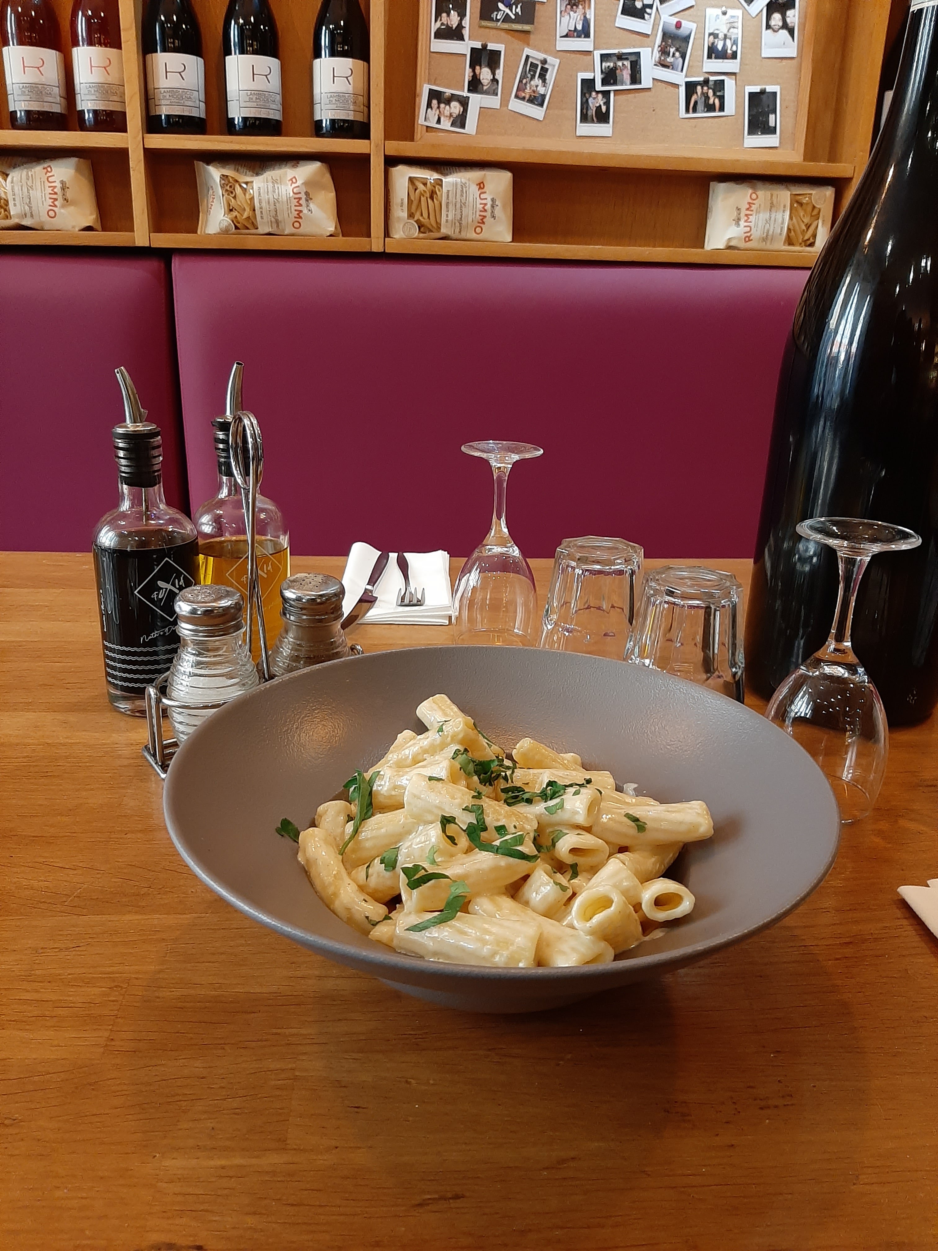 Excellent repas à 3 - avec des pâtes excellentes et de bons desserts. Service agréable, cadre cosy avec jolis muraux bouteilles. Bref un bon déjeuner !